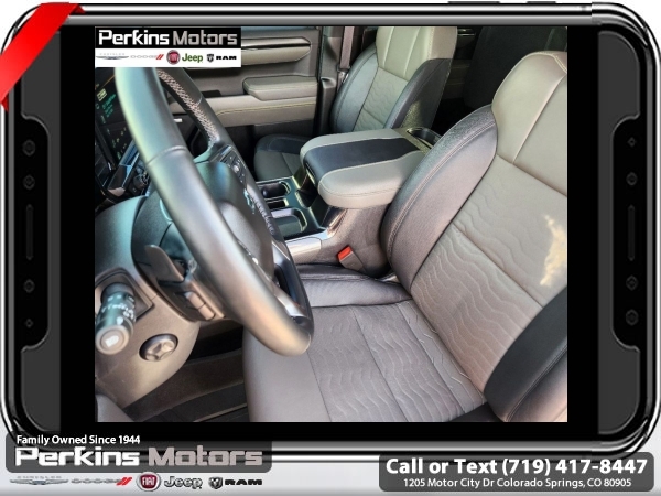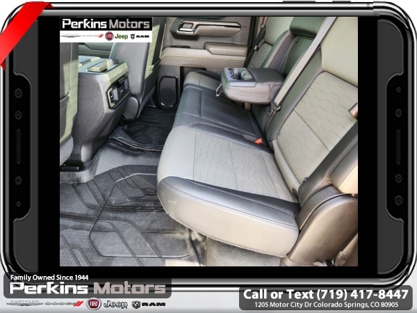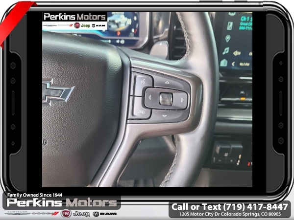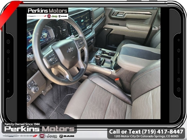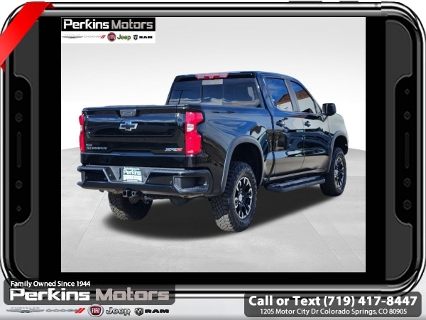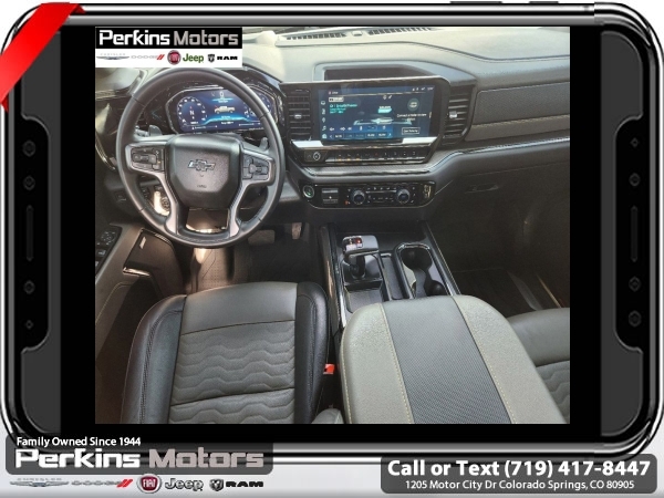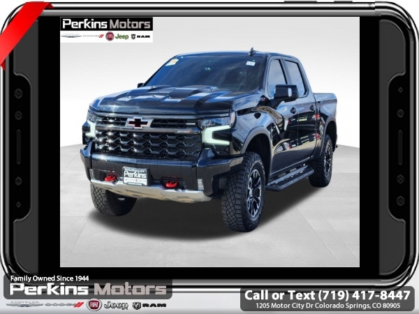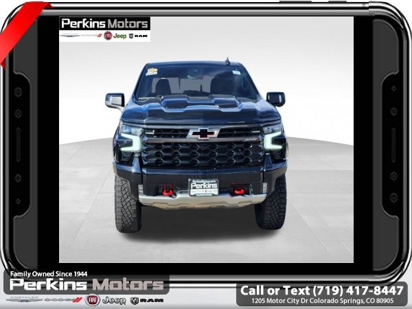 Black 4WD EcoTec3 6.2L V8 10-Speed Automatic<br><br>10-Speed Automatic, 4WD, Jet Black/Graystone Leather, 10-Way Power Driver Seat w/Lumbar, 10-Way Power Passenger Seat Adjuster w/Lumbar, 12.3 Multicolor Reconfigurable Digital Display, 120-Volt Bed Mounted Power Outlet, 120-Volt Instrument Panel Power Outlet, 15 Diagonal Multicolor Head-Up Display, 170 Amp Alternator, 2 USB Data Ports, 2nd Row Heated Outboard Seats, Adaptive Cruise Control, All-Weather Floor Liner (LPO), Auto-Dimming Inside Rear-View Mirror, Auto-Locking Rear Differential, Bed View Camera, Bluetooth® For Phone, Chevrolet Connected Access Capable, Chevytec Spray-On Black Bedliner, Color-Keyed Carpeting Floor Covering, Compass, Deep-Tinted Glass, Driver Memory, Dual Exhaust, Dual Rear USB Ports (Charge Only), Electric Rear-Window Defogger, Electrical Steering Column Lock, Electronic Cruise Control, EZ Lift Power Lock & Release Tailgate, Floor Mounted Center Console, Front LED Fog Lamps, Front Rainsensing Wipers, HD Surround Vision, Heated Driver & Front Outboard Passenger Seats, Heated Steering Wheel, Heavy-Duty Air Filter, High Gloss Black Mirror Caps, Hill Descent Control, Hitch Guidance, Hitch Guidance w/Hitch View, Integrated Trailer Brake Controller, Keyless Open & Start, LED Cargo Area Lighting, Manual Tilt/Telescoping Steering Column, OnStar & Chevrolet Connected Services Capable, Outside Heated Power-Adjustable Mirrors, Performance Red Recovery Hooks, Perimeter Lighting, Power Front Passenger Windows w/Express Up/Down, Power Front Windows w/Driver Express Up/Down, Power Rear Windows w/Express Down, Power Sliding Rear Window w/Rear Defogger, Power Sunroof, Power Tilt & Telescoping Steering Column, Preferred Equipment Group 3LT, Rear Camera Mirror, Rear Cross Traffic Alert-Braking, Rear Park Assist, Rear Pedestrian Alert, Rear Wheelhouse Liners, Remote Vehicle Starter System, Safety Alert Seat, SiriusXM w/360L, Standard Tailgate, Steering Wheel Audio Controls, Technology Package, Theft Deterrent System (Unauthorized Entry), Trailer Camera Provisions, Trailer Side Blind Zone Alert, Trailering App, Trailering Package, Universal Home Remote, Up-Level Rear Seat w/Storage Package, Ventilated Driver & Front Passenger Seats, Wi-Fi Hot Spot Capable, Wireless Charging, Wireless Phone Projection, Wrapped Steering Wheel, ZR2 Suspension Package.<br><br><br>CARFAX One-Owner.<br><br>Check us out at www.perkinsmotors.com to see our specials! Since opening our doors in 1944, we’ve been proud to serve Colorado Springs, CO, and the surrounding areas of Pueblo, Castle Rock and Denver, CO. Throughout this time of being family owned for 80 years, we’ve maintained a firm commitment to our customers: to offer a wide selection of New Chrysler, Dodge, Fiat, Jeep, and Ram vehicles and quality pre-owned vehicles, and provide a quick, no-hassle car-buying process that ensures everyone drives off the lot satisfied with their purchase.<br><br><br>Preferred Equipment Group 3LT (10-Way Power Driver Seat w/Lumbar, 10-Way Power Passenger Seat Adjuster w/Lumbar, 12.3 Multicolor Reconfigurable Digital Display, 120-Volt Bed Mounted Power Outlet, 120-Volt Instrument Panel Power Outlet, 170 Amp Alternator, 2 USB Data Ports, 2nd Row Heated Outboard Seats, All-Weather Floor Liner (LPO), Auto-Dimming Inside Rear-View Mirror, Auto-Locking Rear Differential, Bed View Camera, Bluetooth® For Phone, Chevrolet Connected Access Capable, Chevytec Spray-On Black Bedliner, Color-Keyed Carpeting Floor Covering, Compass, Deep-Tinted Glass, Driver Memory, Dual Exhaust, Dual Rear USB Ports (Charge Only), Electric Rear-Window Defogger, Electrical Steering Column Lock, Electronic Cruise Control, EZ Lift Power Lock & Release Tailgate, Floor Mounted Center Console, Front LED Fog Lamps, Front Rainsensing Wipers, HD Surround Vision, Heated Driver & Front Outboard Passenger Seats, Heated Steering Wheel, Heavy-Duty Air Filter, High Gloss Black Mirror Caps, Hill Descent Control, Hitch Guidance w/Hitch View, Int