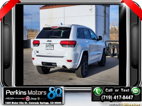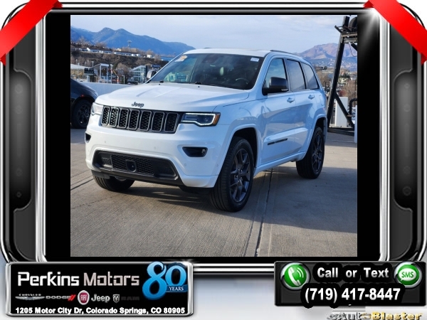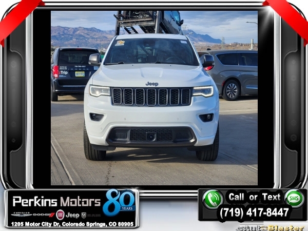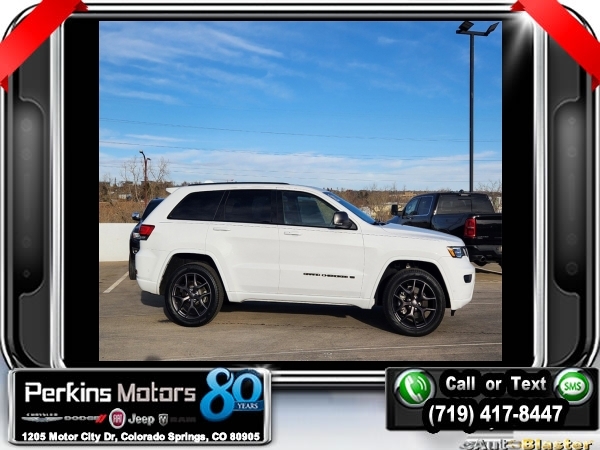 Bright White Clearcoat 4WD 3.6L V6 24V VVT 8-Speed Automatic<br><br>4WD, 1-Year SiriusXM Guardian Trial, 4G LTE Wi-Fi Hot Spot, 506 Watt Amplifier, 7 & 4 Pin Wiring Harness, 8.4 Touchscreen Display, 80th Anniversary Luxury Group, Active Noise Control System, Adaptive Cruise Control w/Stop, Advanced Brake Assist, Apple CarPlay, Auto High Beam Headlamp Control, Berber Floor Mats w/80th Anniversary Tag, Bi-Xenon High-Intensity Discharge Headlamps, Black Roof Molding, Body Color Claddings, Body Color Door Handles, Body Color Shark Fin Antenna, Cargo Compartment Cover, Class IV Receiver Hitch, Dark Day Light Opening Moldings, Dark Headlamp Bezel Finish, Dark Lens Taillamps, Dual-Pane Panoramic Sunroof, Front Accent/Body Color Fascia, Front LED Fog Lamps, Full Speed FWD Collision Warn Plus, Google Android Auto, GPS Antenna Input, GPS Navigation, Granite Crystal Exterior Accents, Granite Crystal Exterior Badging, Granite Crystal Exterior Mirror Caps, Granite Crystal/Black Grille, HD Radio, Heated Second Row Seats, Heavy-Duty Engine Cooling, Integrated Voice Command w/Bluetooth, Jeep 80th Anniversary Badges, Jeep 80th Anniversary Edition, Lane Departure Warning Plus, Leather Trimmed Bucket Seats (JY), LED Daytime Running Headlamps, LT. Tungsten Interior Accent Stitching, Navigation System, Parallel & Perp Park Assist w/Stop, Piano Black/Anod. Gunmetal Interior Accents, Power Liftgate, Power Tilt/Telescope Steering Column, Premium Alpine Speaker System, Premium Lighting Group, Quick Order Package 2GK 80th, Radio: Uconnect 4C Nav w/8.4 Display, Rain Sensitive Windshield Wipers, Rear Accent/Body Color Fascia, Rear Load Leveling Suspension, SiriusXM Satellite Radio, SiriusXM Traffic Plus, SiriusXM Travel Link, Trailer Tow Group IV, Ventilated Front Seats, Wheels: 20 x 8.0 Granite Crystal Aluminum.<br><br>Certified. FCA US LLC Certified Pre-Owned Details:<br><br> * Transferable Warranty<br> * Limited Warranty: 3 Month/3,000 Mile (whichever comes first) after new car warranty expires or from certified purchase date<br> * Roadside Assistance<br> * Includes First Day Rental, Car Rental Allowance, and Trip Interruption Benefits. SiriusXM 3 month trial subscription<br> * Powertrain Limited Warranty: 84 Month/100,000 Mile (whichever comes first) from original in-service date<br> * Vehicle History<br> * 125 Point Inspection<br> * Warranty Deductible: $100<br><br><br>CARFAX One-Owner.<br><br>Check us out at www.perkinsmotors.com to see our specials! Since opening our doors in 1944, we’ve been proud to serve Colorado Springs, CO, and the surrounding areas of Pueblo, Castle Rock and Denver, CO. Throughout this time of being family owned for 80 years, we’ve maintained a firm commitment to our customers: to offer a wide selection of New Chrysler, Dodge, Fiat, Jeep, and Ram vehicles and quality pre-owned vehicles, and provide a quick, no-hassle car-buying process that ensures everyone drives off the lot satisfied with their purchase.<br><br><br>80th Anniversary Luxury Group (506 Watt Amplifier, Active Noise Control System, Cargo Compartment Cover, Dual-Pane Panoramic Sunroof, Heated Second Row Seats, Power Tilt/Telescope Steering Column, Premium Alpine Speaker System, and Ventilated Front Seats), Premium Lighting Group (Auto High Beam Headlamp Control, Bi-Xenon High-Intensity Discharge Headlamps, Front LED Fog Lamps, and LED Daytime Running Headlamps), Quick Order Package 2GK 80th (Adaptive Cruise Control w/Stop, Advanced Brake Assist, Berber Floor Mats w/80th Anniversary Tag, Black Roof Molding, Body Color Claddings, Body Color Door Handles, Body Color Shark Fin Antenna, Dark Day Light Opening Moldings, Dark Headlamp Bezel Finish, Dark Lens Taillamps, Front Accent/Body Color Fascia, Full Speed FWD Collision Warn Plus, Granite Crystal Exterior Accents, Granite Crystal Exterior Badging, Granite Crystal Exterior Mirror Caps, Granite Crystal/Black Grille, Jeep 80th Anniversary Badges, Jeep 80th Anniversary Edition, Lane Departure Warning P