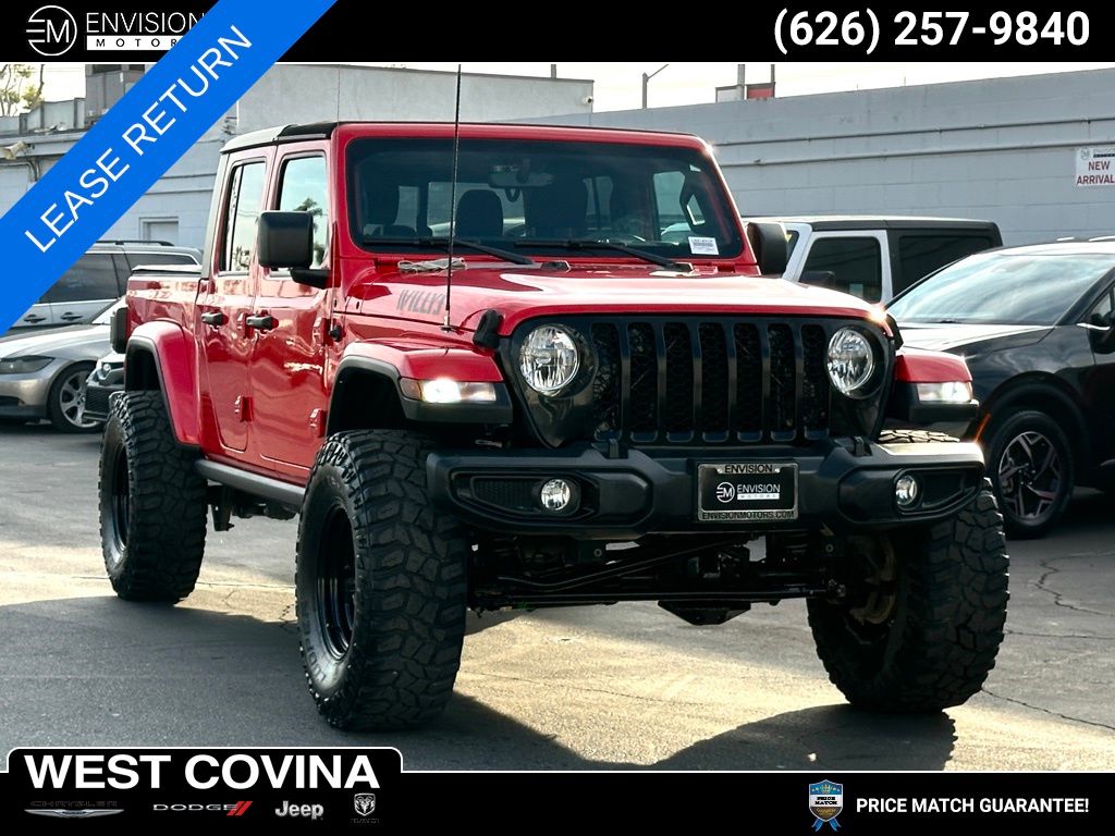 WE SPECIALIZE IN ALL CREDIT PROFILES! See what we can do for you! Call to find out (626) 899-9302.CARFAX One-Owner. Clean CARFAX.1-Year SiriusXM Guardian Trial, 115V Auxiliary Power Outlet, 220 Amp Alternator, 4-Wheel Drive Decal, 400W Inverter, 5-Year SiriusXM Traffic Service, 5-Year SiriusXM Travel Link Service, 8.4" Radio & Premium Audio Group, 8.4" Touchscreen Display, 97 mph Maximum Speed Calibration, ABS brakes, Air Conditioning w/Auto Temperature Control, Alpine Premium Audio System, Anti-Spin Differential Rear Axle, Apple CarPlay, Auto-Dimming Rear-View Mirror, Automatic Headlamps, Black 3-Piece Hard Top, Black Grille, Black Trail Rated Badge, Blind Spot & Cross Path Detection, Body Color Fender Flares (2-Piece), Bridgestone Brand Tires, Compass, Console Bin Task Light, Convenience Group, Daytime Running Lamp System, Deep Tint Sunscreen Windows, Electronic Stability Control, Emergency/Assistance Call, For Details, Visit DriveUconnect.com, For More Info, Call 800-643-2112, Freedom Panel Storage Bag, Front 1-Touch Down Power Windows, Front Heavy Duty Red Accent Shock Absorbers, Google Android Auto, GPS Antenna Input, GPS Navigation, HD Radio, Integrated Center Stack Radio, Leather Wrapped Steering Wheel, LED Taillamps, Low tire pressure warning, Media Hub w/2 Charge Only USBs, Mold In Color Bumper w/Gloss Black, MOPAR All-Weather Floor Mats, Navigation System, Off-Road Info Pages, ParkSense Rear Park Assist System, ParkView Rear Back-Up Camera, Power Heated Mirrors, Power Tailgate Lock, Protection Sill Rails, Quick Order Package 24W Willys, Radio: Uconnect 4C Nav w/8.4" Display, Rear Heavy Duty Red Accent Shock Absorbers, Rear Sliding Window, Rear Window Defroster, Remote Keyless Entry, Safety Group, Security Alarm, SiriusXM Radio Service, SiriusXM Satellite Radio, SiriusXM Traffic Plus, SiriusXM Travel Link, Speed Sensitive Power Locks, Sun Visors w/Illuminated Vanity Mirrors, Traction control, Universal Garage Door Opener, USB Host Flip, Wheels: 17" x 7.5" Black Aluminum w/Gray Pad, Willys, Willys Hood Decal.Firecracker Red Clearcoat2021 Jeep Gladiator Sport 4WD 8-Speed Automatic 3.6L V6 24V VVT**********All Pricing and Advertised Prices for any/all vehicles offered for sale does not include dealer installed accessories which can be purchased for an additional cost.********** The Factory Rebates may not be available on this vehicle if you elect to take advantage of a Special Alternative APR or Special Lease program. Some Factory Rebates are California Resident specific and may vary for residents of other states. NO sales to Dealers, Brokers or Exporters. For out of state purchase, customers must be present to purchase. If shipping is required, dealership must facilitate; no exceptions. Please contact us for special Multi-Vehicle or Fleet pricing. Prices are plus government fees and taxes, any finance charges, $85 documentary fee, $29 electronic registration fee, any emission testing charge and $1.75 per new tire state tire fee. *** We make every effort to provide accurate information, but please verify before purchasing. Leasing & financing available on approved credit. Trade-ins accepted. Subject to prior sale.
