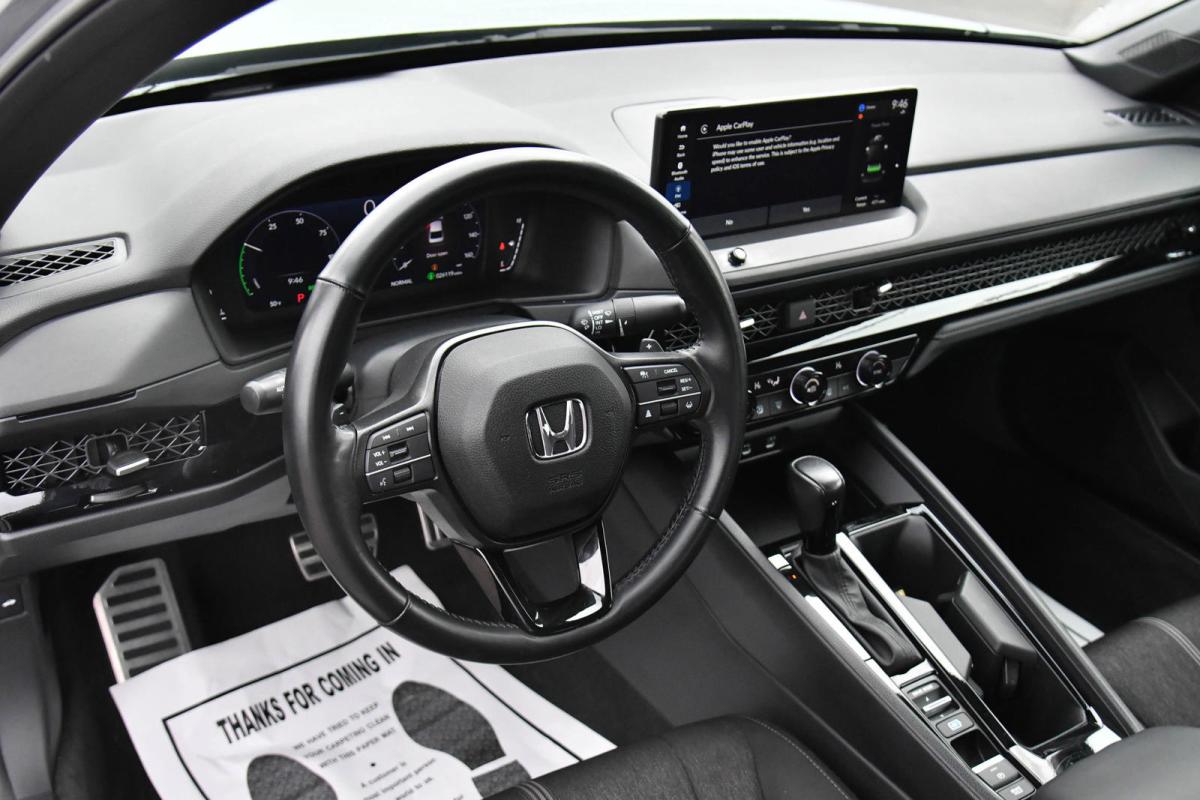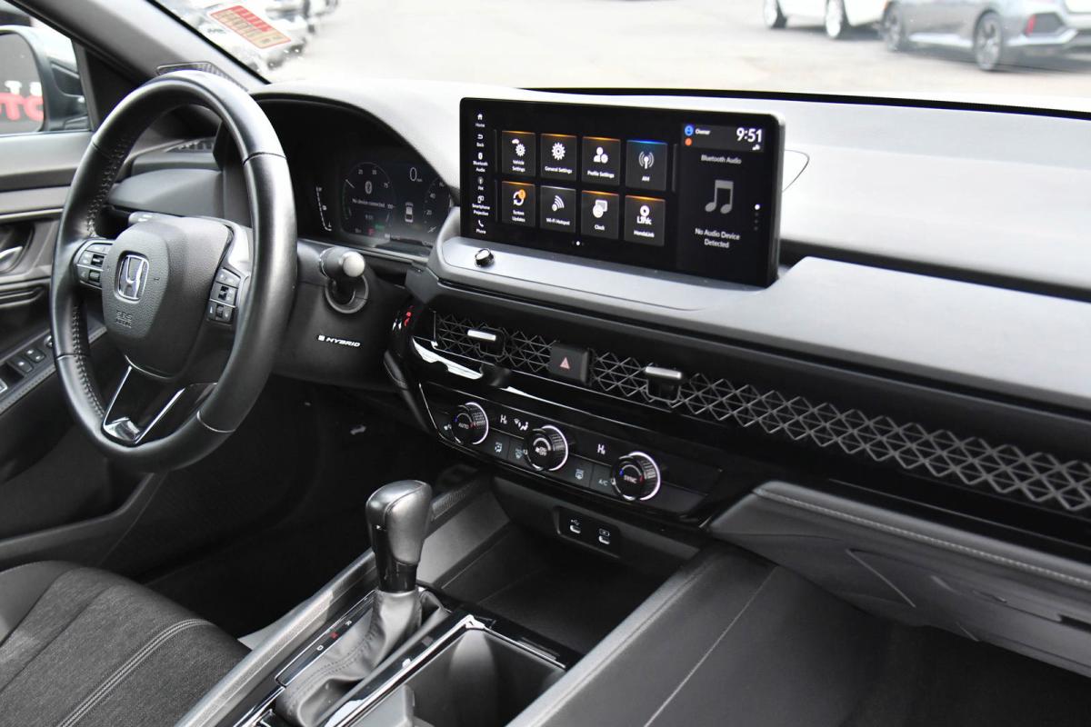 Delivers 41 Highway MPG and 46 City MPG! This Honda Accord Hybrid boasts a Gas/Electric I-4 2.0 L/122 engine powering this Variable transmission. Wheels: 19 x 8.5J Berlina Black -inc: machined face, Vehicle Stability Assist (VSA) Electronic Stability Control (ESC), Valet Function.*This Honda Accord Hybrid Comes Equipped with These Options *Trunk Rear Cargo Access, Trip Computer, Transmission: Electronic Continuously Variable -inc: econ, normal, sport and individual modes, Traffic Jam Assist, Tires: 235/40R19 96V AS, Tire Specific Low Tire Pressure Warning, Tire mobility kit, Strut Front Suspension w/Coil Springs, Speed Sensitive Variable Intermittent Wipers, Smart Device Remote Engine Start.