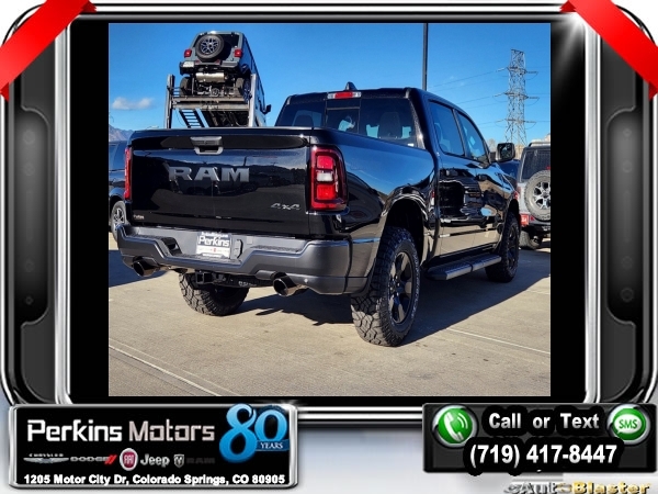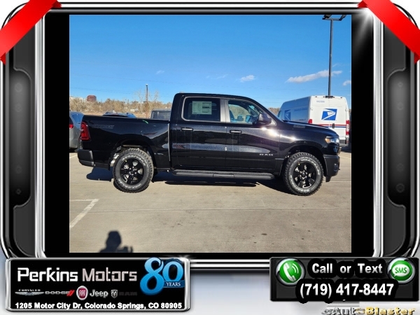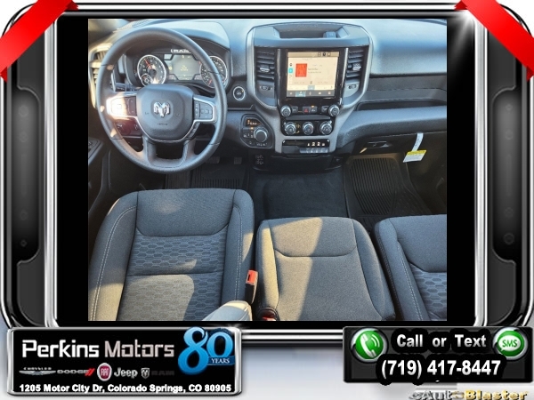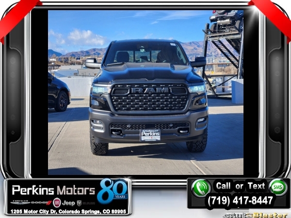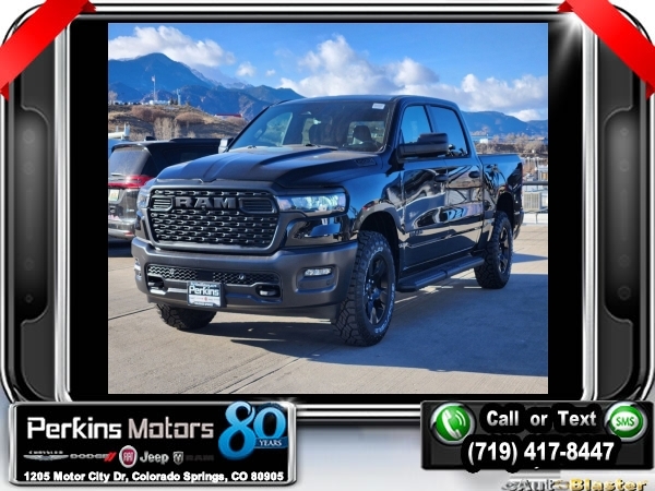 Factory MSRP: $57,390 $10,500 off MSRP! Diamond Black Crystal Pearlcoat 2025 Ram 1500 4WD 8-Speed Automatic 3.0L I6<br><br>Check us out at www.perkinsmotors.com to see our specials! Since opening our doors in 1944, we’ve been proud to serve Colorado Springs, CO, and the surrounding areas of Pueblo, Castle Rock and Denver, CO. Throughout this time of being family owned for 80 years, we’ve maintained a firm commitment to our customers: to offer a wide selection of New Chrysler, Dodge, Fiat, Jeep, and Ram vehicles and quality pre-owned vehicles, and provide a quick, no-hassle car-buying process that ensures everyone drives off the lot satisfied with their purchase.<br><br>Quick Order Package 21B Warlock (115V Auxiliary Power Outlet, Dual Exhaust w/Black Tips, Front LED Fog Lamps, Front Performance Tuned Shock Absorbers, Raised Ride Height, and Warlock Decal), Tradesman Level 1 Equipment Group (4 Way Front Headrests, 40/20/40 Split Bench Seat, Cloth Bench Seat, Front Center Seat Cushion Storage, Manual Adjust 4-Way Driver Seat, Manual Adjust 4-Way Front Passenger Seat, Rear 60/40 Folding Seat, Seat Parts Module II, and SiriusXM Satellite Radio), 3.21 Rear Axle Ratio, 3.92 Rear Axle Ratio, 4-Wheel Disc Brakes, 6 Speakers, ABS brakes, Air Conditioning, AM/FM radio, Apple CarPlay/Android Auto, Auto High-beam Headlights, Black Exterior Mirrors, Brake assist, Compass, Cruise Control, Delay-off headlights, Driver door bin, Dual front impact airbags, Dual front side impact airbags, Electronic Stability Control, Exterior Mirrors w/Heating Element, Front anti-roll bar, Front Center Armrest, Front License Plate Bracket, Front reading lights, Front wheel independent suspension, Fully automatic headlights, Heated door mirrors, Heavy Duty Vinyl 40/20/40 Split Bench Seat, Illuminated entry, Low tire pressure warning, Manual Folding Exterior Mirrors, Manufacturer's Statement of Origin, Mopar Black Tubular Side Steps, Occupant sensing airbag, Outside temperature display, Overhead airbag, Overhead console, Panic alarm, ParkView Rear Back-Up Camera, Passenger door bin, Passenger vanity mirror, Power door mirrors, Power steering, Power windows, Radio data system, Radio: Uconnect 5 W w/8.4 Display, RAM Grille Badge - Black, Rear anti-roll bar, Rear step bumper, Remote keyless entry, Tachometer, Telescoping steering wheel, Tilt steering wheel, Traction control, Variably intermittent wipers, Voltmeter, and Wheels: 18 x 7.5 Steel Painted. Sale price includes all manufacture's incentives and dealer discounts. Sale price not available on lease or compatible with special APR. $1000 - 2025 National Truck Month Bonus Cash . Exp. 03/03/2025 $1500 - 2025 National Bonus Cash . Exp. 03/03/2025 $4000 - 2025 National Retail Consumer Cash. Exp. 03/03/2025