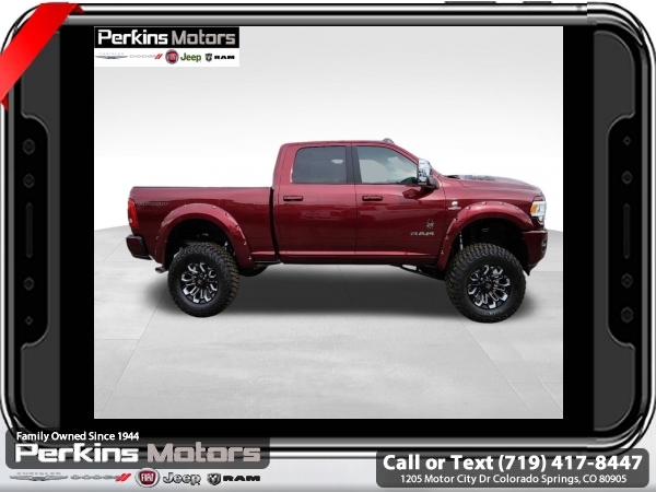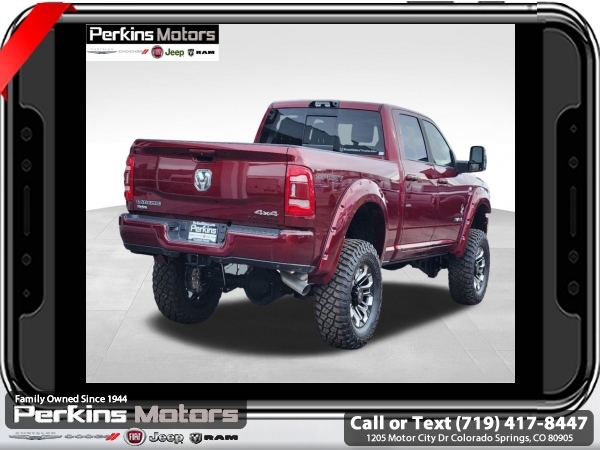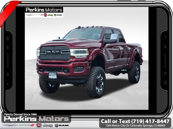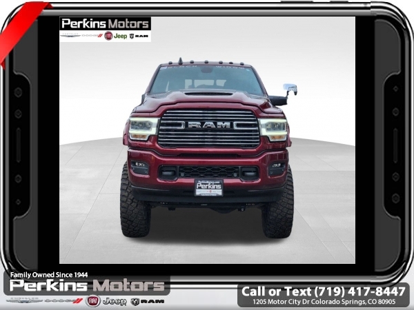 Factory MSRP: $88,220 Delmonico Red Pearlcoat 2024 Ram 3500 Laramie 4WD Aisin 6-Speed Automatic 6.7L I6<br><br>Check us out at www.perkinsmotors.com to see our specials! Since opening our doors in 1944, we’ve been proud to serve Colorado Springs, CO, and the surrounding areas of Pueblo, Castle Rock and Denver, CO. Throughout this time of being family owned for 80 years, we’ve maintained a firm commitment to our customers: to offer a wide selection of New Chrysler, Dodge, Fiat, Jeep, and Ram vehicles and quality pre-owned vehicles, and provide a quick, no-hassle car-buying process that ensures everyone drives off the lot satisfied with their purchase.<br><br>Bed Utility Group (LED Bed Lighting, MOPAR Deployable Bed Step, and MOPAR Spray In Bedliner), Laramie Level B Equipment Group (12 Touchscreen Display, 17 Speaker harman/kardon Premium Sound, 18 x 8 Polished Aluminum Wheels, 4G LTE Wi-Fi Hot Spot, Alexa Built-In, Apple CarPlay, Auto Dimming Exterior Passenger Mirror, Blind Spot & Cross Path Detection, Center Hub, Connected Travel & Traffic Services, Connectivity - US/Canada, Disassociated Touchscreen Display, Exterior Mirrors Courtesy Lamps, Exterior Mirrors w/Heating Element, Exterior Mirrors w/Supplemental Signals, Foam Bottle Insert (Door Trim Panel), For Details Visit DriveUconnect.com, For More Info, Call 800-643-2112, Front LED Fog Lamps, Global Telematics Box Module (TBM), Google Android Auto, GPS Antenna Input, GPS Navigation, HD Radio, Integrated Voice Command w/Bluetooth, LED Reflector Headlamps, Mirror Running Lights, Off-Road Information Pages, ParkSense Front/Rear Park Assist System, Power Adjust Mirrors, Power Adjustable Pedals w/Memory, Power Heat Fold Memory Telescopic Mirrors, Power Telescoping Mirrors, Power-Adjustable Convex Aux Mirrors, Radio: Uconnect 5 Nav w/12.0 Display, Rear Power Sliding Window, Selectable Tire Fill Alert, SiriusXM Radio Service, SiriusXM w/360L, and Trailer Tow Pages), Protection Group, Quick Order Package 21H Laramie, Sport Appearance Package (20 x 8 Polished Aluminum Wheels, Sport Decal, and Sport Performance Hood), 10 Speakers, 115V Auxiliary Rear Power Outlet, 2 Way Rear Headrest Seat, 220 Amp Alternator, 3.73 Axle Ratio, 4 Way Front Headrests, 4-Wheel Disc Brakes, 5th Wheel/Gooseneck Towing Prep Group, 8.4 Touchscreen Display, ABS brakes, Active Noise Control System, Air Conditioning, Alloy wheels, AM/FM radio: SiriusXM with 360L, Apple CarPlay/Android Auto, Auto-dimming Rear-View mirror, Automatic temperature control, Brake assist, Bumpers: body-color, Clearance Lamps, Compass, Cruise Control, CTR Stop Lamp w/Cargo View Camera, Delay-off headlights, Driver door bin, Driver vanity mirror, Dual front impact airbags, Dual front side impact airbags, Electronic Stability Control, Electronically Controlled Throttle, Folding Flat Load Floor Storage, Front anti-roll bar, Front Center Armrest w/Storage, Front dual zone A/C, Front License Plate Bracket, Front reading lights, Front Seat Back Map Pockets, Fully automatic headlights, Garage door transmitter, Heated door mirrors, Heated Front Seats, Heated front seats, Heated Steering Wheel, Heated steering wheel, High Back Seats, I/P Mounted Auxiliary Switches, Illuminated entry, Integrated Center Stack Radio, Leather steering wheel, Leather Trim 40/20/40 Bench Seat, Low tire pressure warning, Manufacturer's Statement of Origin, MOPAR Front & Rear Rubber Floor Mats, Navigation System, Occupant sensing airbag, Outside temperature display, Overhead airbag, Overhead console, Panic alarm, ParkView Rear Back-Up Camera, Passenger door bin, Passenger vanity mirror, Power 8-Way Adjustable Passenger Seat, Power Sale price includes all manufacture's incentives and dealer discounts. Sale price not available on lease or compatible with special APR. $2500 - 2024 National Truck Month Bonus Cash. Exp. 04/30/2025 $5000 - 2024 National Bailment Pool Select Inventory w/ 3JW Bonus Cash. Exp. 06/30/2025 Price includes $26,995 in dealer added a