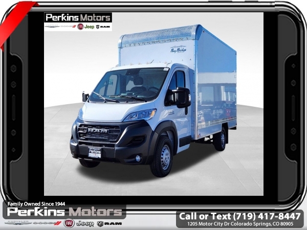Factory MSRP: $48,185 Bright White Clearcoat 2024 Ram ProMaster 3500 Cutaway Low Roof FWD 9-Speed 948TE Automatic 3.6L V6 24V VVT<br><br>Check us out at www.perkinsmotors.com to see our specials! Since opening our doors in 1944, we’ve been proud to serve Colorado Springs, CO, and the surrounding areas of Pueblo, Castle Rock and Denver, CO. Throughout this time of being family owned for 80 years, we’ve maintained a firm commitment to our customers: to offer a wide selection of New Chrysler, Dodge, Fiat, Jeep, and Ram vehicles and quality pre-owned vehicles, and provide a quick, no-hassle car-buying process that ensures everyone drives off the lot satisfied with their purchase.<br><br>Convenience Group (96 Wide Exterior Mirrors, Adaptive Cruise Control w/Stop & Go, Exterior Mirrors w/Heating Element, Exterior Mirrors w/Supplemental Signals, Front Fog Lamps, Manual Folding Exterior Mirrors, Power Adjust Mirrors, Power-Adjustable Convex Aux Mirrors, and Wide Power Heated Mirrors), Quick Order Package 22B Tradesman w/Pass Seat (Manual Adjust 4-Way Front Passenger Seat and Passenger Bucket Seat), 4 Speakers, 4-Wheel Disc Brakes, 4.08 Axle Ratio, ABS brakes, Air Conditioning, AM/FM radio: SiriusXM, Apple CarPlay/Android Auto, Black/Gray Seats, Bodyside moldings, Brake assist, Bulb Out Detection Defeat for LED, Cloth Bucket Seats, Driver door bin, Driver Seat Armrest, Driver's Seat Mounted Armrest, Electronic Stability Control, Exterior Parking Camera Rear, Front anti-roll bar, Front Bucket Seats, Front License Plate Bracket, Front reading lights, Front wheel independent suspension, Illuminated entry, Low tire pressure warning, Manufacturer's Statement of Origin, Outside temperature display, Overhead airbag, Overhead console, Passenger door bin, Power steering, Power windows, Radio: Uconnect 5 w/7 Display, Rear anti-roll bar, Remote keyless entry, Steering wheel mounted audio controls, Tachometer, Telescoping steering wheel, Traction control, Trip computer, Turn signal indicator mirrors, Variably intermittent wipers, Wheel Center Cap, and Wheels: 16 x 6.0 Steel. Sale price includes all manufacture's incentives and dealer discounts. Sale price not available on lease or compatible with special APR. $4021 - 2024 National Minimum Employee Pricing Discount . Exp. 06/30/2025 Price includes $17,995 in dealer added accessories.
