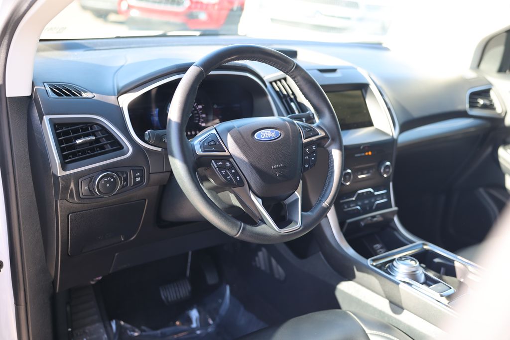 Oxford White 2020 Ford Edge SEL FWD 8-Speed Automatic EcoBoost 2.0L I4 GTDi DOHC Turbocharged VCT 110V/150W AC Power Outlet, 9 Speakers, ActiveX Seating Material Heated Bucket Seats, Adaptive Cruise Control w/Stop & Go, Air Conditioning, Brake assist, Convenience Package, Electronic Stability Control, Evasive Steering Assist, Foot-Activated Hands-Free Liftgate, Ford Co-Pilot360 Assist+, Front Bucket Seats, Fully automatic headlights, Heated front seats, Lane Centering, Perimeter Alarm, Remote Start System, SiriusXM Traffic & Travel Link, SYNC 3 Communications & Entertainment System, Universal Garage Door Opener (UGDO), Voice-Activated Touchscreen Navigation System, Wheels: 18" Bright-Machined Aluminum, Wireless Charging Pad.Odometer is 9652 miles below market average! 21/29 City/Highway MPG
