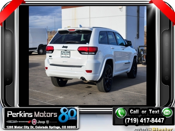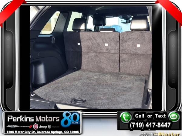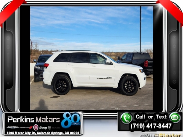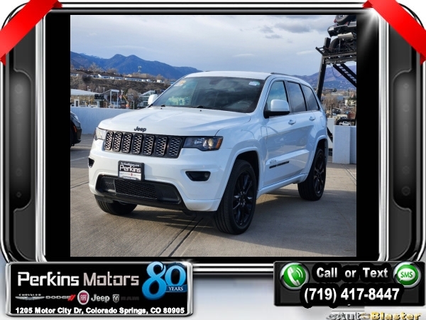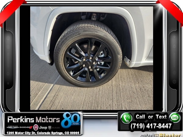 Bright White Clearcoat 4WD 3.6L V6 24V VVT 8-Speed Automatic<br><br>115V Auxiliary Power Outlet, Altitude Appearance Package, Altitude Grille, Black Suede Seats w/Black Stitching, Body Color Claddings, Body Color Fascia, Body Color Shark Fin Antenna, Dark Day Light Opening Moldings, Dark Headlamp Bezel Finish, Dark Lens Taillamps, Delete Laredo Badge, Front Accent/Body Color Fascia, Gloss Black Jeep Badging, Gloss Black Rear Fascia Applique, Heated Front Seats, Heated Steering Wheel, Hill Descent Control, Navigation System, Power Liftgate, Quadra-Trac II 4WD System, Quick Order Package 2GM Laredo X (DISC), Rear Accent/Body Color Fascia, Rear Fascia Black Molded in Color Step Pad, Remote Start System, Security Alarm, Selec-Terrain System, Single Exhaust w/Bright Tip, Steering Wheel Mounted Audio Controls, Universal Garage Door Opener, Wheels: 20 x 8.0 Gloss Black Aluminum.<br><br><br>CARFAX One-Owner. Clean CARFAX.<br><br>Check us out at www.perkinsmotors.com to see our specials! Since opening our doors in 1944, we’ve been proud to serve Colorado Springs, CO, and the surrounding areas of Pueblo, Castle Rock and Denver, CO. Throughout this time of being family owned for 80 years, we’ve maintained a firm commitment to our customers: to offer a wide selection of New Chrysler, Dodge, Fiat, Jeep, and Ram vehicles and quality pre-owned vehicles, and provide a quick, no-hassle car-buying process that ensures everyone drives off the lot satisfied with their purchase.<br><br><br>Altitude Appearance Package (Altitude Grille, Body Color Claddings, Body Color Fascia, Body Color Shark Fin Antenna, Dark Day Light Opening Moldings, Dark Headlamp Bezel Finish, Dark Lens Taillamps, Delete Laredo Badge, Front Accent/Body Color Fascia, Gloss Black Jeep Badging, Gloss Black Rear Fascia Applique, Hill Descent Control, Quadra-Trac II 4WD System, Rear Accent/Body Color Fascia, Rear Fascia Black Molded in Color Step Pad, Selec-Terrain System, Single Exhaust w/Bright Tip, and Wheels: 20 x 8.0 Gloss Black Aluminum), Quick Order Package 2GM Laredo X (DISC) (115V Auxiliary Power Outlet, Black Suede Seats w/Black Stitching, Heated Front Seats, Heated Steering Wheel, Power Liftgate, Remote Start System, Security Alarm, Steering Wheel Mounted Audio Controls, and Universal Garage Door Opener), Navigation System, 3.45 Rear Axle Ratio, 4-Wheel Disc Brakes, 6 Speakers, ABS brakes, Air Conditioning, Alloy wheels, AM/FM radio: SiriusXM, Anti-whiplash front head restraints, Apple CarPlay/Android Auto, Auto-dimming Rear-View mirror, Automatic temperature control, Brake assist, Bumpers: body-color, Cloth Bucket Seats, Compass, Cruise Control, Delay-off headlights, Driver door bin, Driver vanity mirror, Dual front impact airbags, Dual front side impact airbags, Electronic Stability Control, Emergency communication system: SiriusXM Guardian, Four wheel independent suspension, Front anti-roll bar, Front Bucket Seats, Front Center Armrest w/Storage, Front dual zone A/C, Front fog lights, Front reading lights, Fully automatic headlights, Heated door mirrors, Illuminated entry, Knee airbag, Leather Shift Knob, Low tire pressure warning, Normal Duty Suspension, Occupant sensing airbag, Outside temperature display, Overhead airbag, Overhead console, Panic alarm, ParkView Rear Back-Up Camera, Passenger door bin, Passenger vanity mirror, Power door mirrors, Power driver seat, Power steering, Power windows, Radio data system, Radio: Uconnect 4C Nav w/8.4 Display, Rear anti-roll bar, Rear reading lights, Rear seat center armrest, Rear window defroster, Rear window wiper, Remote keyless entry, Speed-sensing steering, Speed-Sensitive Wipers, Split folding rear seat, Spoiler, Steering wheel mounted audio controls, Tachometer, Telescoping steering wheel, Tilt steering wheel, Traction control, Trip computer, Variably intermittent wipers, and Wheels: 18 x 8.0 Fine Silver Aluminum.