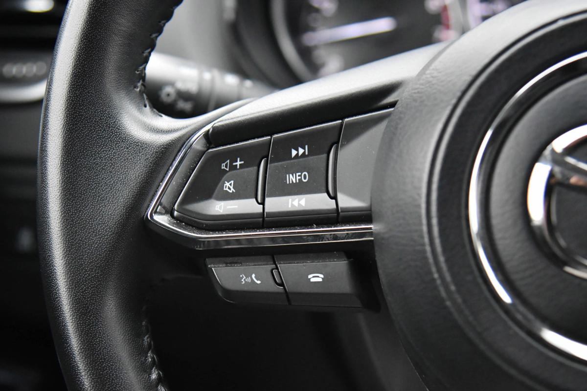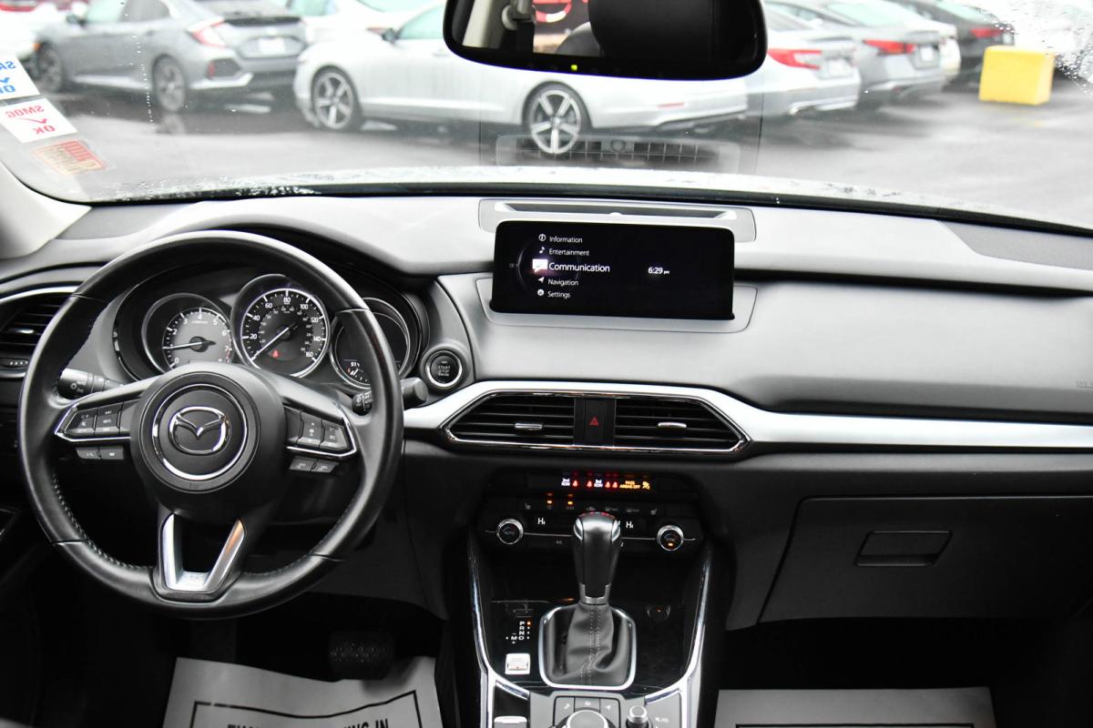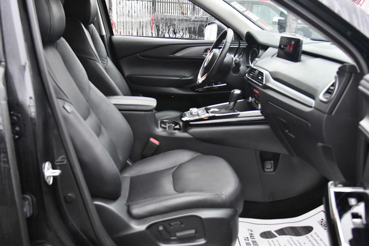 Scores 26 Highway MPG and 20 City MPG! This Mazda CX-9 boasts a Intercooled Turbo Regular Unleaded I-4 2.5 L/152 engine powering this Automatic transmission. JET BLACK MICA, BLACK, LEATHER SEAT TRIM, ALL-WEATHER FLOOR MATS (ALL 3 ROWS) (FLF) -inc: Captain's chairs without consoles.*This Mazda CX-9 Comes Equipped with These Options *Wheels: 18 x 8J Aluminum Alloy -inc: gray metallic finish, Trunk/Hatch Auto-Latch, Trip Computer, Transmission: SKYACTIV-Drive 6-Speed Automatic -inc: sport and manual shift mode, Towing Equipment -inc: Trailer Sway Control, Tires: P255/60R18, Tailgate/Rear Door Lock Included w/Power Door Locks, Strut Front Suspension w/Coil Springs, Steel Spare Wheel, SMS Text Msg Audio Delivery & Reply.