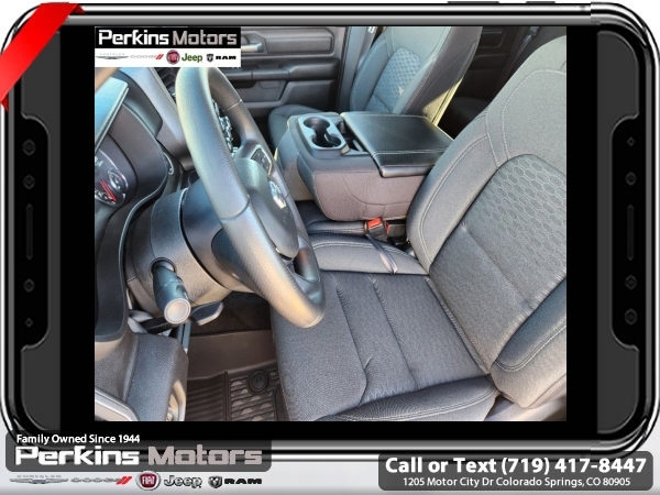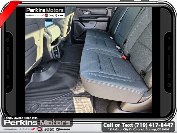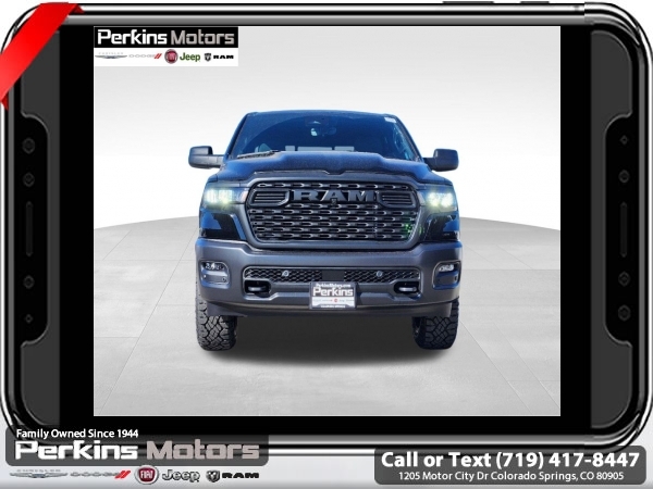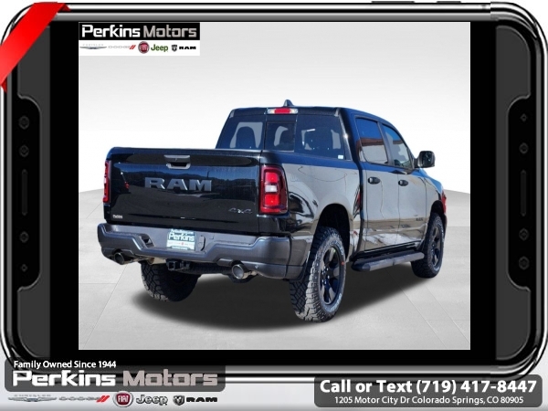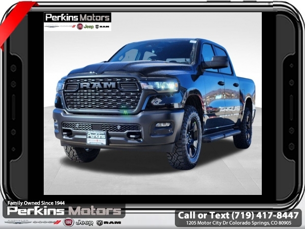 Factory MSRP: $57,390 $10,500 off MSRP! Priced below KBB Fair Purchase Price! Diamond Black Crystal Pearlcoat 2025 Ram 1500 4WD 8-Speed Automatic 3.0L I6<br><br>Check us out at www.perkinsmotors.com to see our specials! Since opening our doors in 1944, we’ve been proud to serve Colorado Springs, CO, and the surrounding areas of Pueblo, Castle Rock and Denver, CO. Throughout this time of being family owned for 80 years, we’ve maintained a firm commitment to our customers: to offer a wide selection of New Chrysler, Dodge, Fiat, Jeep, and Ram vehicles and quality pre-owned vehicles, and provide a quick, no-hassle car-buying process that ensures everyone drives off the lot satisfied with their purchase.<br><br>Quick Order Package 21B Warlock (115V Auxiliary Power Outlet, 400W Inverter, Dual Exhaust w/Black Tips, E-Locker Rear Axle, Front Performance Tuned Shock Absorbers, MOPAR Front & Rear Rubber Floor Mats, Raised Ride Height, Warlock Decal, and Wheels: 18 x 8.0 Black Painted Aluminum), 3.21 Rear Axle Ratio, 3.92 Rear Axle Ratio, 4 Way Front Headrests, 4-Wheel Disc Brakes, 40/20/40 Split Bench Seat, 6 Speakers, ABS brakes, Air Conditioning, AM/FM radio, Apple CarPlay/Android Auto, Auto High-beam Headlights, Black Exterior Mirrors, Brake assist, Compass, Cruise Control, Delay-off headlights, Driver door bin, Dual front impact airbags, Dual front side impact airbags, Electronic Stability Control, Exterior Mirrors w/Heating Element, Front anti-roll bar, Front Center Armrest, Front License Plate Bracket, Front reading lights, Front wheel independent suspension, Fully automatic headlights, Heated door mirrors, Heavy Duty Vinyl 40/20/40 Split Bench Seat, Illuminated entry, Low tire pressure warning, Manual Adjust 4-Way Driver Seat, Manual Adjust 4-Way Front Passenger Seat, Manual Folding Exterior Mirrors, Manufacturer's Statement of Origin, Mopar Black Tubular Side Steps, Occupant sensing airbag, Outside temperature display, Overhead airbag, Overhead console, Panic alarm, ParkView Rear Back-Up Camera, Passenger door bin, Passenger vanity mirror, Power door mirrors, Power steering, Power windows, Radio data system, Radio: Uconnect 5 W w/8.4 Display, RAM Grille Badge - Black, Rear anti-roll bar, Rear step bumper, Remote keyless entry, Tachometer, Telescoping steering wheel, Tilt steering wheel, Traction control, Variably intermittent wipers, Voltmeter, and Wheels: 18 x 7.5 Steel Painted. Sale price includes all manufacture's incentives and dealer discounts. Sale price not available on lease or compatible with special APR. $1000 - 2025 National Truck Month Bonus Cash . Exp. 03/03/2025 $1500 - 2025 National Bonus Cash . Exp. 03/03/2025 $4000 - 2025 National Retail Consumer Cash. Exp. 03/03/2025