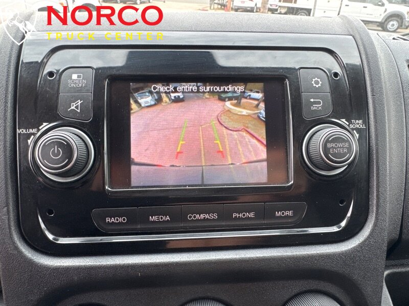-- INSTALLED FEATURES: Air filtration, Front air conditioning, Front air conditioning zones: single, Airbag deactivation: occupant sensing passenger, Front airbags: dual, Side airbags: front, Side curtain airbags: front, Antenna type: mast, Auxiliary audio input: Bluetooth / USB / jack, Radio: AM/FM / touch screen display / voice operated, Total speakers: 4, ABS: 4-wheel, Braking assist, Electronic brakeforce distribution, Front brake diameter: 11.8, Front brake type: ventilated disc, Front brake width: 1.26, Power brakes, Rear brake diameter: 11.0, Rear brake type: ventilated disc, Rear brake width: .63, Armrests: drivers seat, Floor material: rubber/vinyl, Shift knob trim: urethane, Steering wheel trim: urethane, Assist handle: front, Cargo area light, Cupholders: front, Multi-function remote: keyless entry / trunk release, One-touch windows: 2, Power outlet(s): 12V front, Power steering, Reading lights: front, Rearview mirror: manual day/night, Steering wheel: telescopic, Steering wheel mounted controls: audio / phone, Storage: cargo tie-down anchors and hooks / door pockets / in dash, Sun visors, Axle ratio: 3.86, Alternator: 180 amps, Auxiliary oil cooler, Battery rating: 800 CCA, Battery saver, Emissions: 50 state, Body side moldings: black, Bumper detail: rear step, Door handle color: black, Front bumper color: black, Grille color: black / chrome surround, Mirror color: black, Rear bumper color: black, Rear trunk/liftgate: barn, Side door type: passenger-side manual sliding, Window trim: black, Infotainment: Uconnect, Infotainment screen size: 5 in., Clock, Digital odometer, External temperature display, Fuel economy display: MPG / range, Gauge: tachometer, Trip odometer, Warnings and reminders: low battery / low fuel level / low oil level / maintenance due, Clearance lights, Headlights: auto delay off / halogen, Side mirror adjustments: manual / manual folding, Side mirrors: integrated turn signals, OEM roof height: high, Camera system: rearview, Crumple zones: front, Rearview monitor: in dash, Emergency locking retractors: front, Front seatbelts: 3-point, Seatbelt force limiters: front, Seatbelt pretensioners: front, Seatbelt warning sensor: front, Driver seat manual adjustments: reclining / 4, Front headrests: adjustable / 2, Front seat type: bucket, Passenger seat manual adjustments: reclining / 4, Upholstery: cloth, Anti-theft system: vehicle immobilizer, Power door locks: auto-locking, Hill holder control, Roll stability control, Stability control, Traction control, Trailer stability control, Steering ratio: 18.9, Turns lock-to-lock: 3.9, Front shock type: gas, Front spring type: coil, Front stabilizer bar, Front struts: MacPherson, Front suspension classification: independent, Front suspension type: lower control arms, Rear shock type: gas, Rear spring type: leaf, Rear stabilizer bar, Rear suspension classification: solid axle, Rear suspension type: multi-leaf, Driver assistance app: roadside assistance, Hands-free phone call integration: voice operated, Wireless data link: Bluetooth, Spare tire mount location: underbody, Spare tire size: full-size, Spare wheel type: steel, Tire Pressure Monitoring System, Tire type: all season, Wheel covers: partial, Wheels: steel, Auxiliary transmission fluid cooler, Front wipers: variable intermittent, Power windows, Solar-tinted glass
