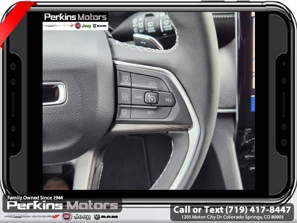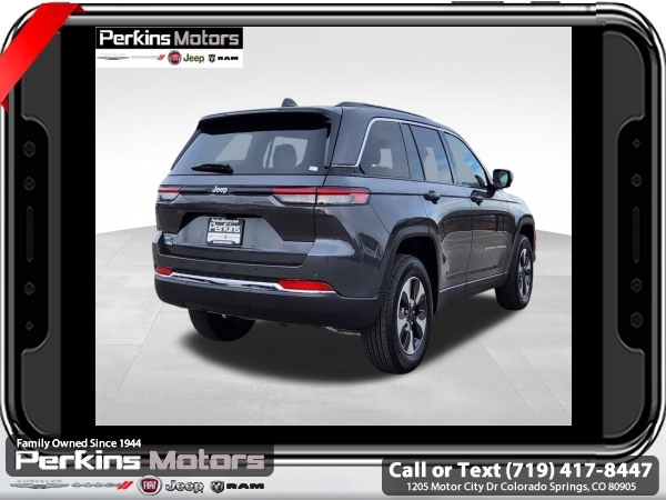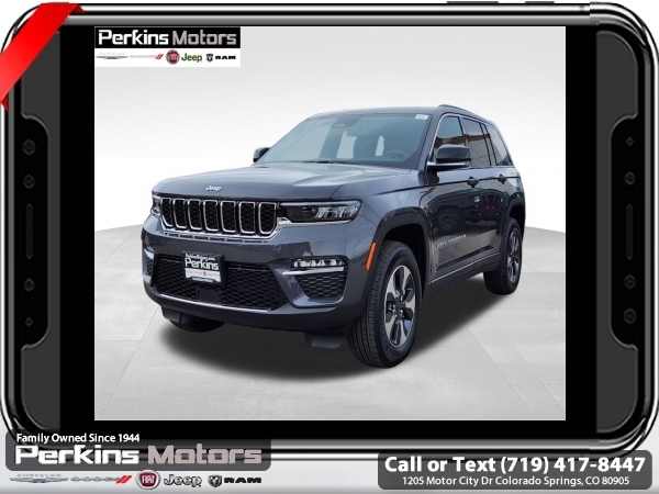 Factory MSRP: $63,875 $5,407 off MSRP! Priced below KBB Fair Purchase Price! Baltic Gray Metallic Clearcoat 2025 Jeep Grand Cherokee 4xe 4WD 8-Speed Automatic 2.0L I4 DOHC<br>2.0L I4 DOHC, 4WD.<br>Check us out at www.perkinsmotors.com to see our specials! Since opening our doors in 1944, we’ve been proud to serve Colorado Springs, CO, and the surrounding areas of Pueblo, Castle Rock and Denver, CO. Throughout this time of being family owned for 80 years, we’ve maintained a firm commitment to our customers: to offer a wide selection of New Chrysler, Dodge, Fiat, Jeep, and Ram vehicles and quality pre-owned vehicles, and provide a quick, no-hassle car-buying process that ensures everyone drives off the lot satisfied with their purchase.<br><br>Quick Order Package 27F, Trailer Tow Package (7 & 4 Pin Wiring Harness, Automatic Headlamp Levelling System, and Rear Load Levelling Suspension), 2.0L I4 DOHC, 4WD, 10 Speakers, 3.70 Rear Axle Ratio, 4-Wheel Disc Brakes, ABS brakes, Air Conditioning, Alloy wheels, AM/FM radio: SiriusXM with 360L, Anti-whiplash front head restraints, Audio memory, Auto High-beam Headlights, Automatic temperature control, Brake assist, Bumpers: body-color, Capri Leatherette Seats, Compass, Cruise Control, Delay-off headlights, Driver door bin, Driver vanity mirror, Dual front impact airbags, Dual front side impact airbags, Electronic Stability Control, Four wheel independent suspension, Front anti-roll bar, Front Bucket Seats, Front Center Armrest w/Storage, Front dual zone A/C, Front fog lights, Front License Plate Bracket, Front reading lights, Fully automatic headlights, Garage door transmitter, Heated door mirrors, Heated front seats, Heated rear seats, Heated steering wheel, Heavy Duty Suspension, Illuminated entry, Knee airbag, Low tire pressure warning, Memory seat, Model Year Tracking, Navigation System, Occupant sensing airbag, Outside temperature display, Overhead airbag, Overhead console, Panic alarm, ParkView Rear Back-Up Camera, Passenger door bin, Passenger vanity mirror, Power door mirrors, Power driver seat, Power Liftgate, Power moonroof, Power passenger seat, Power steering, Power windows, Radio data system, Radio: Uconnect 5 Nav w/10.1 Display, Rear anti-roll bar, Rear reading lights, Rear window defroster, Rear window wiper, Remote keyless entry, Security system, Speed-Sensitive Wipers, Split folding rear seat, Spoiler, Steering wheel mounted audio controls, Tachometer, Telescoping steering wheel, Tilt steering wheel, Traction control, Trip computer, Turn signal indicator mirrors, Variably intermittent wipers, Voltmeter, and Wheels: 18 x 8 Fully Painted Aluminum. Sale price includes all manufacture's incentives and dealer discounts. Sale price not available on lease or compatible with special APR. $2000 - 2025 National Retail Consumer Cash. Exp. 06/02/2025 $3407 - 2025 National Minimum Employee Pricing Discount. Exp. 06/02/2025