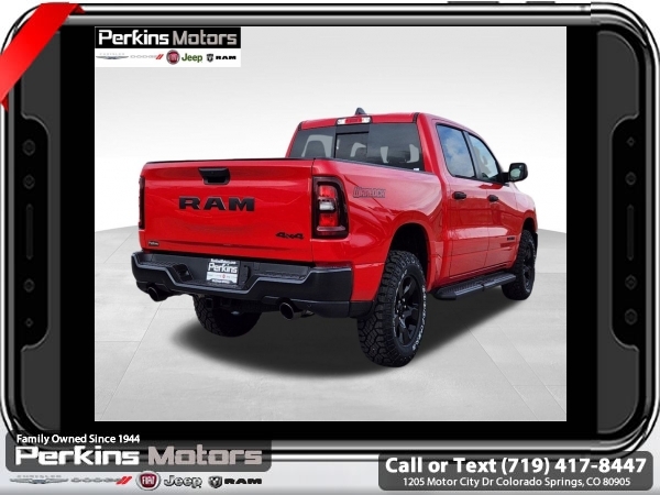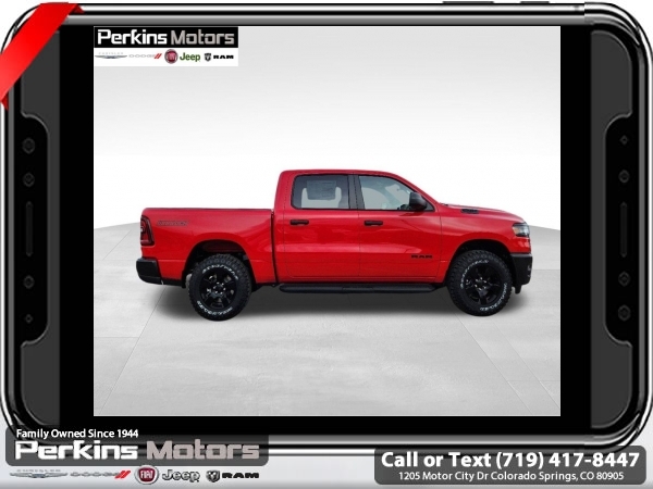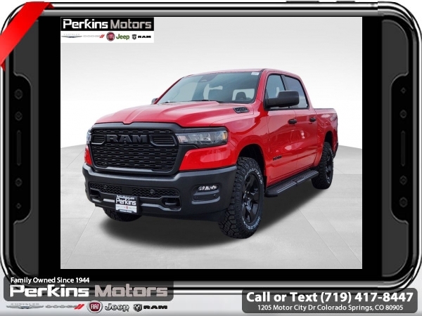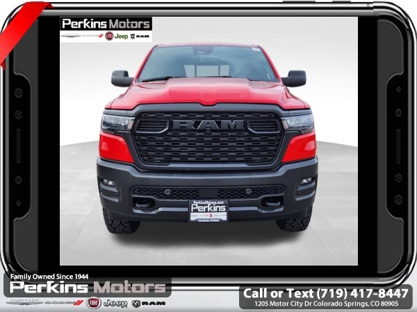 Factory MSRP: $57,145 $12,000 off MSRP! Priced below KBB Fair Purchase Price! Flame Red Clearcoat 2025 Ram 1500 4WD 8-Speed Automatic 3.0L I6<br><br>Check us out at www.perkinsmotors.com to see our specials! Since opening our doors in 1944, we’ve been proud to serve Colorado Springs, CO, and the surrounding areas of Pueblo, Castle Rock and Denver, CO. Throughout this time of being family owned for 80 years, we’ve maintained a firm commitment to our customers: to offer a wide selection of New Chrysler, Dodge, Fiat, Jeep, and Ram vehicles and quality pre-owned vehicles, and provide a quick, no-hassle car-buying process that ensures everyone drives off the lot satisfied with their purchase.<br><br>Quick Order Package 21B Warlock (115V Auxiliary Power Outlet, 400W Inverter, Dual Exhaust w/Black Tips, E-Locker Rear Axle, Front Performance Tuned Shock Absorbers, MOPAR Front & Rear Rubber Floor Mats, Raised Ride Height, Warlock Decal, and Wheels: 18 x 8.0 Black Painted Aluminum), Tradesman Level 1 Equipment Group (2nd Row In Floor Storage Bins, 3 Rear Seat Head Restraints, 4 Way Front Headrests, 40/20/40 Split Bench Seat, Cloth Bench Seat, Front & Rear Floor Mats, Front Center Seat Cushion Storage, Manual Adjust 4-Way Driver Seat, Manual Adjust 4-Way Front Passenger Seat, Rear 60/40 Folding Seat, Rear Power Sliding Window, and SiriusXM Satellite Radio), 3.21 Rear Axle Ratio, 3.92 Rear Axle Ratio, 4-Wheel Disc Brakes, 6 Speakers, ABS brakes, Air Conditioning, AM/FM radio, Apple CarPlay/Android Auto, Auto High-beam Headlights, Black Exterior Mirrors, Brake assist, Compass, Cruise Control, Delay-off headlights, Driver door bin, Dual front impact airbags, Dual front side impact airbags, Electronic Stability Control, Exterior Mirrors w/Heating Element, Front anti-roll bar, Front Center Armrest, Front License Plate Bracket, Front reading lights, Front wheel independent suspension, Fully automatic headlights, Heated door mirrors, Heavy Duty Vinyl 40/20/40 Split Bench Seat, Illuminated entry, Low tire pressure warning, Manual Folding Exterior Mirrors, Manufacturer's Statement of Origin, Mopar Black Tubular Side Steps, Occupant sensing airbag, Outside temperature display, Overhead airbag, Overhead console, Panic alarm, ParkView Rear Back-Up Camera, Passenger door bin, Passenger vanity mirror, Power door mirrors, Power steering, Power windows, Radio data system, Radio: Uconnect 5 W w/8.4 Display, RAM Grille Badge - Black, Rear anti-roll bar, Rear step bumper, Remote keyless entry, Tachometer, Telescoping steering wheel, Tilt steering wheel, Traction control, Variably intermittent wipers, Voltmeter, and Wheels: 18 x 7.5 Steel Painted. Sale price includes all manufacture's incentives and dealer discounts. Sale price not available on lease or compatible with special APR. $1000 - 2025 National Truck Month Bonus Cash . Exp. 04/30/2025 $1500 - 2025 National Bonus Cash . Exp. 04/30/2025 $1500 - 2025 National Conquest Dealer Cash. Exp. 04/30/2025 $4000 - 2025 National Retail Consumer Cash. Exp. 04/30/2025