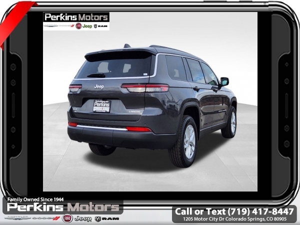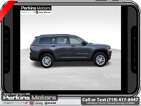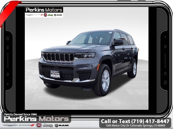 Factory MSRP: $46,215 $6,500 off MSRP! Priced below KBB Fair Purchase Price! Baltic Gray Metallic Clearcoat 2025 Jeep Grand Cherokee L Laredo 4WD 8-Speed Automatic 3.6L V6 24V VVT<br><br>Check us out at www.perkinsmotors.com to see our specials! Since opening our doors in 1944, we’ve been proud to serve Colorado Springs, CO, and the surrounding areas of Pueblo, Castle Rock and Denver, CO. Throughout this time of being family owned for 80 years, we’ve maintained a firm commitment to our customers: to offer a wide selection of New Chrysler, Dodge, Fiat, Jeep, and Ram vehicles and quality pre-owned vehicles, and provide a quick, no-hassle car-buying process that ensures everyone drives off the lot satisfied with their purchase.<br><br>Luxury Tech Group I (115V Auxiliary Power Outlet, Remote Start System, and Selectable Tire Fill Alert), Quick Order Package 23A Laredo, Trailer Tow Package (180 Amp Alternator), 3.45 Rear Axle Ratio, 3rd row seats: split-bench, 4-Wheel Disc Brakes, 6 Speakers, ABS brakes, Air Conditioning, Alloy wheels, Anti-whiplash front head restraints, Automatic temperature control, Brake assist, Bumpers: body-color, Cloth Seats, Compass, Cruise Control, Delay-off headlights, Driver door bin, Driver vanity mirror, Dual front impact airbags, Dual front side impact airbags, Electronic Stability Control, Emergency communication system, Four wheel independent suspension, Front anti-roll bar, Front Bucket Seats, Front Center Armrest w/Storage, Front dual zone A/C, Front License Plate Bracket, Front reading lights, Fully automatic headlights, Heated door mirrors, Illuminated entry, Knee airbag, Low tire pressure warning, Manual Fold Seatbacks, Model Year Tracking, Normal Duty Suspension, Occupant sensing airbag, Outside temperature display, Overhead airbag, Overhead console, Panic alarm, ParkView Rear Back-Up Camera, Passenger door bin, Passenger vanity mirror, Power door mirrors, Power driver seat, Power steering, Power windows, Radio data system, Radio: Uconnect 5 w/8.4 Display, Rear air conditioning, Rear anti-roll bar, Rear reading lights, Rear window defroster, Rear window wiper, Reclining 3rd row seat, Remote keyless entry, Security system, Speed-Sensitive Wipers, Split folding rear seat, Spoiler, Steering wheel mounted audio controls, Tachometer, Telescoping steering wheel, Tilt steering wheel, Traction control, Trip computer, Variably intermittent wipers, Voltmeter, and Wheels: 18 x 8.0 Fully Painted Aluminum. Sale price includes all manufacture's incentives and dealer discounts. Sale price not available on lease or compatible with special APR. $1000 - 2025 National Retail Consumer Cash. Exp. 03/03/2025 $1000 - 2025 West BC Bonus Cash . Exp. 03/03/2025 $1500 - 2025 National Presidents Day Retail Bonus Cash. Exp. 03/03/2025