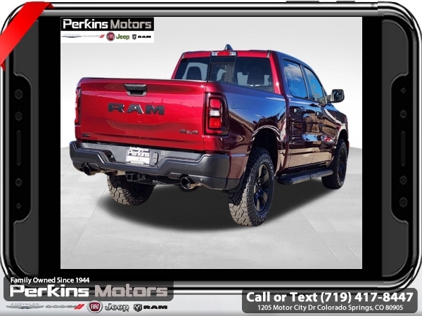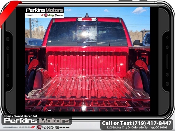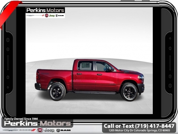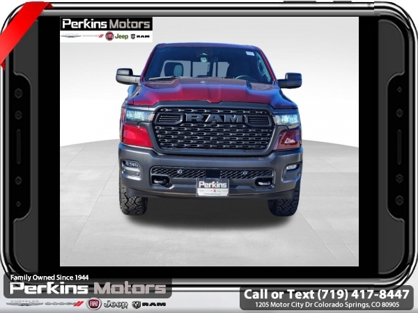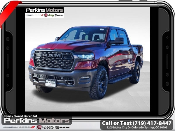 Factory MSRP: $57,390 $12,000 off MSRP! Priced below KBB Fair Purchase Price! Delmonico Red Pearlcoat 2025 Ram 1500 WARLOCK 4WD 8-Speed Automatic 3.0L I6<br>ABS brakes, Compass, Electronic Stability Control, Heated door mirrors, Illuminated entry, Low tire pressure warning, Manual Folding Exterior Mirrors, ParkView Rear Back-Up Camera, Remote keyless entry, Traction control.<br>Check us out at www.perkinsmotors.com to see our specials! Since opening our doors in 1944, we’ve been proud to serve Colorado Springs, CO, and the surrounding areas of Pueblo, Castle Rock and Denver, CO. Throughout this time of being family owned for 80 years, we’ve maintained a firm commitment to our customers: to offer a wide selection of New Chrysler, Dodge, Fiat, Jeep, and Ram vehicles and quality pre-owned vehicles, and provide a quick, no-hassle car-buying process that ensures everyone drives off the lot satisfied with their purchase.<br><br>ABS brakes, Compass, Electronic Stability Control, Heated door mirrors, Illuminated entry, Low tire pressure warning, Manual Folding Exterior Mirrors, ParkView Rear Back-Up Camera, Remote keyless entry, Traction control, 3.21 Rear Axle Ratio, 4 Way Front Headrests, 4-Wheel Disc Brakes, 40/20/40 Split Bench Seat, 6 Speakers, Air Conditioning, AM/FM radio, Apple CarPlay/Android Auto, Auto High-beam Headlights, Black Exterior Mirrors, Brake assist, Cruise Control, Delay-off headlights, Driver door bin, Dual front impact airbags, Dual front side impact airbags, Exterior Mirrors w/Heating Element, Front anti-roll bar, Front Center Armrest, Front reading lights, Front wheel independent suspension, Fully automatic headlights, Heavy Duty Vinyl 40/20/40 Split Bench Seat, Manual Adjust 4-Way Driver Seat, Manual Adjust 4-Way Front Passenger Seat, Occupant sensing airbag, Outside temperature display, Overhead airbag, Overhead console, Panic alarm, Passenger door bin, Passenger vanity mirror, Power door mirrors, Power steering, Power windows, Radio data system, Radio: Uconnect 5 W w/8.4 Display, RAM Grille Badge - Black, Rear anti-roll bar, Rear step bumper, Tachometer, Telescoping steering wheel, Tilt steering wheel, Variably intermittent wipers, Voltmeter, and Wheels: 18 x 7.5 Steel Painted. Sale price includes all manufacture's incentives and dealer discounts. Sale price not available on lease or compatible with special APR. $1000 - 2025 National Truck Month Bonus Cash . Exp. 04/30/2025 $1500 - 2025 National Bonus Cash . Exp. 04/30/2025 $1500 - 2025 National Conquest Dealer Cash. Exp. 04/30/2025 $4000 - 2025 National Retail Consumer Cash. Exp. 04/30/2025