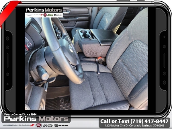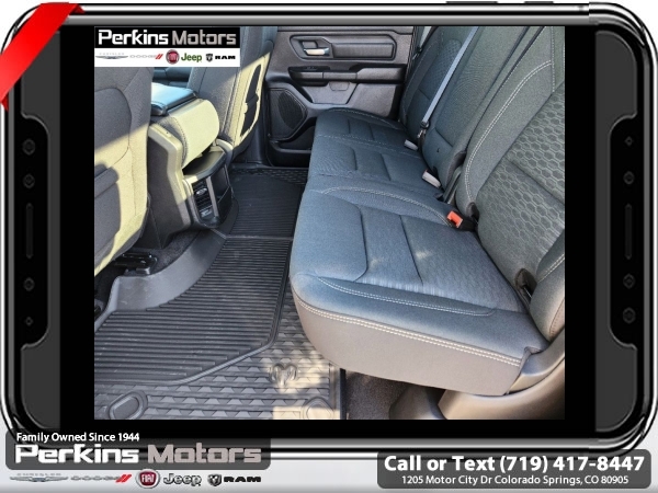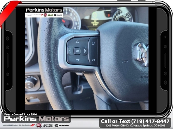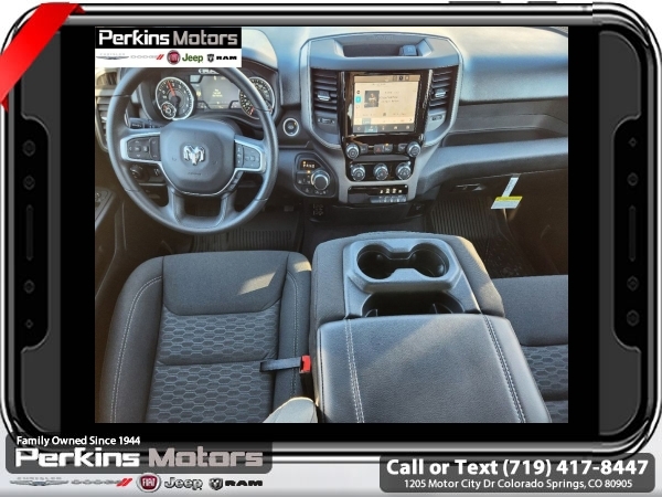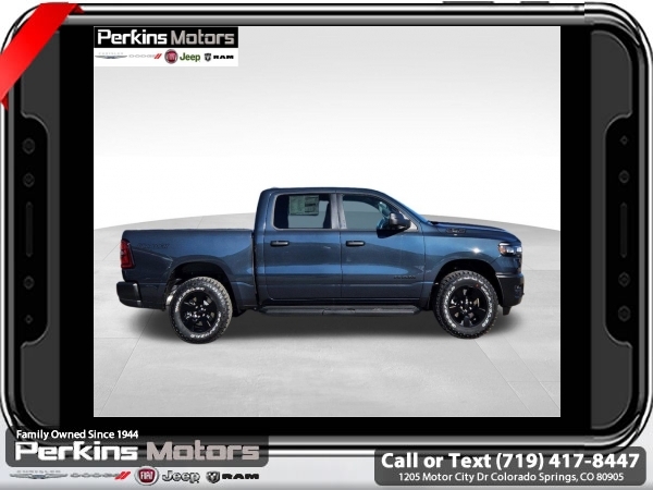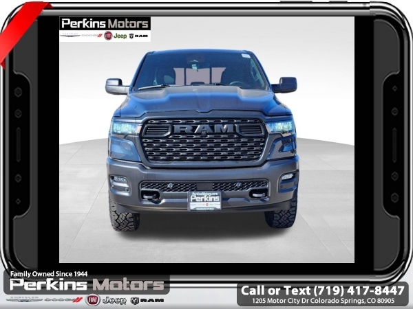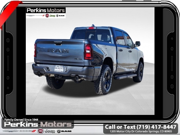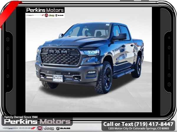 Factory MSRP: $57,440 $10,500 off MSRP! Priced below KBB Fair Purchase Price! River Rock 2025 Ram 1500 4WD 8-Speed Automatic 3.0L I6<br><br>Check us out at www.perkinsmotors.com to see our specials! Since opening our doors in 1944, we’ve been proud to serve Colorado Springs, CO, and the surrounding areas of Pueblo, Castle Rock and Denver, CO. Throughout this time of being family owned for 80 years, we’ve maintained a firm commitment to our customers: to offer a wide selection of New Chrysler, Dodge, Fiat, Jeep, and Ram vehicles and quality pre-owned vehicles, and provide a quick, no-hassle car-buying process that ensures everyone drives off the lot satisfied with their purchase.<br><br>Quick Order Package 21B Warlock (115V Auxiliary Power Outlet, 400W Inverter, Dual Exhaust w/Black Tips, E-Locker Rear Axle, Front Performance Tuned Shock Absorbers, MOPAR Front & Rear Rubber Floor Mats, Raised Ride Height, Warlock Decal, and Wheels: 18 x 8.0 Black Painted Aluminum), 3.21 Rear Axle Ratio, 3.92 Rear Axle Ratio, 4 Way Front Headrests, 4-Wheel Disc Brakes, 40/20/40 Split Bench Seat, 6 Speakers, ABS brakes, Air Conditioning, AM/FM radio, Apple CarPlay/Android Auto, Auto High-beam Headlights, Black Exterior Mirrors, Brake assist, Compass, Cruise Control, Delay-off headlights, Driver door bin, Dual front impact airbags, Dual front side impact airbags, Electronic Stability Control, Exterior Mirrors w/Heating Element, Front anti-roll bar, Front Center Armrest, Front License Plate Bracket, Front reading lights, Front wheel independent suspension, Fully automatic headlights, Heated door mirrors, Heavy Duty Vinyl 40/20/40 Split Bench Seat, Illuminated entry, Low tire pressure warning, Manual Adjust 4-Way Driver Seat, Manual Adjust 4-Way Front Passenger Seat, Manual Folding Exterior Mirrors, Manufacturer's Statement of Origin, Mopar Black Tubular Side Steps, Occupant sensing airbag, Outside temperature display, Overhead airbag, Overhead console, Panic alarm, ParkView Rear Back-Up Camera, Passenger door bin, Passenger vanity mirror, Power door mirrors, Power steering, Power windows, Radio data system, Radio: Uconnect 5 W w/8.4 Display, RAM Grille Badge - Black, Rear anti-roll bar, Rear step bumper, Remote keyless entry, Tachometer, Telescoping steering wheel, Tilt steering wheel, Traction control, Variably intermittent wipers, Voltmeter, and Wheels: 18 x 7.5 Steel Painted. Sale price includes all manufacture's incentives and dealer discounts. Sale price not available on lease or compatible with special APR. $1000 - 2025 National Truck Month Bonus Cash . Exp. 03/31/2025 $1500 - 2025 National Bonus Cash . Exp. 03/31/2025 $4000 - 2025 National Retail Consumer Cash. Exp. 03/31/2025
