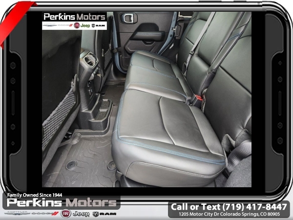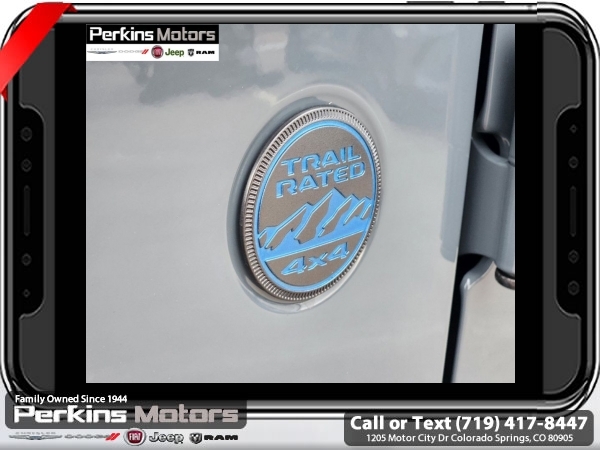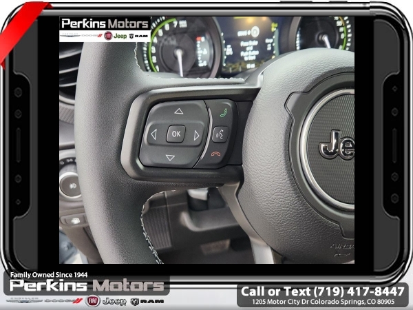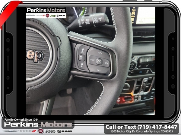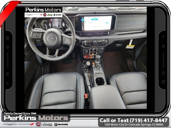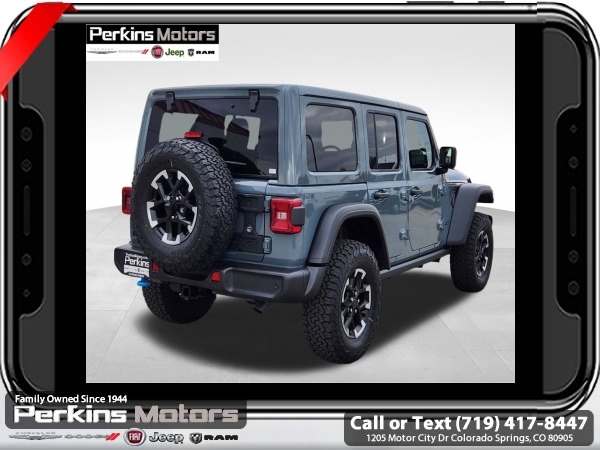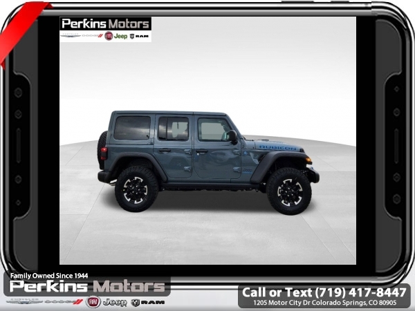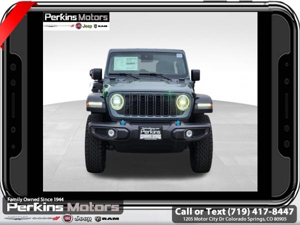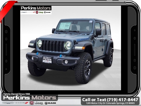 Factory MSRP: $74,750 $9,674 off MSRP! Anvil Clear Coat 2025 Jeep Wrangler Rubicon 4xe 4WD 8-Speed Automatic 2.0L I4 DOHC<br>2.0L I4 DOHC.<br>Check us out at www.perkinsmotors.com to see our specials! Since opening our doors in 1944, we’ve been proud to serve Colorado Springs, CO, and the surrounding areas of Pueblo, Castle Rock and Denver, CO. Throughout this time of being family owned for 80 years, we’ve maintained a firm commitment to our customers: to offer a wide selection of New Chrysler, Dodge, Fiat, Jeep, and Ram vehicles and quality pre-owned vehicles, and provide a quick, no-hassle car-buying process that ensures everyone drives off the lot satisfied with their purchase.<br><br>Convenience Group (Heated Front Seats, Heated Steering Wheel, Remote Start System, and Universal Garage Door Opener), Quick Order Package 29V Rubicon 4xe, Safety Group (Auto High Beam Headlamp Control, Blind Spot & Cross Path Detection, and ParkSense Rear Park Assist System), Technology Group (12.3 Touchscreen Display, 4G LTE Wi-Fi Hot Spot, Apple CarPlay, Auto-Dimming Rear-View Mirror, Connected Travel & Traffic Services, Connectivity - US/Canada, Google Android Auto, GPS Navigation, HD Radio, Integrated Off-Road Camera, Integrated Voice Command w/Bluetooth, Radio: Uconnect 5 Nav w/12.3 Display, SiriusXM Radio Service, and SiriusXM w/360L), 2.0L I4 DOHC, 4-Wheel Disc Brakes, 4.10 Rear Axle Ratio, 7 & 4 Pin Wiring Harness, 8 Speakers, ABS brakes, Air Conditioning, Alloy wheels, Alpine Premium Audio System, AM/FM radio: SiriusXM, Apple CarPlay/Android Auto, Automatic temperature control, Body Color 3-Piece Hard Top, Brake assist, Compass, Cruise Control, Delay-off headlights, Driver door bin, Driver vanity mirror, Dual front impact airbags, Dual front side impact airbags, Electronic Stability Control, Emergency communication system: Jeep Connect, Freedom Panel Storage Bag, Front anti-roll bar, Front Bucket Seats, Front Center Armrest w/Storage, Front dual zone A/C, Front fog lights, Front License Plate Bracket (DISC), Front reading lights, Fully automatic headlights, Heated door mirrors, Illuminated entry, Integrated roll-over protection, Jeep Trail Rated Kit, Low tire pressure warning, MOPAR All-Weather Floor Mats, MOPAR Doors Off Mirror Kit, MOPAR Hardtop Headliner, MOPAR Hinge-Gate Reinforcement, Occupant sensing airbag, Outside temperature display, Overhead airbag, Panic alarm, ParkView Rear Back-Up Camera, Passenger door bin, Passenger vanity mirror, Performance Suspension, Power door mirrors, Power steering, Power windows, Radio data system, Radio: Uconnect 5 w/12.3 Display, Rear anti-roll bar, Rear reading lights, Rear Window Defroster, Rear Window Wiper/Washer, Remote keyless entry, Security system, Split folding rear seat, Steering wheel mounted audio controls, Sustainable Premium Cloth Seats, Tachometer, Telescoping steering wheel, Tilt steering wheel, Traction control, Trip computer, Variably intermittent wipers, Voltmeter, and Wheels: 17 x 7.5 Machined w/Black Pockets. Sale price includes all manufacture's incentives and dealer discounts. Sale price not available on lease or compatible with special APR. $2000 - 2025 National Retail Consumer Cash. Exp. 06/30/2025