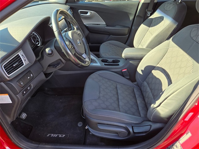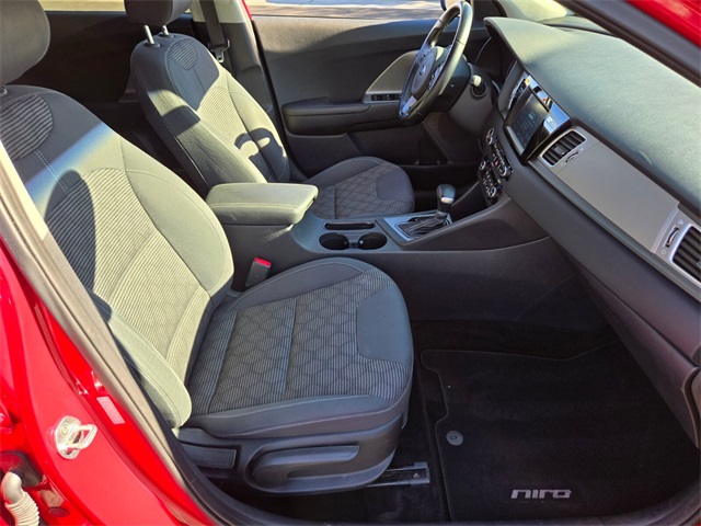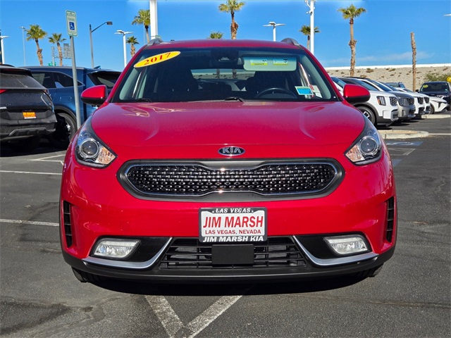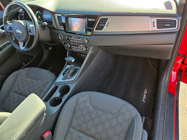 Recent Arrival!Odometer is 41549 miles below market average!51/46 City/Highway MPGCrimson Red 2017 Kia Niro LX FWD Dual Clutch 6-Speed Automatic 1.6L I4 1.6L I4.If you don't drive here, you can't save here!Awards: * 2017 KBB.com 10 Best Hybrid Cars Under $40,000 * 2017 KBB.com 10 Most Awarded BrandsPrice may not include recon fee. LX Advanced Technology Package (Autonomous Emergency Braking, Forward Collision Warning, Front Fog Lights, Lane Departure Warning System, Leather TGS Knob, Leather Wrapped Steering Wheel, LED Daytime Running Lights, and Smart Cruise Control), 1.6L I4, 3.23 Axle Ratio, 4-Wheel Disc Brakes, 6 Speakers, ABS brakes, Air Conditioning, Alloy wheels, AM/FM radio: SiriusXM, Apple CarPlay & Android Auto, Automatic temperature control, Bodyside moldings, Brake assist, Bumpers: body-color, Cargo Net, Carpet Floor Mats, Cloth-Trimmed Seats, Delay-off headlights, Driver door bin, Driver vanity mirror, Dual front impact airbags, Dual front side impact airbags, Electronic Stability Control, Emergency communication system: UVO eServices 911 Connect, Exterior Parking Camera Rear, Four wheel independent suspension, Front anti-roll bar, Front Bucket Seats, Front Center Armrest, Front dual zone A/C, Front reading lights, Fully automatic headlights, Illuminated entry, Knee airbag, Low tire pressure warning, Occupant sensing airbag, Outside temperature display, Overhead airbag, Overhead console, Panic alarm, Passenger door bin, Passenger vanity mirror, Power door mirrors, Power steering, Power windows, Radio: AM/FM/MP3/SiriusXM Audio System, Rear anti-roll bar, Rear seat center armrest, Rear window defroster, Rear window wiper, Remote keyless entry, Roof rack: rails only, Security system, Speed control, Speed-sensing steering, Split folding rear seat, Spoiler, Steering wheel mounted audio controls, Telescoping steering wheel, Tilt steering wheel, Traction control, Trip computer, Variably intermittent wipers, and Wheels: 16" Alloy w/Full Covers.