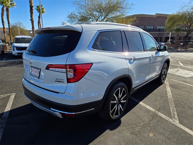 CARFAX One-Owner.Priced below KBB Fair Purchase Price!19/26 City/Highway MPG2021 Honda Pilot Elite AWD 9-Speed Automatic 3.5L V6 24V SOHC i-VTEC AWD.If you don't drive here, you can't save here!Price may not include recon fee. AWD, 10 Speakers, 3rd row seats: split-bench, 4-Wheel Disc Brakes, 4.33 Axle Ratio, A/V remote: CabinControl, ABS brakes, Air Conditioning, Alloy wheels, AM/FM radio: SiriusXM, Apple CarPlay/Android Auto, Auto High-beam Headlights, Auto-dimming door mirrors, Auto-dimming Rear-View mirror, Automatic temperature control, Blind Spot Information (BSI) System warning, Brake assist, Bumpers: body-color, Compass, Delay-off headlights, Driver door bin, Driver vanity mirror, Dual front impact airbags, Dual front side impact airbags, Electronic Stability Control, Emergency communication system: HondaLink, Exterior Parking Camera Rear, Forward collision: Collision Mitigation Braking System (CMBS) + FCW mitigation, Four wheel independent suspension, Front anti-roll bar, Front Bucket Seats, Front Center Armrest, Front dual zone A/C, Front fog lights, Front reading lights, Fully automatic headlights, Garage door transmitter: HomeLink, Headphones, Heated & Ventilated Front Bucket Seats, Heated door mirrors, Heated front seats, Heated rear seats, Heated steering wheel, Honda Satellite-Linked Navigation System, Illuminated entry, Lane departure: Lane Keeping Assist System (LKAS) active, Low tire pressure warning, Memory seat, Navigation system: Honda Satellite-Linked Navigation System, Occupant sensing airbag, Outside temperature display, Overhead airbag, Overhead console, Panic alarm, Passenger door bin, Passenger vanity mirror, Perforated Leather Seat Trim, Power door mirrors, Power driver seat, Power Liftgate, Power moonroof, Power passenger seat, Power steering, Power windows, Radio data system, Radio: 590-Watt Premium Audio System, Rain sensing wipers, Rear air conditioning, Rear anti-roll bar, Rear audio controls, Rear reading lights, Rear window defroster, Rear window wiper, Reclining 3rd row seat, Remote keyless entry, Roof rack: rails only, Security system, Speed control, Speed-sensing steering, Speed-Sensitive Wipers, Split folding rear seat, Spoiler, Steering wheel mounted audio controls, Tachometer, Telescoping steering wheel, Tilt steering wheel, Traction control, Trip computer, Turn signal indicator mirrors, Variably intermittent wipers, Ventilated front seats, and Wheels: 20" Machine-Finished Alloy.