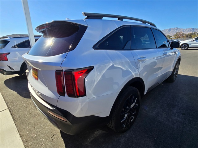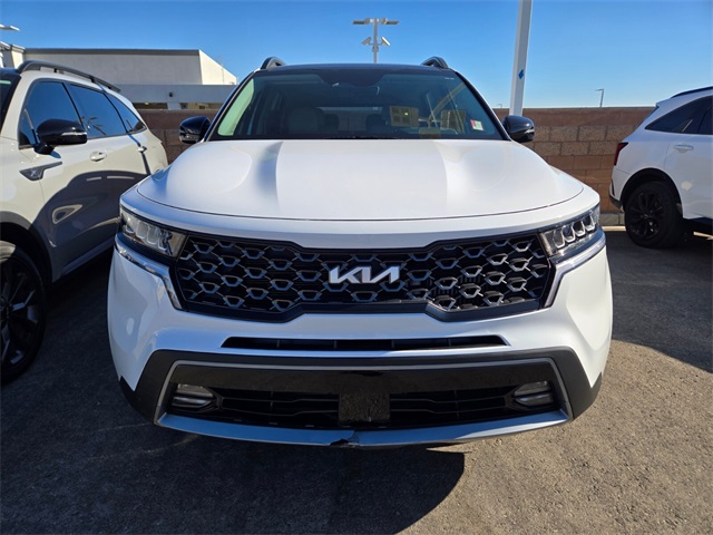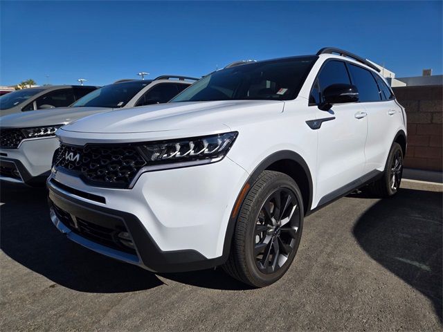 Recent Arrival!22/27 City/Highway MPGGlacial White Pearl 2022 Kia Sorento X-Line EX AWD 8-Speed DCT 2.5L I4 DGI Turbocharged DOHC 16V LEV3-ULEV70 281hp AWD.If you don't drive here, you can't save here!Price may not include recon fee. AWD, 3.316 Axle Ratio, 3rd row seats: split-bench, 4-Wheel Disc Brakes, 6 Speakers, ABS brakes, Air Conditioning, Alloy wheels, AM/FM radio: SiriusXM, Apple CarPlay & Android Auto, Auto High-beam Headlights, Automatic temperature control, Brake assist, Bumpers: body-color, Delay-off headlights, Driver door bin, Driver vanity mirror, Dual front impact airbags, Dual front side impact airbags, Electronic Stability Control, Emergency communication system: UVO Link, Exterior Parking Camera Rear, Four wheel independent suspension, Front anti-roll bar, Front Bucket Seats, Front Center Armrest, Front dual zone A/C, Front fog lights, Front reading lights, Fully automatic headlights, Heated door mirrors, Heated Front Bucket Seats, Heated front seats, Illuminated entry, Knee airbag, Leather Shift Knob, Leather steering wheel, Low tire pressure warning, Navigation System, Occupant sensing airbag, Outside temperature display, Overhead airbag, Overhead console, Panic alarm, Passenger door bin, Passenger vanity mirror, Power door mirrors, Power driver seat, Power Liftgate, Power moonroof, Power steering, Power windows, Radio data system, Radio: AM/FM Audio System, Rear air conditioning, Rear anti-roll bar, Rear reading lights, Rear window defroster, Rear window wiper, Remote keyless entry, Roof rack: rails only, Security system, Smart Key w/ Push Button and Remote Start, Speed control, Speed-sensing steering, Split folding rear seat, Spoiler, Steering wheel mounted audio controls, SynTex Artificial Leather Seat Trim, Tachometer, Telescoping steering wheel, Tilt steering wheel, Traction control, Trip computer, Turn signal indicator mirrors, Variably intermittent wipers, and Wheels: 8.5J x 20" Matte Gray Alloy.