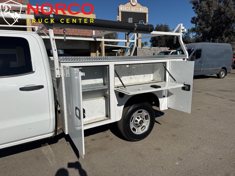 INSTALLED FEATURES: Air filtration, Front air conditioning, Front air conditioning zones: single, Airbag deactivation: occupant sensing passenger, Front airbags: dual, Side airbags: front, Side curtain airbags: front / rear, Antenna type: mast, Auxiliary audio input: Bluetooth / USB / iPod/iPhone / jack, Radio: AM/FM / touch screen display, Radio data system, Speed sensitive volume control, Total speakers: 6, ABS: 4-wheel, Braking assist, Electronic brakeforce distribution, Front brake diameter: 14.0, Front brake type: ventilated disc, Front brake width: 1.57, Power brakes, Rear brake diameter: 14.2, Rear brake type: ventilated disc, Rear brake width: 1.34, Armrests: front center, Floor material: rubber/vinyl, Steering wheel trim: urethane, Assist handle: front / rear, Capless fuel filler system, Cruise control, Cupholders: front, One-touch windows: 4, Overhead console: front, Power outlet(s): 12V front, Power steering, Power windows: lockout button, Reading lights: front, Rearview mirror: manual day/night, Steering wheel: tilt, Steering wheel mounted controls: cruise control, Storage: door pockets / front seatback / sunglasses holder, Sun visors, Axle ratio: 4.10, Locking differential: rear, Alternator: 150 amps, Auxiliary oil cooler, Battery: heavy duty / maintenance-free, Battery rating: 720 CCA, Battery saver, Bumper detail: rear step, Door handle color: black, Exhaust tip color: stainless steel, Front bumper color: chrome, Grille color: chrome, Mirror color: black, Pickup bed light, Rear bumper color: chrome, Tailgate: lift assist / removable, Window trim: black, Infotainment: Chevrolet Infotainment System, Infotainment screen size: 7 in., Smartphone integration: Android Auto / Apple CarPlay, Clock, Digital odometer, External temperature display, Fuel economy display: MPG / range, Gauge: oil pressure / tachometer, Instrument cluster screen size: 3.5 in., Multi-function display, Powertrain hour meter, Trip odometer, Warnings and reminders: coolant temperature warning / lamp failure / low battery / low fuel level / low oil pressure / maintenance due, Daytime running lights, Headlights: auto delay off / auto on/off / halogen, Side mirror adjustments: manual / manual folding / manual telescoping, Towing mirrors, Camera system: rearview, Check rear seat reminder, Child safety door locks, Child seat anchors: LATCH system, Programmable safety key, Rearview monitor: in dash, Emergency locking retractors: front, Front seatbelts: 3-point, Rear seatbelts: 3-point, Seatbelt pretensioners: front, Seatbelt warning sensor: front, Driver seat manual adjustments: reclining / 4, Front headrests: adjustable / 2, Front seat type: 40-20-40 split bench, Passenger seat manual adjustments: reclining / 4, Rear headrests: adjustable / 2, Rear seat folding: folds up, Rear seat type: bench, Upholstery: vinyl, Anti-theft system: vehicle immobilizer, Power door locks: anti-lockout / auto-locking, Hill holder control, Roll stability control, Stability control, Traction control, Trailer stability control, Steering ratio: 16.1, Turns lock-to-lock: 3.6, Front shock type: twin-tube gas, Front spring type: torsion bars, Front stabilizer bar: diameter 33 mm, Front suspension classification: independent, Front suspension type: short and long arm, Rear shock type: twin-tube gas, Rear spring type: leaf, Rear suspension classification: solid live axle, Rear suspension type: multi-leaf, Electronic messaging assistance: voice operated / with read function, Hands-free phone call integration: voice operated, Wireless data link: Bluetooth, Spare tire mount location: underbody, Spare tire size: full-size, Spare wheel type: steel, Tire Pressure Monitoring System, Tire type: all season, Wheels: steel, Auxiliary transmission fluid cooler, Tow hooks: front, Tow/Haul mode, Trailer brake controller, Trailer hitch, Trailer wiring: 4-pin / 7-pin, Front wipers: variable intermittent, Power windows: safety reverse, Solar-tinted glass