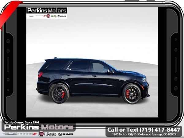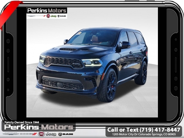 2024 Dodge Durango Hellcat DB Black Crystal Clearcoat | AWD | Supercharged 6.2L HEMI V8<br><br>Unleash 710 horses of pavement-tearing fury with the 2024 Durango Hellcatwhere muscle car DNA meets full-size SUV utility. Featuring the Hellcat Plus Package, Blackout styling, TomTom Navigation, Adaptive Cruise with Stop, Trailer Tow Group, and a panoramic sunroof, this beast is equal parts menace and luxury.<br><br>From the track to the mountains, this AWD supercharged monster is built to dominate whatever dares cross its path.<br><br>Check us out at www.perkinsmotors.com to see our specials! Proudly serving Colorado Springs and beyond since 1944. Family-owned. Performance-driven. Always ready.2024 Dodge Durango Hellcat DB Black Crystal Clearcoat | AWD | Supercharged 6.2L HEMI V8<br><br>Unleash 710 horses of pavement-tearing fury with the 2024 Durango Hellcatwhere muscle car DNA meets full-size SUV utility. Featuring the Hellcat Plus Package, Blackout styling, TomTom Navigation, Adaptive Cruise with Stop, Trailer Tow Group, and a panoramic sunroof, this beast is equal parts menace and luxury.<br><br>From the track to the mountains, this AWD supercharged monster is built to dominate whatever dares cross its path.<br><br>Check us out at www.perkinsmotors.com to see our specials! Proudly serving Colorado Springs and beyond since 1944. Family-owned. Performance-driven. Always ready.