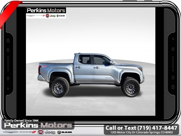 Silver / Black 4WD 2.4L 4-Cylinder 8-Speed Automatic<br><br>MOAB INDUSTRIES LIFT, 4WD, ABS brakes, Alloy wheels, Electronic Stability Control, Heated door mirrors, Illuminated entry, Low tire pressure warning, Remote keyless entry, Traction control.<br><br><br>Check us out at www.perkinsmotors.com to see our specials! Since opening our doors in 1944, we’ve been proud to serve Colorado Springs, CO, and the surrounding areas of Pueblo, Castle Rock and Denver, CO. Throughout this time of being family owned for 80 years, we’ve maintained a firm commitment to our customers: to offer a wide selection of New Chrysler, Dodge, Fiat, Jeep, and Ram vehicles and quality pre-owned vehicles, and provide a quick, no-hassle car-buying process that ensures everyone drives off the lot satisfied with their purchase.<br><br><br>4WD, ABS brakes, Alloy wheels, Electronic Stability Control, Heated door mirrors, Illuminated entry, Low tire pressure warning, Remote keyless entry, Traction control, 3.583 Axle Ratio, 4-Wheel Disc Brakes, 6 Speakers, Air Conditioning, AM/FM radio: SiriusXM, Anti-whiplash front head restraints, Apple CarPlay/Android Auto, Auto High-beam Headlights, Auto-dimming Rear-View mirror, Brake assist, Bumpers: body-color, Cruise Control, Driver door bin, Dual front impact airbags, Dual front side impact airbags, Emergency communication system: Safety Connect (1-year trial), Exterior Parking Camera Rear, Four wheel independent suspension, Front anti-roll bar, Front Bucket Seats, Front Center Armrest, Front fog lights, Front reading lights, Fully automatic headlights, Knee airbag, Occupant sensing airbag, Outside temperature display, Overhead airbag, Overhead console, Panic alarm, Passenger door bin, Power door mirrors, Power steering, Power windows, Radio: 8 Toyota Audio Multimedia, Rear step bumper, Rear window defroster, Speed-sensing steering, Split folding rear seat, Steering wheel mounted audio controls, Tachometer, Telescoping steering wheel, Tilt steering wheel, Trip computer, Variably intermittent wipers, and Wheels: 17 Styled Alloy.