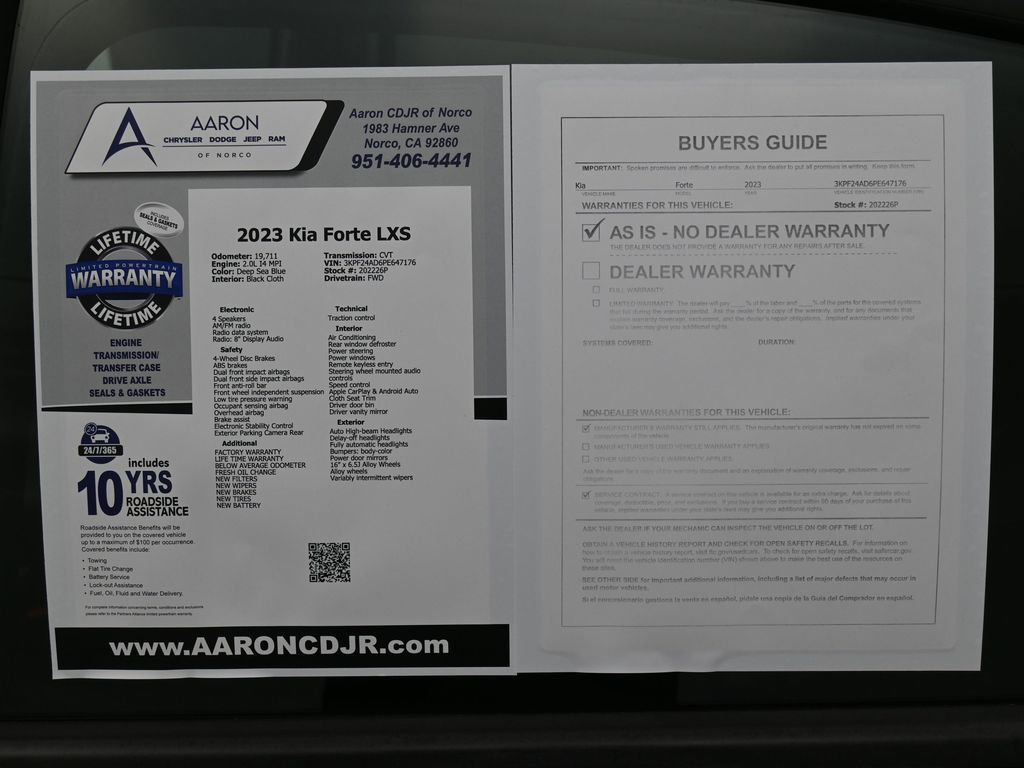 Priced below KBB Fair Purchase Price!FACTORY WARRANTY, LIFE TIME WARRANTY, FRESH OIL CHANGE, NEW FILTERS, NEW WIPERS, Forte LXS, 4D Sedan, 2.0L I4 MPI, FWD, Alloy wheels, Apple CarPlay & Android Auto, Exterior Parking Camera Rear, Front anti-roll bar, Low tire pressure warning, Radio: 8" Display Audio.For help with any Vehicle needs please call us directly at 951-621-1288.Clean CARFAX.CARFAX One-Owner.