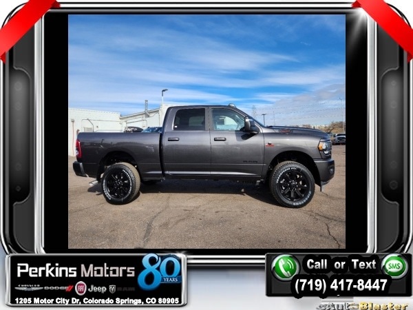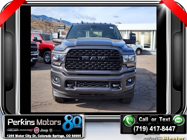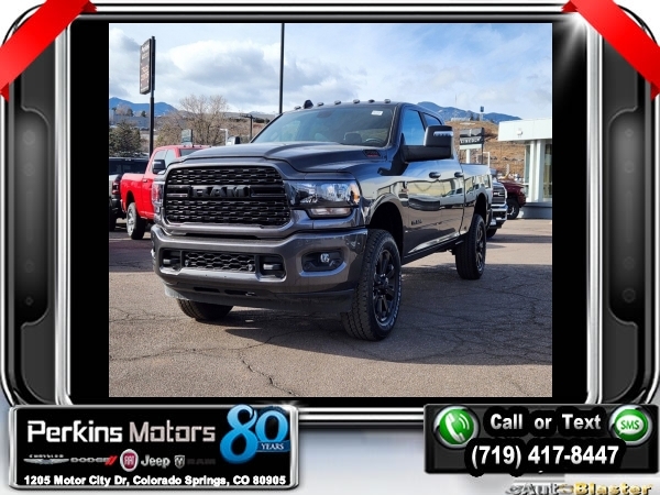 Factory MSRP: $76,035 $9,500 off MSRP! Granite Crystal Metallic Clearcoat 2024 Ram 2500 Big Horn 4WD 6-Speed Automatic Cummins 6.7L I6 Turbodiesel<br><br>Check us out at www.perkinsmotors.com to see our specials! Since opening our doors in 1944, we’ve been proud to serve Colorado Springs, CO, and the surrounding areas of Pueblo, Castle Rock and Denver, CO. Throughout this time of being family owned for 80 years, we’ve maintained a firm commitment to our customers: to offer a wide selection of New Chrysler, Dodge, Fiat, Jeep, and Ram vehicles and quality pre-owned vehicles, and provide a quick, no-hassle car-buying process that ensures everyone drives off the lot satisfied with their purchase.<br><br>Heated Seats & Wheel Group (Heated Front Seats, Heated Steering Wheel, Leather Wrapped Steering Wheel, and Steering Wheel Mounted Audio Controls), Level 1 Equipment Group (2 Way Rear Headrest Seat, 2nd Row In Floor Storage Bins, 4 Way Front Headrests, 40/20/40 Split Bench Seat, 4G LTE Wi-Fi Hot Spot, 8.4 Touchscreen Display, Apple CarPlay, Auto Power-Folding Mirrors, Big Horn IP Badge, Black Exterior Mirrors, Bluetooth Handsfree Phone & Audio, Center Hub, Connectivity - US/Canada, Dual Glove Boxes, Exterior Mirrors Courtesy Lamps, Exterior Mirrors w/Heating Element, Exterior Mirrors w/Supplemental Signals, Foam Bottle Insert (Door Trim Panel), Footwell Courtesy Lamp, For Details, Visit DriveUconnect.com, For More Info, Call 800-643-2112, Forward & Reverse Utility Lights, Front Armrest w/Cupholders, Front Center Seat Cushion Storage, Front Fog Lamps, Front Seat Back Map Pockets, Global Telematics Box Module (TBM), Glove Box Lamp, Google Android Auto, GPS Antenna Input, Integrated Center Stack Radio, Integrated Voice Command w/Bluetooth, Locking Lower Glove Box, Manual Adjust 4-Way Front Passenger Seat, Mirror Running Lights, Power 2-Way Driver Lumbar Adjust, Power Adjust 8-Way Driver Seat, Power Adjust Mirrors, Power Adjustable Convex Aux Mirrors, Power Heated Fold Telescope Mirrors, Power Telescoping Mirrors, Rear 60/40 Folding Seat, Rear Dome w/On/Off Switch Lamp, Remote USB Port - Charge Only, Selectable Tire Fill Alert, SiriusXM Radio Service, SiriusXM Satellite Radio, Storage Tray, and Wheels: 18 x 8.0 Polished Aluminum), Night Edition (Black Exterior Truck Badging, Black Headlamp Bezels, Black Interior Accents, Black Ram Head Tailgate Badge, Black Tail Lamp Bezels, Black Wheel Center Hub, Body Color Door Handles, Body Color Grille Surround, Gloss Black Nostrils/MIC Black Grille, Painted Front Bumper, Painted Rear Bumper, ParkSense Front/Rear Park Assist System, and Wheels: 20 x 8.0 Black Painted Aluminum), Protection Group (Tow Hooks), Quick Order Package 2HZ Big Horn, 220 Amp Alternator, 3.73 Axle Ratio, 4-Wheel Disc Brakes, 5th Wheel/Gooseneck Towing Prep Group, 6 Speakers, 9 Alpine Speakers w/Subwoofer, ABS brakes, Active Noise Control System, Air Conditioning, Air Conditioning ATC w/Dual Zone Control, Alexa Built-In, All R1 High Radios, All Radio Equipped Vehicles, Anti-Spin Differential Rear Axle, Brake assist, Bumpers: chrome, Center Stack Storage Drawer, Clearance Lamps, Cloth 40/20/40 Bench Seat, Compass, Connected Travel & Traffic Services, Cruise Control, Dash Pass Thru Wire Circuits, Delay-off headlights, Disassociated Touchscreen Display, Driver door bin, Dual front impact airbags, Dual front side impact airbags, Electronic Stability Control, Electronically Controlled Throttle, Emergency communication system: SiriusXM Guardian, Engine Block Heater, Front anti-roll bar, Front Center Armrest w/Storage, Front License Plate Bracket, Front reading lights, Fully automatic headlights, GPS Navigation, HD Radio, Heated door mirrors, I/P Mounted Auxiliary Switches, Illuminated entry, Low tire pressure warning, Manual Adjust 4-Way Driver Seat, Ma Sale price includes all manufacture's incentives and dealer discounts. Sale price not available on lease or compatible with special APR. $1000 - 2024 Bonus Cash . Exp. 0