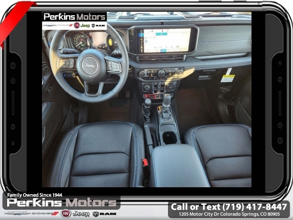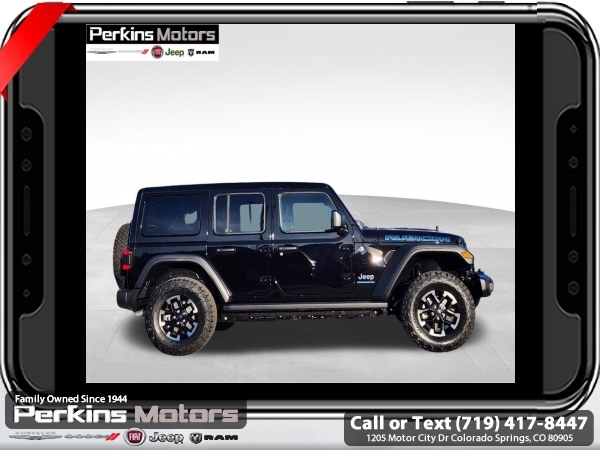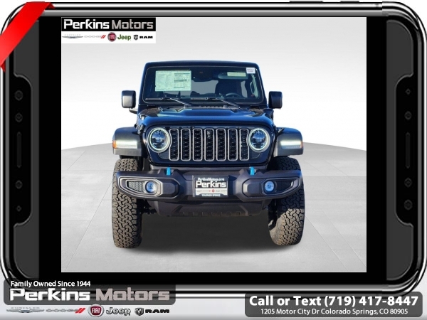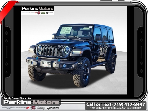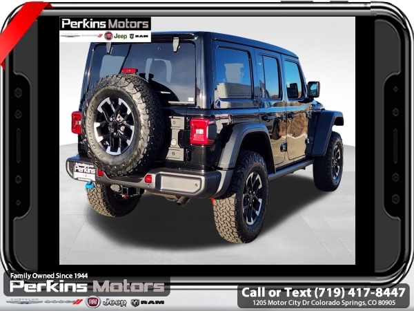 Factory MSRP: $76,195 $14,100 off MSRP! Black Clearcoat 2025 Jeep Wrangler Rubicon 4xe 4WD 8-Speed Automatic 2.0L I4 DOHC<br>2.0L I4 DOHC.<br>Check us out at www.perkinsmotors.com to see our specials! Since opening our doors in 1944, we’ve been proud to serve Colorado Springs, CO, and the surrounding areas of Pueblo, Castle Rock and Denver, CO. Throughout this time of being family owned for 80 years, we’ve maintained a firm commitment to our customers: to offer a wide selection of New Chrysler, Dodge, Fiat, Jeep, and Ram vehicles and quality pre-owned vehicles, and provide a quick, no-hassle car-buying process that ensures everyone drives off the lot satisfied with their purchase.<br><br>Convenience Group (Heated Steering Wheel), Quick Order Package 29V Rubicon 4xe, Safety Group (Blind Spot & Cross Path Detection), Technology Group (12.3 Touchscreen Display, 4G LTE Wi-Fi Hot Spot, Apple CarPlay, Connected Travel & Traffic Services, Connectivity - US/Canada, Google Android Auto, GPS Navigation, Integrated Voice Command w/Bluetooth, Radio: Uconnect 5 Nav w/12.3 Display, SiriusXM Radio Service, and SiriusXM w/360L), 2.0L I4 DOHC, 4-Wheel Disc Brakes, 4.10 Rear Axle Ratio, 7 & 4 Pin Wiring Harness, 8 Speakers, ABS brakes, Air Conditioning, Alloy wheels, AM/FM radio: SiriusXM, Apple CarPlay/Android Auto, Automatic temperature control, Brake assist, Compass, Cruise Control, Delay-off headlights, Driver door bin, Driver vanity mirror, Dual front impact airbags, Dual front side impact airbags, Electronic Stability Control, Emergency communication system: Jeep Connect, Front anti-roll bar, Front Bucket Seats, Front Center Armrest w/Storage, Front dual zone A/C, Front fog lights, Front License Plate Bracket (DISC), Front reading lights, Fully automatic headlights, Heated door mirrors, Illuminated entry, Integrated roll-over protection, Jeep Trail Rated Kit, Low tire pressure warning, MOPAR All-Weather Floor Mats, MOPAR Doors Off Mirror Kit, MOPAR Hinge-Gate Reinforcement, Occupant sensing airbag, Outside temperature display, Overhead airbag, Panic alarm, ParkView Rear Back-Up Camera, Passenger door bin, Passenger vanity mirror, Performance Suspension, Power door mirrors, Power steering, Power windows, Radio data system, Radio: Uconnect 5 w/12.3 Display, Rear anti-roll bar, Rear reading lights, Rear Window Wiper/Washer, Remote keyless entry, Removable Rear Quarter Windows, Security system, Sky 1-Touch Power Top, Split folding rear seat, Steering wheel mounted audio controls, Sustainable Premium Cloth Seats, Tachometer, Telescoping steering wheel, Tilt steering wheel, Traction control, Trip computer, Variably intermittent wipers, Voltmeter, and Wheels: 17 x 7.5 Machined w/Black Pockets. Sale price includes all manufacture's incentives and dealer discounts. Sale price not available on lease or compatible with special APR. $500 - 2025 National Jeep Celebration Event Bonus Cash . Exp. 03/31/2025 $6500 - 2025 National Retail Consumer Cash. Exp. 03/31/2025