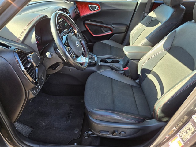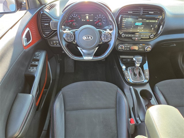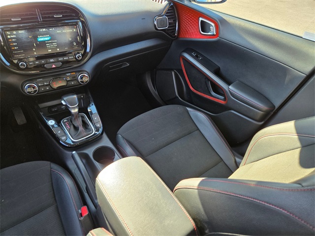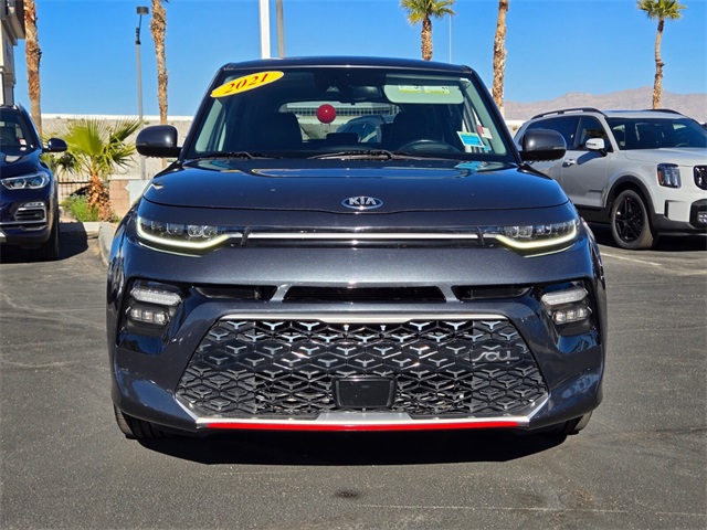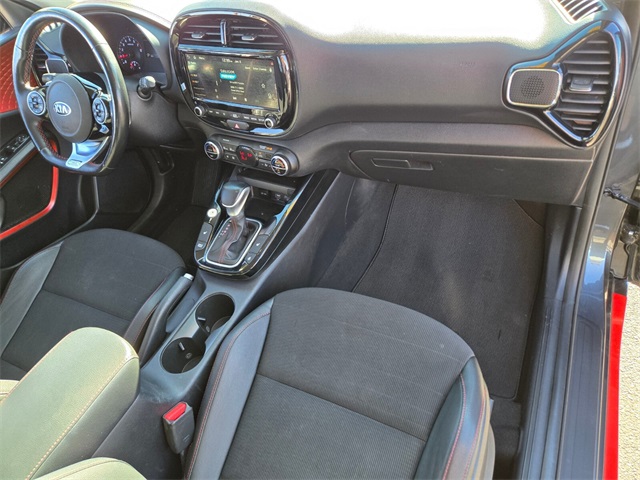 CARFAX One-Owner.Priced below KBB Fair Purchase Price!Odometer is 3795 miles below market average!27/32 City/Highway MPGGravity Gray 2021 Kia Soul Turbo FWD 7-Speed Automatic 1.6L I4 DGI Turbocharged DOHC 16V LEV3-ULEV70 201hpIf you don't drive here, you can't save here!Awards: * JD Power Initial Quality Study (IQS)Price may not include recon fee. 4-Wheel Disc Brakes, 8 Speakers, ABS brakes, Air Conditioning, Alloy wheels, AM/FM radio: SiriusXM, Apple CarPlay & Android Auto, Artificial Leather/Cloth Seat Trim, Automatic temperature control, Brake assist, Bumpers: body-color, Carpeted Floor Mats, Delay-off headlights, Driver door bin, Driver vanity mirror, Dual front impact airbags, Dual front side impact airbags, Electronic Stability Control, Emergency communication system: UVO link, Exterior Parking Camera Rear, Front anti-roll bar, Front Bucket Seats, Front Center Armrest, Front dual zone A/C, Front fog lights, Front reading lights, Front wheel independent suspension, Fully automatic headlights, Heads-Up Display, Heated door mirrors, Heated Front Bucket Seats, Heated front seats, Heated steering wheel, Interior Light Kit, Leather Shift Knob, Leather steering wheel, Low tire pressure warning, Navigation System, Occupant sensing airbag, Outside temperature display, Overhead airbag, Overhead console, Passenger door bin, Passenger vanity mirror, Power door mirrors, Power driver seat, Power moonroof, Power steering, Power windows, Radio: AM/FM/MP3 Audio System, Rear seat center armrest, Rear window defroster, Rear window wiper, Remote keyless entry, Speed control, Speed-sensing steering, Split folding rear seat, Sport steering wheel, Steering wheel mounted audio controls, Tachometer, Telescoping steering wheel, Tilt steering wheel, Traction control, Trip computer, Turn signal indicator mirrors, Variably intermittent wipers, and Wheels: 18" x 7.5 Alloy.