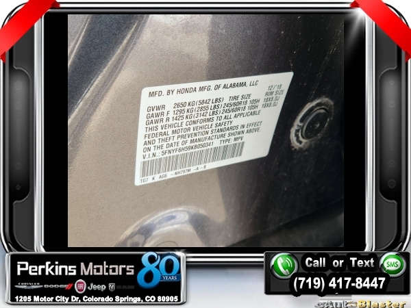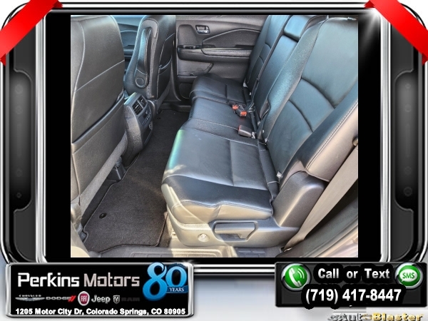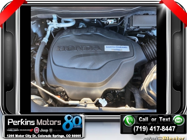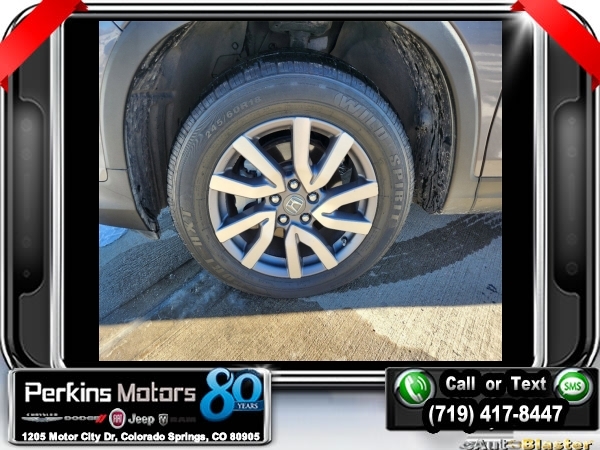 Gray AWD 3.5L V6 24V SOHC i-VTEC 6-Speed Automatic<br><br>AWD, Power moonroof.<br><br><br>Check us out at www.perkinsmotors.com to see our specials! Since opening our doors in 1944, we’ve been proud to serve Colorado Springs, CO, and the surrounding areas of Pueblo, Castle Rock and Denver, CO. Throughout this time of being family owned for 80 years, we’ve maintained a firm commitment to our customers: to offer a wide selection of New Chrysler, Dodge, Fiat, Jeep, and Ram vehicles and quality pre-owned vehicles, and provide a quick, no-hassle car-buying process that ensures everyone drives off the lot satisfied with their purchase.<br><br><br>Awards:<br> * ALG Residual Value Awards, Residual Value Awards<br><br>AWD, Power moonroof, 18 Machine-Finished Alloy Wheels, 3rd row seats: split-bench, 4-Wheel Disc Brakes, 4.25 Axle Ratio, 7 Speakers, A/V remote: CabinControl, ABS brakes, Air Conditioning, Alloy wheels, AM/FM radio: SiriusXM, Apple CarPlay/Android Auto, Auto High-beam Headlights, Auto-dimming Rear-View mirror, Automatic temperature control, Blind Spot Information (BSI) System warning, Brake assist, Bumpers: body-color, Cruise Control, Delay-off headlights, Driver door bin, Driver vanity mirror, Dual front impact airbags, Dual front side impact airbags, Electronic Stability Control, Emergency communication system: HondaLink Assist, Exterior Parking Camera Rear, Forward collision: Collision Mitigation Braking System (CMBS) + FCW mitigation, Four wheel independent suspension, Front anti-roll bar, Front Bucket Seats, Front Center Armrest, Front dual zone A/C, Front fog lights, Front reading lights, Fully automatic headlights, Garage door transmitter: HomeLink, Heated door mirrors, Heated Front Bucket Seats, Heated front seats, Illuminated entry, Lane departure: Lane Keeping Assist System (LKAS) active, Leather Shift Knob, Leather-Trimmed Seats, Low tire pressure warning, Memory seat, Occupant sensing airbag, Outside temperature display, Overhead airbag, Overhead console, Panic alarm, Passenger door bin, Passenger vanity mirror, Power door mirrors, Power driver seat, Power Liftgate, Power passenger seat, Power steering, Power windows, Radio data system, Radio: AM/FM Audio System, Rear air conditioning, Rear anti-roll bar, Rear reading lights, Rear seat center armrest, Rear window defroster, Rear window wiper, Reclining 3rd row seat, Remote keyless entry, Security system, Speed-sensing steering, Speed-Sensitive Wipers, Split folding rear seat, Spoiler, Steering wheel mounted audio controls, Tachometer, Telescoping steering wheel, Tilt steering wheel, Traction control, Trip computer, Turn signal indicator mirrors, and Variably intermittent wipers.