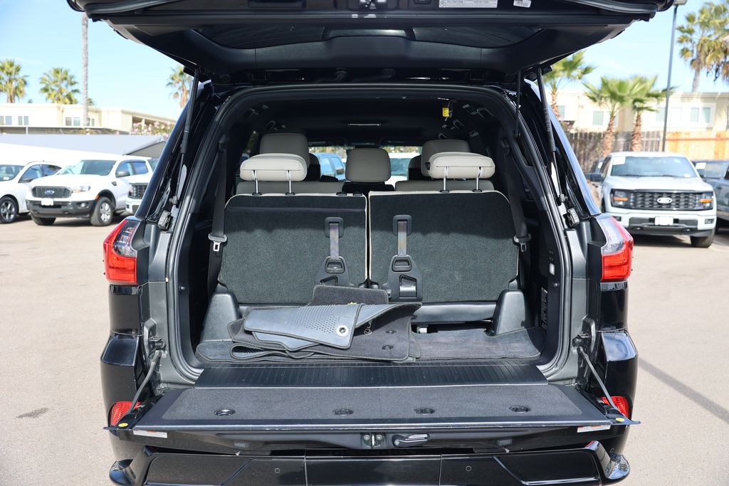 Priced below KBB Fair Purchase Price!Moonlight/Black Roof w/Perforated Semi-Aniline Leather Seat Trim, 3rd row seats: split-bench, 9 Speakers, Accessory Cover, Accessory Package (Z1), Adaptive suspension, Air Conditioning, Alloy Wheel Locks, Auto-leveling suspension, Black Headliner, Black Interior Package, Brake assist, Bumper & Grille Guard, Cargo Net, Carpet Cargo Mat, CD player, Color Head-Up Display, Cool Box, Dual-Screen DVD Rear-Seat Entertainment System, Electronic Stability Control, Exclusive Sport Grille & Front Spoilers, Exclusive Sport Rear Valance, Exclusive Sport-Design Side Mirr. w/ Chrome Detail, Exterior Parking Camera Rear, Four-Zone Climate Concierge, Front & Rear LED Courtesy Lamps w/Logo, Front dual zone A/C, Front fog lights, Fully automatic headlights, Headlight cleaning, Heated Front Bucket Seats, Heated Wood & Leather-Trimmed Steering Wheel, Heated/Ventilated Front & 2nd Row Outboard Seats, Key Gloves, Luxury Package, LX Mesh Sports Package Radiator Grille, LX Projector Door Lamps, LX Sports Package Option 6 (LX 20"), Memory seat, Navigation System, Perforated Semi-Aniline Leather Seat Trim, Power moonroof, Power-Folding 50/50-Split Third-Row Seats, Radiator Grille for S-Package (4), Radio: Mark Levinson Audio System, Rear air conditioning, Rear dual zone A/C, Remote keyless entry, Seat Air Conditioner, Sport Package, Towing & Sports Package Spoiler Rear Bumper, Wheels: 21" x 8.5" Split-10-Spoke J Aluminum Alloy.Clean CARFAX.To see more quality vehicles like this one right just click on AaronFordofPoway.com or dial (858) 748-1400.