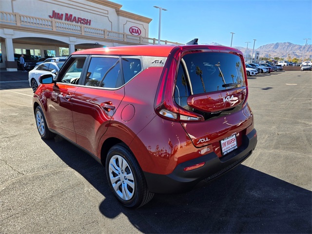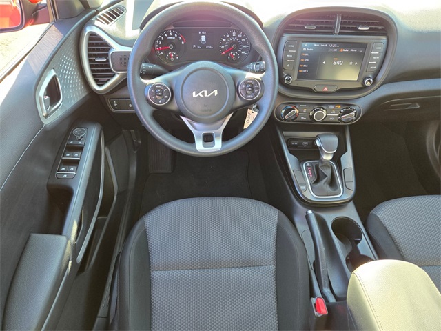 New Price!CARFAX One-Owner.Priced below KBB Fair Purchase Price!Odometer is 21435 miles below market average!29/35 City/Highway MPGMars Orange 2022 Kia Soul LX FWD CVT 2.0L I4 DOHCIf you don't drive here, you can't save here!Price may not include recon fee. 16" x 6.5" Steel Wheels, 4-Wheel Disc Brakes, 6 Speakers, ABS brakes, Air Conditioning, AM/FM radio, Apple CarPlay & Android Auto, Brake assist, Bumpers: body-color, Carpeted Floor Mats, Delay-off headlights, Driver door bin, Driver vanity mirror, Dual front impact airbags, Dual front side impact airbags, Electronic Stability Control, Exterior Parking Camera Rear, Front anti-roll bar, Front Bucket Seats, Front Center Armrest, Front reading lights, Front wheel independent suspension, Fully automatic headlights, Illuminated entry, Low tire pressure warning, Occupant sensing airbag, Outside temperature display, Overhead airbag, Overhead console, Panic alarm, Passenger door bin, Passenger vanity mirror, Power door mirrors, Power steering, Power windows, Radio: AM/FM/MP3 Audio System, Rear window defroster, Rear window wiper, Remote keyless entry, Speed control, Speed-sensing steering, Split folding rear seat, Steering wheel mounted audio controls, Tachometer, Telescoping steering wheel, Tilt steering wheel, Traction control, Trip computer, Variably intermittent wipers, and Woven & Tricot Cloth Seat Trim.