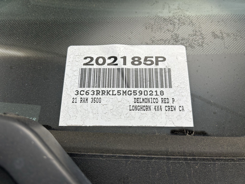 Priced below KBB Fair Purchase Price!FACTORY WARRANTY, BELOW AVERAGE ODOMETER, FRESH OIL CHANGE, NEW FILTERS, NEW WIPERS, 3500 Laramie Longhorn, 4D Crew Cab, 6.7L I6, Aisin 6-Speed Automatic, 4WD, 1-Year SiriusXM Guardian Trial, 12" Touchscreen Display, 17 Speaker harman kardon Premium Sound, 4G LTE Wi-Fi Hot Spot, 5th Wheel/Gooseneck Towing Prep Group, 6000# Front Axle w/Hub Ext, Adaptive Cruise Control w/Stop, Adaptive Steering System, Apple CarPlay, Blind Spot & Cross Path Detection, Body Color Bumper Group, Box & Rear Fender Clearance Lamps, Chrome Flat Cab-Length Side Steps, Clearance Lamps, Cold Weather Group, Digital Rearview Mirror, Disassociated Touchscreen Display, Dual Rear Wheels, Engine Block Heater, Front fog lights, Full Speed Forward Collision Warning Plus, Google Android Auto, GPS Antenna Input, GPS Navigation, HD Radio, Heated front seats, Heated rear seats, Integrated Voice Command w/Bluetooth, Lane Keep Assist, Longhorn Level 1 Equipment Group, Low tire pressure warning, Memory seat, MOPAR Winter Front Grille Cover, Navigation System, Painted Front Bumper, Painted Rear Bumper, ParkView Rear Back-Up Camera, Power Deployable Running Boards, Power Sunroof, Protection Group, Quick Order Package 21K Longhorn, Radio: Uconnect 12.0 w/Navigation, Ramcharger Wireless Charging Pad, Rear Wheelhouse Liners, Safety Group, Selectable Tire Fill Alert, SiriusXM Satellite Radio, SiriusXM Traffic Plus, SiriusXM Travel Link, SiriusXM w/360L, Surround View Camera System, Tire Pressure Monitoring Delete, Towing Technology Group, Trailer Reverse Guidance, Ventilated front seats, Wheels: 17" x 6.0" Premium Aluminum.For help with any Vehicle needs please call us directly at 951-621-1288.Clean CARFAX.CARFAX One-Owner.Awards: * JD Power Initial Quality Study (IQS)