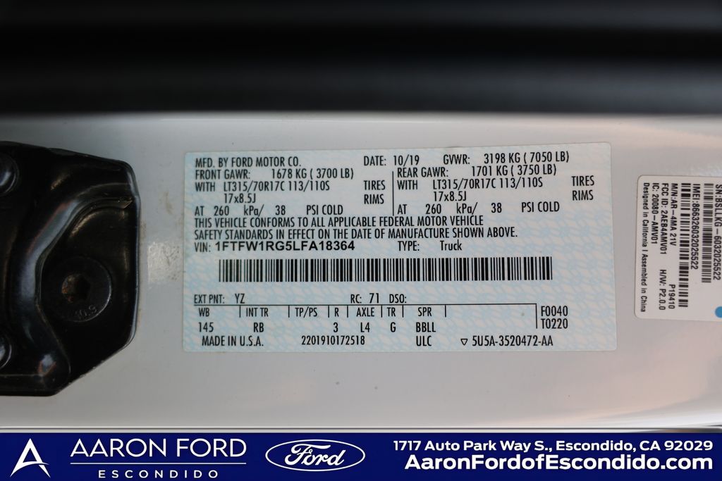 Oxford White 2020 Ford F-150 Raptor 4WD 10-Speed Automatic 3.5L V6 EcoBoost 4WD, 10-Way Power Driver & Passenger Seats, 360 Degree Camera, 4.10 Front Axle w/Torsen Differential, 8" Productivity Screen, Adaptive Cruise Control w/Stop-and-Go, Advanced Security Pack, Air Conditioning, Ambient Lighting - Ice Blue Color Only, BLIS Blind Spot Information System, Dual-Zone Electronic Automatic Temperature Control, Electronic Locking w/4.10 Axle Ratio, Equipment Group 802A Luxury, Exterior Parking Camera Rear, Front Bucket Seats, Fully automatic headlights, GVWR: 7,050 lbs Payload Package, Heated & Ventilated Leather 40/Console/40 Front Seats, Heated Steering Wheel, Heated Windshield Wiper Park, Inflatable Rear Safety Belts, Integrated Trailer Brake Controller, Intelligent Access w/Push-Button Start, Lane Keeping System, LED Box Lighting, LED Sideview Mirror Spotlights, Memory System (Seat, Pedal, Exterior Mirror), Power Glass Sideview Mirr w/Body-Color Skull Caps, Power Tilt/Telescoping Steering Column w/Memory, Power-Adjustable Pedals, Power-Sliding Rear Window, Pro Trailer Backup Assist, Radio: B&O Sound System by Bang & Olufsen, Raptor Carbon Fiber Package, Rear Parking Sensors, Remote Start System w/Remote Tailgate Release, SYNC 3, Tailgate Applique FORD, Tough Bed Spray-In Bedliner, Twin Panel Moonroof, Unique High Gloss Black Carbon Fiber Shift Knob, Universal Garage Door Opener, Voice-Activated Touchscreen Navigation.Odometer is 17119 miles below market average!Awards: * JD Power Vehicle Dependability Study