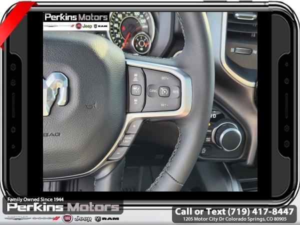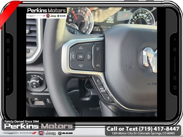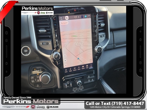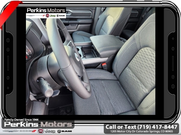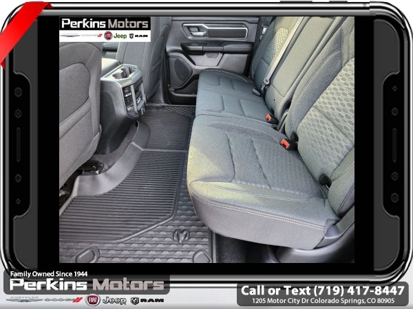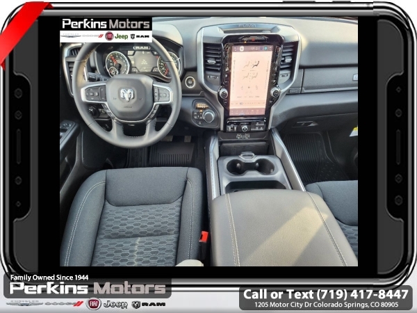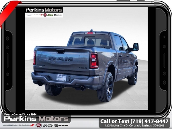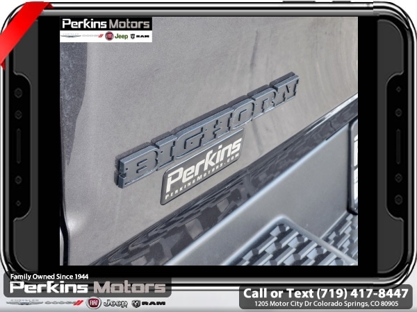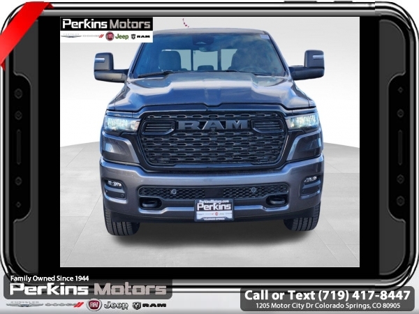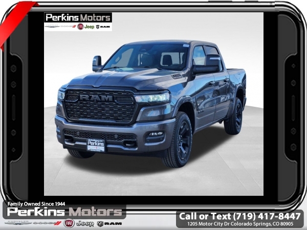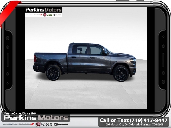 Factory MSRP: $66,025 $13,840 off MSRP! Granite Crystal Metallic Clearcoat 2025 Ram 1500 Big Horn/Lone Star 4WD 8-Speed Automatic 3.0L I6<br><br>Check us out at www.perkinsmotors.com to see our specials! Since opening our doors in 1944, we’ve been proud to serve Colorado Springs, CO, and the surrounding areas of Pueblo, Castle Rock and Denver, CO. Throughout this time of being family owned for 80 years, we’ve maintained a firm commitment to our customers: to offer a wide selection of New Chrysler, Dodge, Fiat, Jeep, and Ram vehicles and quality pre-owned vehicles, and provide a quick, no-hassle car-buying process that ensures everyone drives off the lot satisfied with their purchase.<br><br>Big Horn Level 2 Equipment Group (115V Auxiliary Power Outlet, 115V Auxiliary Rear Power Outlet, 12 Touchscreen Display, 2nd Row In Floor Storage Bins, 400W Inverter, 4G LTE Wi-Fi Hot Spot, 9 Amplified Speakers w/Subwoofer, Air Conditioning ATC w/Dual Zone Control, Apple CarPlay, Auto Power-Folding Mirrors, Auto-Dimming Exterior Driver Mirror, Auto-Dimming Rear-View Mirror, Black Exterior Mirrors, Black Premium Power Mirrors, Cluster 7.0 TFT Color Display, Configurable Drive Mode, Connected Travel & Traffic Services, Connectivity - US/Canada, Convex Wide-Angle Exterior Mirror Insert, Exterior Mirrors Courtesy Lamps, Exterior Mirrors w/Heating Element, Exterior Mirrors w/Supplemental Signals, Glove Box Lamp, Google Android Auto, GPS Antenna Input, GPS Navigation, HD Radio, Heated Front Seats, Heated Steering Wheel, Integrated Voice Command w/Bluetooth, Leather Wrapped Steering Wheel, LED Dome Lamp w/On/Off Switch, LED Footwell Lighting, Media Hub w/2 Charge Only USBs, Overhead LED Lamps, Power 2-Way Driver Lumbar Adjust, Power Adjust 8-Way Driver Seat, Power Adjustable Pedals, Premium Overhead Console, Radio: Uconnect 5 Nav w/12.0 Display, Rear Power Sliding Window, Rear Window Defroster, Remote Tailgate Release, Security Alarm, SiriusXM w/360L, Sun Visors w/Illuminated Vanity Mirrors, Universal Garage Door Opener, and USB Host Flip), Night Edition (3 Rear Seat Head Restraints, 4 Way Front Headrests, Accent Color Door Handles, Accent Color Premium Power Mirrors, Anti-Spin Differential Rear Axle, Black Exterior Truck Badging, Black Headlamp Bezels, Black Interior Accents, Black Painted Exterior Mirrors Caps, Black Tail Lamp Bezels, Body Color Front Bumper, Body Color Rear Bumper w/Step Pads, Bucket Seats, Deluxe Cloth Bucket Seats, Front Seat Back Map Pockets, Full Length Floor Console, Grille Black Surround Black Mesh, Manual Adjust 4-Way Front Passenger Seat, RAM Grille Badge - Black, Rear 60/40 Folding Seat, Rear Center Armrest, and Wheels: 20 x 9.0 Aluminum Painted Clad), Protection Group (Tow Hooks), Quick Order Package 21Z Big Horn, Trailer Tow Group (Accent Color Tailgate Handle, Black Trailer Tow Power Mirrors, Manual Folding Exterior Mirrors, Manual Telescoping Mirrors, Mirror Clearance/Running Lights, Power-Adjustable Convex Aux Mirrors, Trailer Brake Control, Trailer Light Check, Trailer Reverse Steering Control, Trailer Tire Pressure Monitoring System, and Trailer Tow Mirrors), 3.21 Rear Axle Ratio, 3.92 Rear Axle Ratio, 33 Gallon Fuel Tank, 4-Wheel Disc Brakes, 6 Speakers, ABS brakes, Air Conditioning, Alloy wheels, AM/FM radio, Apple CarPlay/Android Auto, Auto High-beam Headlights, Brake assist, Bumpers: chrome, Cloth Bench Seat, Compass, Cruise Control, Delay-off headlights, Dome Dual LED Reading Lamp, Driver door bin, Dual front impact airbags, Dual front Sale price includes all manufacture's incentives and dealer discounts. Sale price not available on lease or compatible with special APR. $1000 - 2025 National Truck Month Bonus Cash . Exp. 03/03/2025 $1000 - 2025 West BC SFS Bonus Cash . Exp. 03/03/2025 $1000 - 2025 West BC SFS Retail Bonus Cash . Exp. 03/03/2025 $1500 - 2025 National Bonus Cash . Exp. 03/03/2025 $4000 - 2025 National Retail Consumer Cash. Exp. 03/03/2025 Price includes $1,660 in dealer added a