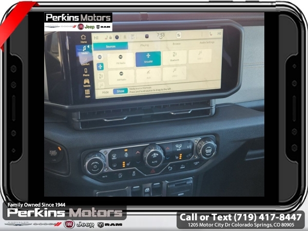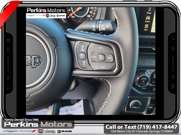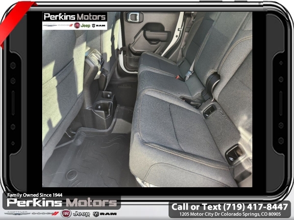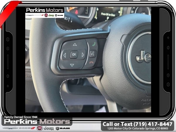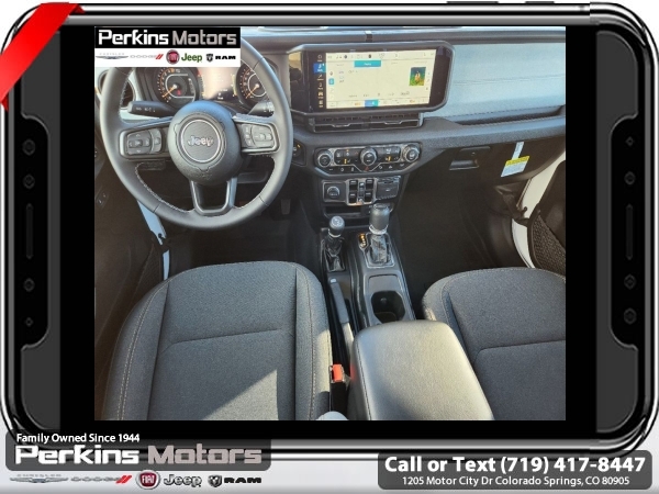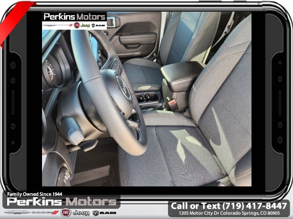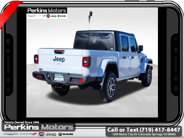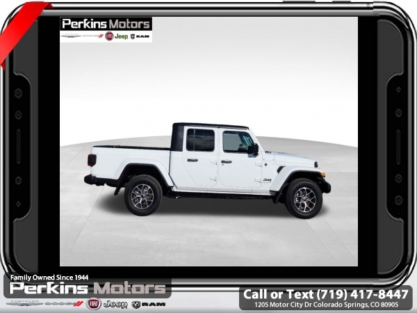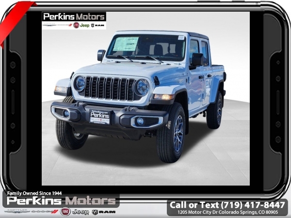 Factory MSRP: $53,275 $6,292 off MSRP! Bright White Clearcoat 2025 Jeep Gladiator Sport 4WD 8-Speed Automatic 3.6L V6 24V VVT<br><br>Check us out at www.perkinsmotors.com to see our specials! Since opening our doors in 1944, we’ve been proud to serve Colorado Springs, CO, and the surrounding areas of Pueblo, Castle Rock and Denver, CO. Throughout this time of being family owned for 80 years, we’ve maintained a firm commitment to our customers: to offer a wide selection of New Chrysler, Dodge, Fiat, Jeep, and Ram vehicles and quality pre-owned vehicles, and provide a quick, no-hassle car-buying process that ensures everyone drives off the lot satisfied with their purchase.<br><br>Convenience Group (Corning Gorilla Glass, Daytime Running Lamp System, Emergency/Assistance Call, Front Door Locks 2-Door Passive Entry, Heated Front Seats, Heated Steering Wheel, Remote Start System, and Universal Garage Door Opener), MOPAR Splash Guards - Vehicle Set (MOPAR Front Splash Guards and MOPAR Splash Guards), Quick Order Package 24S Sport S (Advanced Brake Assist, Automatic Headlamps, Deep Tint Sunscreen Windows, Enhanced Adaptive Cruise Control, Full Speed Forward Collision Warning Plus, Normal Duty Plus Suspension, Power Heated Mirrors, Premium Wrapped Steering Wheel, Security Alarm, Sun Visors w/Illuminated Vanity Mirrors, and Wheels: 17 x 7.5 Gray), Safety Group (Auto High Beam Headlamp Control, Blind Spot & Cross Path Detection, LED Taillamps, and ParkSense Rear Park Assist System), Trailer Tow & Aux Switch Group (Auxiliary Switches, Class IV Receiver Hitch, Heavy-Duty Engine Cooling, and Trailer Hitch Zoom), 110 MPH Vehicle Max Speed Calibration, 12.3 Touchscreen Display, 3.73 Rear Axle Ratio, 4-Wheel Disc Brakes, 4G LTE Wi-Fi Hot Spot, 8 Speakers, ABS brakes, Air Conditioning, Alexa Built-In, AM/FM radio: SiriusXM, Apple CarPlay, Apple CarPlay/Android Auto, Black 3-Piece Hard Top, Brake assist, Cloth Low-Back Bucket Seats, Compass, Connectivity - US/Canada, Cruise Control, Delay-off headlights, Driver door bin, Driver vanity mirror, Dual front impact airbags, Dual front side impact airbags, Electronic Stability Control, Freedom Panel Storage Bag, Front anti-roll bar, Front Bucket Seats, Front Center Armrest w/Storage, Front fog lights, Front License Plate Bracket, Front reading lights, Google Android Auto, Heated door mirrors, Illuminated entry, Integrated roll-over protection, Jeep Trail Rated Kit, Low tire pressure warning, Manufacturer's Statement of Origin, MOPAR All-Weather Slush Mats, MOPAR Hardtop Headliner, MOPAR Spray In Bedliner, Normal Duty Suspension, Occupant sensing airbag, Outside temperature display, Overhead airbag, Panic alarm, ParkView Rear Back-Up Camera, Passenger door bin, Passenger vanity mirror, Power door mirrors, Power steering, Power windows, Radio data system, Radio: Uconnect 5 w/12.3 Display, Rear anti-roll bar, Rear reading lights, Rear Sliding Window, Rear Window Defroster, Remote keyless entry, Split folding rear seat, Steering wheel mounted audio controls, Tachometer, Telescoping steering wheel, Tilt steering wheel, Traction control, Trip computer, USB Host Flip, Variably intermittent wipers, Voltmeter, Wheels: 17 x 7.5 Black Steel Styled, and Wheels: 17 x 7.5 Machined w/Black Pockets.