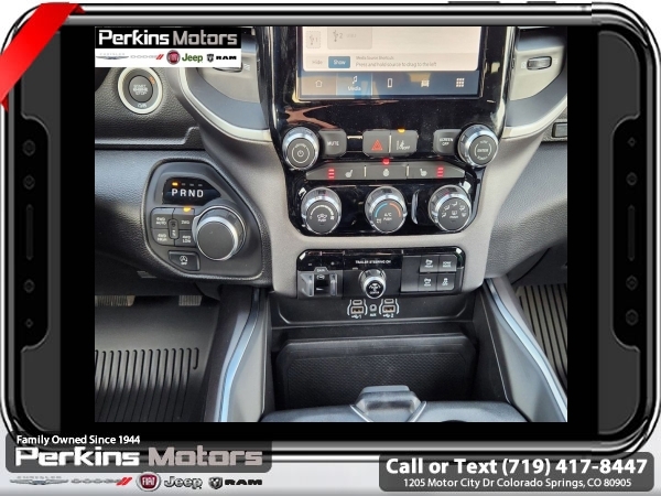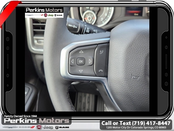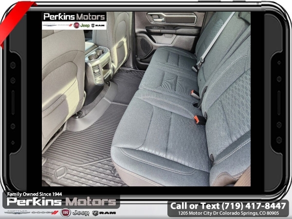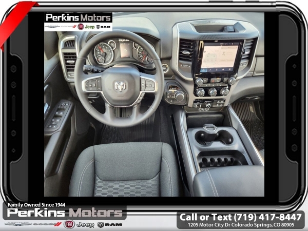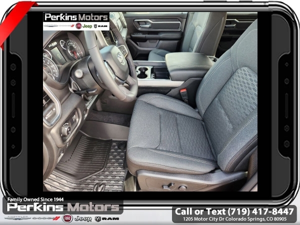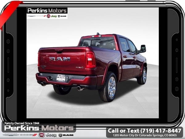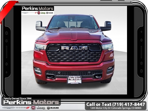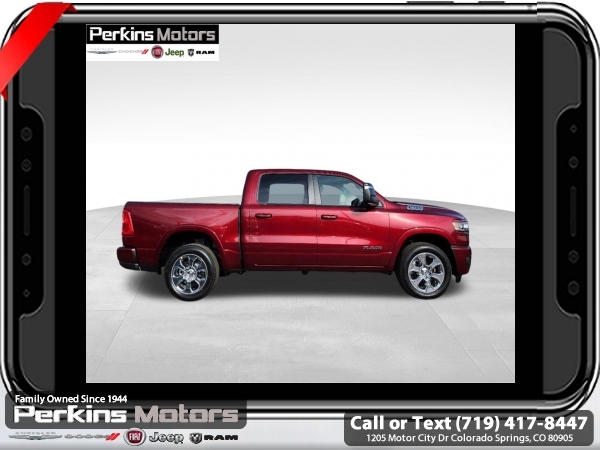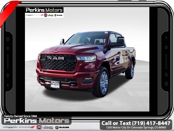 Factory MSRP: $64,950 $10,022 off MSRP! Delmonico Red Pearlcoat 2025 Ram 1500 Big Horn/Lone Star 4WD 8-Speed Automatic 3.0L I6<br><br>Check us out at www.perkinsmotors.com to see our specials! Since opening our doors in 1944, we’ve been proud to serve Colorado Springs, CO, and the surrounding areas of Pueblo, Castle Rock and Denver, CO. Throughout this time of being family owned for 80 years, we’ve maintained a firm commitment to our customers: to offer a wide selection of New Chrysler, Dodge, Fiat, Jeep, and Ram vehicles and quality pre-owned vehicles, and provide a quick, no-hassle car-buying process that ensures everyone drives off the lot satisfied with their purchase.<br><br>Big Horn Level 1 Equipment Group (115V Auxiliary Power Outlet, 2nd Row In Floor Storage Bins, 400W Inverter, Auto Power-Folding Mirrors, Auto-Dimming Exterior Driver Mirror, Auto-Dimming Rear-View Mirror, Black Exterior Mirrors, Black Premium Power Mirrors, Convex Wide-Angle Exterior Mirror Insert, Exterior Mirrors Courtesy Lamps, Exterior Mirrors w/Heating Element, Exterior Mirrors w/Supplemental Signals, Glove Box Lamp, Heated Front Seats, Heated Steering Wheel, Leather Wrapped Steering Wheel, Power 2-Way Driver Lumbar Adjust, Power Adjust 8-Way Driver Seat, Power Adjustable Pedals, Rear Power Sliding Window, Rear Window Defroster, Steering Wheel Mounted Audio Controls, Sun Visors w/Illuminated Vanity Mirrors, and Universal Garage Door Opener), Protection Group (Tow Hooks), Quick Order Package 21Z Big Horn, Sport Appearance Package (3 Rear Seat Head Restraints, 4 Way Front Headrests, Black Interior Accents, Body Color Door Handles, Body Color Front Bumper, Body Color Rear Bumper w/Step Pads, Body Color Tailgate Handle, Bucket Seats, Deluxe Cloth Bucket Seats, Front Seat Back Map Pockets, Full Length Floor Console, Grille Surround 1 Body Color Texture 1 Black, Manual Adjust 4-Way Front Passenger Seat, RAM Grille Badge - Chrome, Rear 60/40 Folding Seat, and Rear Center Armrest), Trailer Tow Group (Accent Color Tailgate Handle, Black Trailer Tow Power Mirrors, Manual Folding Exterior Mirrors, Manual Telescoping Mirrors, Mirror Clearance/Running Lights, Power-Adjustable Convex Aux Mirrors, Trailer Brake Control, Trailer Reverse Steering Control, Trailer Tire Pressure Monitoring System, and Trailer Tow Mirrors), 3.21 Rear Axle Ratio, 3.92 Rear Axle Ratio, 33 Gallon Fuel Tank, 4-Wheel Disc Brakes, 4G LTE Wi-Fi Hot Spot, 6 Speakers, 9 Amplified Speakers w/Subwoofer, ABS brakes, Air Conditioning, Alloy wheels, AM/FM radio, Anti-Spin Differential Rear Axle, Apple CarPlay/Android Auto, Auto High-beam Headlights, Brake assist, Bumpers: chrome, Cloth Bench Seat, Compass, Connectivity - US/Canada, Cruise Control, Delay-off headlights, Driver door bin, Dual front impact airbags, Dual front side impact airbags, Electronic Stability Control, Front anti-roll bar, Front Center Armrest w/Storage, Front fog lights, Front License Plate Bracket, Front reading lights, Front wheel independent suspension, Fully automatic headlights, GPS Antenna Input, Heated door mirrors, Illuminated entry, Integrated Voice Command w/Bluetooth, Low tire pressure warning, Manufacturer's Statement of Origin, MOPAR Front & Rear Rubber Floor Mats, Occupant sensing airbag, Outside temperature display, Overhead airbag, Overhead console, Panic alarm, ParkView Rear Back-Up Camera, Passenger door bin, Passenger vanity mirror, Power door mirrors, Power steering, Power windows, Radio data system, Radio: Uconnect 5 W w/8.4 Display, Rear anti-roll bar, Rear seat center armrest, Rear step bumper, Remote keyless entry, Split fo Sale price includes all manufacture's incentives and dealer discounts. Sale price not available on lease or compatible with special APR. $1000 - 2025 West BC SFS Bonus Cash . Exp. 06/02/2025 $1000 - 2025 West BC SFS Retail Bonus Cash . Exp. 06/02/2025 $3000 - 2025 National Retail Consumer Cash. Exp. 06/02/2025 $5022 - 2025 National Minimum Employee Pricing Discount. Exp. 0