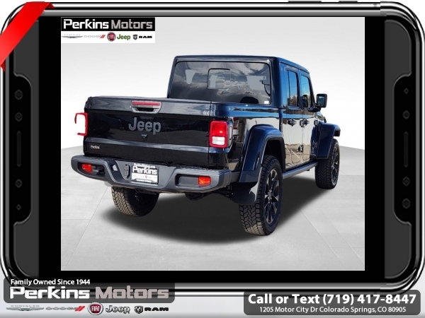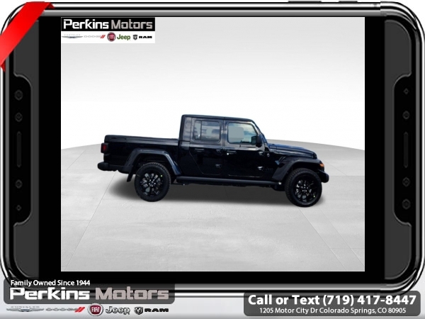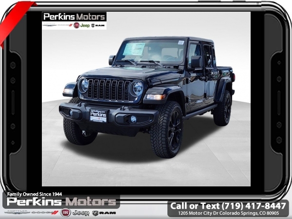Factory MSRP: $44,485 $4,750 off MSRP! Priced below KBB Fair Purchase Price! Black Clearcoat 2025 Jeep Gladiator Nighthawk 4WD 8-Speed Automatic 3.6L V6 24V VVT<br><br>Check us out at www.perkinsmotors.com to see our specials! Since opening our doors in 1944, we’ve been proud to serve Colorado Springs, CO, and the surrounding areas of Pueblo, Castle Rock and Denver, CO. Throughout this time of being family owned for 80 years, we’ve maintained a firm commitment to our customers: to offer a wide selection of New Chrysler, Dodge, Fiat, Jeep, and Ram vehicles and quality pre-owned vehicles, and provide a quick, no-hassle car-buying process that ensures everyone drives off the lot satisfied with their purchase.<br><br>Quick Order Package 24X Night Hawk (DISC) (110 MPH Vehicle Max Speed Calibration, Anti-Spin Differential Rear Axle, Body Color Fender Flares (2-Piece), Dana M210 Wide Front Axle, Dana M220 Wide Rear Axle, Daytime Running Lamp System, Deep Tint Sunscreen Windows, Mold In Color Bumper w/Gloss Black, Power Heated Mirrors, Protection Sill Rails, Sport Rear Shock Absorbers, Sport Suspension (DISC), and Wheels: 20 x 8 Painted Black Aluminum (DISC)), 12.3 Touchscreen Display, 3.73 Rear Axle Ratio, 4-Wheel Disc Brakes, 4G LTE Wi-Fi Hot Spot, 8 Speakers, ABS brakes, Air Conditioning, Alexa Built-In, AM/FM radio: SiriusXM, Apple CarPlay, Apple CarPlay/Android Auto, Body Color 3-Piece Hard Top, Brake assist, Cloth Low-Back Bucket Seats, Compass, Connectivity - US/Canada, Cruise Control, Delay-off headlights, Driver door bin, Driver vanity mirror, Dual front impact airbags, Dual front side impact airbags, Electronic Stability Control, Freedom Panel Storage Bag, Front anti-roll bar, Front Bucket Seats, Front Center Armrest w/Storage, Front fog lights, Front License Plate Bracket, Front reading lights, Google Android Auto, Heated door mirrors, Integrated roll-over protection, Jeep Trail Rated Kit, Low tire pressure warning, Manufacturer's Statement of Origin, MOPAR Doors Off Mirror Kit, MOPAR Rear Splash Guards, MOPAR Spray In Bedliner, Normal Duty Suspension, Occupant sensing airbag, Outside temperature display, Overhead airbag, ParkView Rear Back-Up Camera, Passenger door bin, Passenger vanity mirror, Power door mirrors, Power steering, Power windows, Radio data system, Radio: Uconnect 5 w/12.3 Display, Rear anti-roll bar, Rear reading lights, Rear Sliding Window, Rear Window Defroster, Split folding rear seat, Steering wheel mounted audio controls, Tachometer, Telescoping steering wheel, Tilt steering wheel, Traction control, Trip computer, USB Host Flip, Variably intermittent wipers, Voltmeter, and Wheels: 17 x 7.5 Black Steel Styled. Sale price includes all manufacture's incentives and dealer discounts. Sale price not available on lease or compatible with special APR. $1500 - 2025 National Jeep Celebration Event Bonus Cash . Exp. 04/30/2025