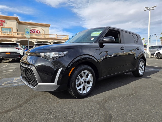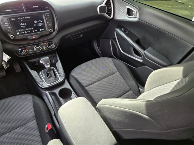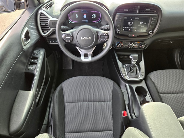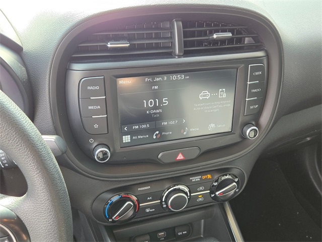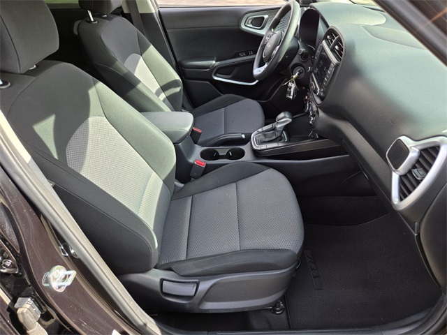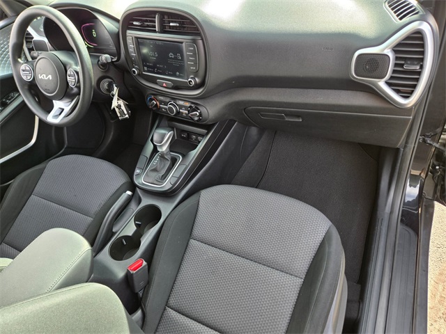 New Price!Recent Arrival!CARFAX One-Owner.29/35 City/Highway MPGFusion Black 2023 Kia Soul LX FWD CVT 2.0L I4 DOHCIf you don't drive here, you can't save here!Price may not include recon fee. LX Technology Package (16" Alloy Wheels, Blind-Spot Collision-Avoidance Assist, Lane Change Assist, and Rear Cross-Traffic Collision Avoidance Assist), 16" Steel Wheels, 4-Wheel Disc Brakes, 6 Speakers, ABS brakes, Air Conditioning, AM/FM radio, Apple CarPlay & Android Auto, Auto High-beam Headlights, Brake assist, Bumpers: body-color, Carpeted Floor Mats, Compass, Delay-off headlights, Driver door bin, Driver vanity mirror, Dual front impact airbags, Dual front side impact airbags, Electronic Stability Control, Exterior Parking Camera Rear, Front anti-roll bar, Front Bucket Seats, Front Center Armrest, Front reading lights, Front wheel independent suspension, Fully automatic headlights, Illuminated entry, Low tire pressure warning, Occupant sensing airbag, Outside temperature display, Overhead airbag, Overhead console, Panic alarm, Passenger door bin, Passenger vanity mirror, Power door mirrors, Power steering, Power windows, Radio data system, Radio: AM/FM/MP3/HD Audio System, Rear window defroster, Rear window wiper, Remote keyless entry, Speed control, Speed-sensing steering, Split folding rear seat, Steering wheel mounted audio controls, Tachometer, Telescoping steering wheel, Tilt steering wheel, Traction control, Trip computer, Variably intermittent wipers, and Woven & Tricot Cloth Seat Trim.