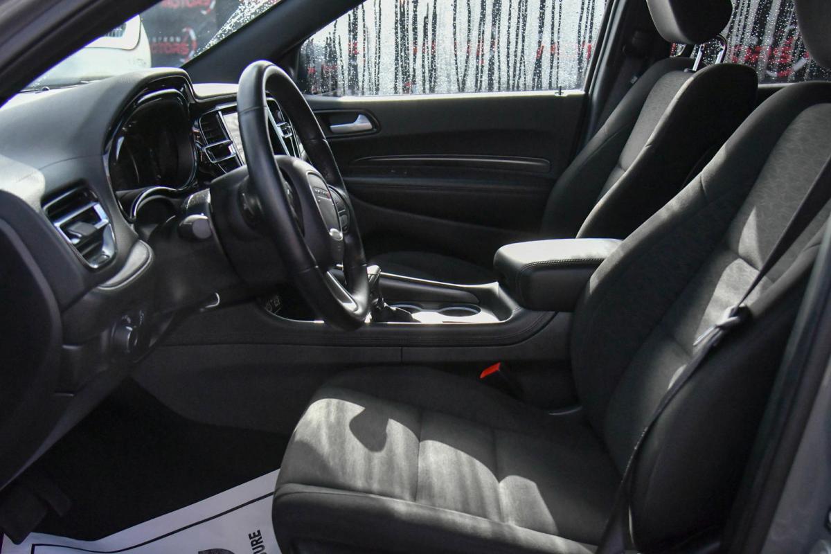 Delivers 26 Highway MPG and 19 City MPG! This Dodge Durango boasts a Regular Unleaded V-6 3.6 L/220 engine powering this Automatic transmission. WHEELS: 18 X 8.0 PAINTED ALUMINUM (STD), TRANSMISSION: 8-SPEED AUTOMATIC (850RE) (STD), TIRES: 265/60R18 BSW AS LRR (STD).*This Dodge Durango Features the Following Options *QUICK ORDER PACKAGE 2BA SXT -inc: Engine: 3.6L V6 24V VVT UPG I w/ESS, Transmission: 8-Speed Automatic (850RE), Heated Steering Wheel, Heated Front Seats , FRONT LICENSE PLATE BRACKET, ENGINE: 3.6L V6 24V VVT UPG I W/ESS (STD), DESTROYER GRAY CLEARCOAT, BLACK, CLOTH BUCKET SEATS W/SHIFT INSERT, Wheels: 18 x 8.0 Painted Aluminum, Valet Function, USB Host Flip, Urethane Gear Shifter Material, Trip Computer.