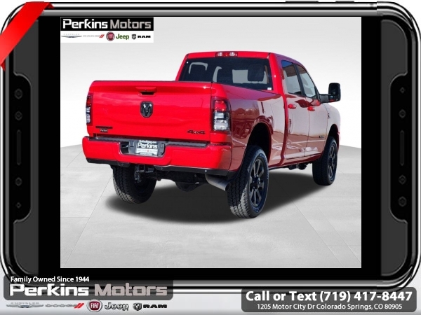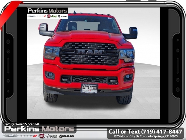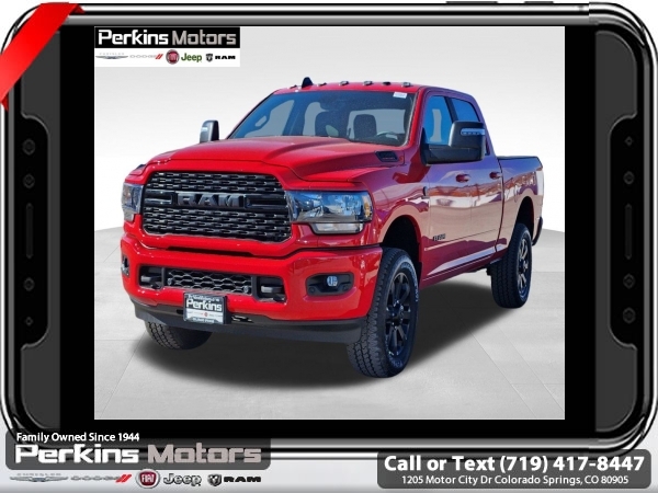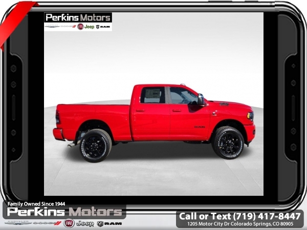 Factory MSRP: $75,740 $15,574 off MSRP! Priced below KBB Fair Purchase Price! Flame Red Clearcoat 2024 Ram 2500 Big Horn 4WD 6-Speed Automatic Cummins 6.7L I6 Turbodiesel<br><br>Check us out at www.perkinsmotors.com to see our specials! Since opening our doors in 1944, we’ve been proud to serve Colorado Springs, CO, and the surrounding areas of Pueblo, Castle Rock and Denver, CO. Throughout this time of being family owned for 80 years, we’ve maintained a firm commitment to our customers: to offer a wide selection of New Chrysler, Dodge, Fiat, Jeep, and Ram vehicles and quality pre-owned vehicles, and provide a quick, no-hassle car-buying process that ensures everyone drives off the lot satisfied with their purchase.<br><br>Heated Seats & Wheel Group (Heated Front Seats, Heated Steering Wheel, Leather Wrapped Steering Wheel, and Steering Wheel Mounted Audio Controls), Level 1 Equipment Group (2 Way Rear Headrest Seat, 2nd Row In Floor Storage Bins, 4 Way Front Headrests, 40/20/40 Split Bench Seat, 4G LTE Wi-Fi Hot Spot, 8.4 Touchscreen Display, Apple CarPlay, Auto Power-Folding Mirrors, Big Horn IP Badge, Black Exterior Mirrors, Bluetooth Handsfree Phone & Audio, Center Hub, Connectivity - US/Canada, Dual Glove Boxes, Exterior Mirrors Courtesy Lamps, Exterior Mirrors w/Heating Element, Exterior Mirrors w/Supplemental Signals, Foam Bottle Insert (Door Trim Panel), Footwell Courtesy Lamp, For Details, Visit DriveUconnect.com, For More Info, Call 800-643-2112, Forward & Reverse Utility Lights, Front Armrest w/Cupholders, Front Center Seat Cushion Storage, Front Fog Lamps, Front Seat Back Map Pockets, Global Telematics Box Module (TBM), Glove Box Lamp, Google Android Auto, GPS Antenna Input, Integrated Center Stack Radio, Integrated Voice Command w/Bluetooth, Locking Lower Glove Box, Manual Adjust 4-Way Front Passenger Seat, Mirror Running Lights, Power 2-Way Driver Lumbar Adjust, Power Adjust 8-Way Driver Seat, Power Adjust Mirrors, Power Adjustable Convex Aux Mirrors, Power Heated Fold Telescope Mirrors, Power Telescoping Mirrors, Rear 60/40 Folding Seat, Rear Dome w/On/Off Switch Lamp, Remote USB Port - Charge Only, Selectable Tire Fill Alert, SiriusXM Radio Service, SiriusXM Satellite Radio, Storage Tray, and Wheels: 18 x 8.0 Polished Aluminum), Night Edition (Black Exterior Truck Badging, Black Headlamp Bezels, Black Interior Accents, Black Ram Head Tailgate Badge, Black Tail Lamp Bezels, Black Wheel Center Hub, Body Color Door Handles, Body Color Grille Surround, Gloss Black Nostrils/MIC Black Grille, Painted Front Bumper, Painted Rear Bumper, ParkSense Front/Rear Park Assist System, and Wheels: 20 x 8.0 Black Painted Aluminum), Protection Group (Tow Hooks), Quick Order Package 2HZ Big Horn, 220 Amp Alternator, 3.73 Axle Ratio, 4-Wheel Disc Brakes, 5th Wheel/Gooseneck Towing Prep Group, 6 Speakers, 9 Alpine Speakers w/Subwoofer, ABS brakes, Active Noise Control System, Air Conditioning, Air Conditioning ATC w/Dual Zone Control, Alexa Built-In, All R1 High Radios, All Radio Equipped Vehicles, Anti-Spin Differential Rear Axle, Brake assist, Bumpers: chrome, Center Stack Storage Drawer, Clearance Lamps, Cloth 40/20/40 Bench Seat, Compass, Connected Travel & Traffic Services, Cruise Control, Dash Pass Thru Wire Circuits, Delay-off headlights, Disassociated Touchscreen Display, Driver door bin, Dual front impact airbags, Dual front side impact airbags, Electronic Stability Control, Electronically Controlled Throttle, Emergency communication system: SiriusXM Guardian, Engine Block Heater, Front anti-roll bar, Front Center Armrest w/Storage, Front License Plate Bracket, Front reading lights, Fully automatic headlights, GPS Navigation, HD Radio, Heated door mirrors, I/P Mounted Auxiliary Switches, Illuminated entry, Low tire pres Sale price includes all manufacture's incentives and dealer discounts. Sale price not available on lease or compatible with special APR. 10% Msrp - 2024 West BC Standalone 10% Below MSRP. Exp. 0