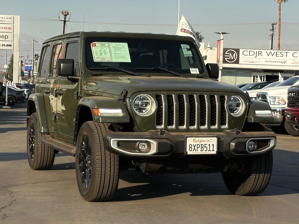 WE SPECIALIZE IN ALL CREDIT PROFILES! See what we can do for you! Call to find out (626) 899-9302.Certified. CARFAX One-Owner. Clean CARFAX.2.0L I4 DOHC, ABS brakes, Alloy wheels, Body Color 3-Piece Hard Top, Cold Weather Group, Compass, Electronic Stability Control, Freedom Panel Storage Bag, Front dual zone A/C, Heated door mirrors, Heated Front Seats, Heated Steering Wheel, Illuminated entry, Low tire pressure warning, Navigation System, ParkView Rear Back-Up Camera, Passenger door bin, Rear Window Defroster, Rear Window Wiper/Washer, Remote keyless entry, Remote Start System, Traction control.Sarge Green Clearcoat2021 Jeep Wrangler Unlimited Sahara 4xe 4WD 8-Speed Automatic 2.0L I4 DOHCFCA US LLC Certified Pre-Owned Details: * Transferable Warranty * 125 Point Inspection * Warranty Deductible: $100 * Roadside Assistance * Includes First Day Rental, Car Rental Allowance, and Trip Interruption Benefits. SiriusXM 3 month trial subscription * Powertrain Limited Warranty: 84 Month/100,000 Mile (whichever comes first) from original in-service date * Limited Warranty: 3 Month/3,000 Mile (whichever comes first) after new car warranty expires or from certified purchase date * Vehicle History**********All Pricing and Advertised Prices for any/all vehicles offered for sale does not include dealer installed accessories which can be purchased for an additional cost.********** The Factory Rebates may not be available on this vehicle if you elect to take advantage of a Special Alternative APR or Special Lease program. Some Factory Rebates are California Resident specific and may vary for residents of other states. NO sales to Dealers, Brokers or Exporters. For out of state purchase, customers must be present to purchase. If shipping is required, dealership must facilitate; no exceptions. Please contact us for special Multi-Vehicle or Fleet pricing. Prices are plus government fees and taxes, any finance charges, $85 documentary fee, $29 electronic registration fee, any emission testing charge and $1.75 per new tire state tire fee. *** We make every effort to provide accurate information, but please verify before purchasing. Leasing & financing available on approved credit. Trade-ins accepted. Subject to prior sale.
