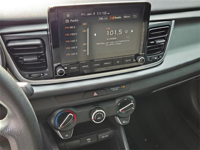 Recent Arrival!Odometer is 15673 miles below market average!33/41 City/Highway MPGSporty Blue 2022 Kia Rio S FWD CVT 1.6L 4-Cylinder Black Cloth.If you don't drive here, you can't save here!Price may not include recon fee. Black Cloth, 6 Speakers, ABS brakes, Air Conditioning, AM/FM radio, Brake assist, Bumpers: body-color, Cargo Net, Carpet Floor Mat, Driver door bin, Driver vanity mirror, Dual front impact airbags, Dual front side impact airbags, Electronic Stability Control, Front anti-roll bar, Front Bucket Seats, Front Center Armrest, Front reading lights, Front wheel independent suspension, Fully automatic headlights, Heated door mirrors, Illuminated entry, Low tire pressure warning, Occupant sensing airbag, Outside temperature display, Overhead airbag, Overhead console, Panic alarm, Passenger door bin, Passenger vanity mirror, Power door mirrors, Power steering, Power windows, Radio: AM/FM/MP3 Audio System, Rear Bumper Applique, Rear window defroster, Remote keyless entry, Speed control, Speed-sensing steering, Split folding rear seat, Steering wheel mounted audio controls, Tachometer, Tilt steering wheel, Traction control, Trip computer, Variably intermittent wipers, Wheels: 15" x 5.5J Steel w/Full Covers, and Woven Cloth Seat Trim.