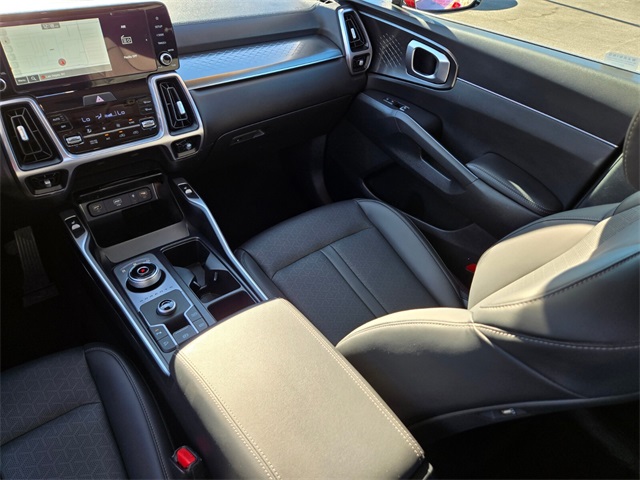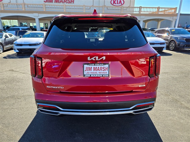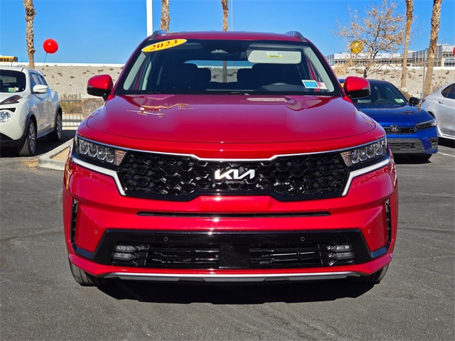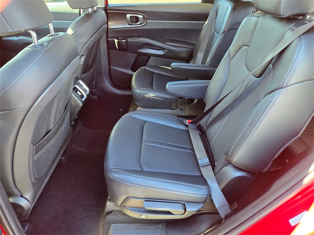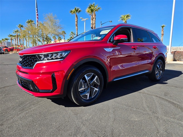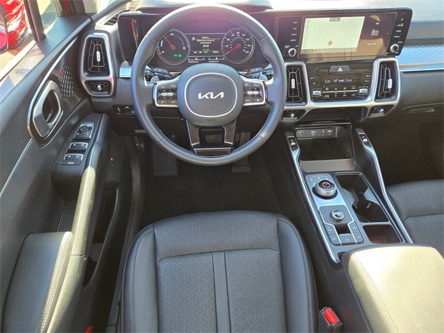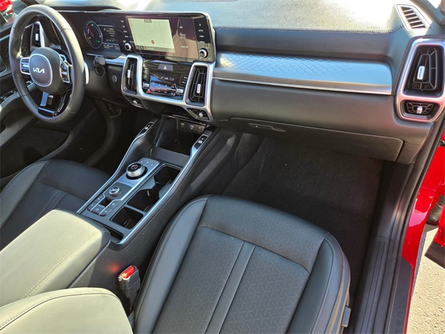 CARFAX One-Owner.Priced below KBB Fair Purchase Price!39/35 City/Highway MPGRunway Red 2023 Kia Sorento Hybrid EX FWD 6-Speed Automatic 1.6L I4 DGI Hybrid Turbocharged DOHC 16V LEV3-ULEV70 1.6L I4 DGI Hybrid Turbocharged DOHC 16V LEV3-ULEV70.If you don't drive here, you can't save here!Price may not include recon fee. 1.6L I4 DGI Hybrid Turbocharged DOHC 16V LEV3-ULEV70, 3rd row seats: split-bench, 4-Wheel Disc Brakes, 6 Speakers, ABS brakes, Air Conditioning, Alloy wheels, AM/FM radio: SiriusXM, Apple CarPlay & Android Auto, Auto High-beam Headlights, Automatic temperature control, Axle Ratio: 3.510, Brake assist, Bumpers: body-color, Cargo Cover, Carpet Floor Mats, Carpeted Cargo Mat w/Seatback Protection, Delay-off headlights, Driver door bin, Driver vanity mirror, Dual front impact airbags, Dual front side impact airbags, Electronic Stability Control, Emergency communication system, Exterior Parking Camera Rear, Four wheel independent suspension, Front anti-roll bar, Front Bucket Seats, Front Center Armrest, Front dual zone A/C, Front fog lights, Front reading lights, Fully automatic headlights, Heated door mirrors, Heated Front Bucket Seats, Heated front seats, Illuminated entry, Knee airbag, Leather steering wheel, Low tire pressure warning, Mudguards, Navigation System, Occupant sensing airbag, Outside temperature display, Overhead airbag, Overhead console, Panic alarm, Passenger door bin, Passenger vanity mirror, Power door mirrors, Power driver seat, Power Liftgate, Power passenger seat, Power steering, Power windows, Radio data system, Radio: AM/FM/HD Radio/SiriusXM Audio System, Rear air conditioning, Rear anti-roll bar, Rear reading lights, Rear window defroster, Rear window wiper, Remote keyless entry, Roof rack: rails only, Security system, Smart Key w/ Push Button and Remote Start, Speed control, Speed-sensing steering, Split folding rear seat, Spoiler, Steering wheel mounted audio controls, SynTex Artificial Leather Seat Trim, Tachometer, Telescoping steering wheel, Tilt steering wheel, Traction control, Trip computer, Turn signal indicator mirrors, Variably intermittent wipers, and Wheels: 7.0J x 17" Machine-Finished Aero Alloy.