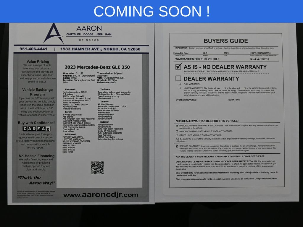 Priced below KBB Fair Purchase Price!FACTORY WARRANTY, FRESH OIL CHANGE, NEW FILTERS, NEW WIPERS, GLE 350, 2.0L I4 Turbocharged, 9-Speed Automatic, RWD, 115V Power Outlet, Alloy wheels, AMG® Bodystyling, AMG® Floor Mats, AMG® Line Exterior, AMG® Line Interior, Apple CarPlay®/Android Auto®, Burmester® Surround Sound, Compass, Exterior Parking Camera Rear, Front dual zone A/C, Knee airbag, Low tire pressure warning, Memory seat, Multifunction Sport Steering Wheel, Navigation system: MBUX, Night Package, Parking Assist Code, Power Liftgate, Power moonroof, Premium Package, Rear fog lights, Surround View System, Wheels: 21" AMG® Multispoke w/Black Accents.For help with any Vehicle needs please call us directly at 951-621-1288.Clean CARFAX.CARFAX One-Owner.