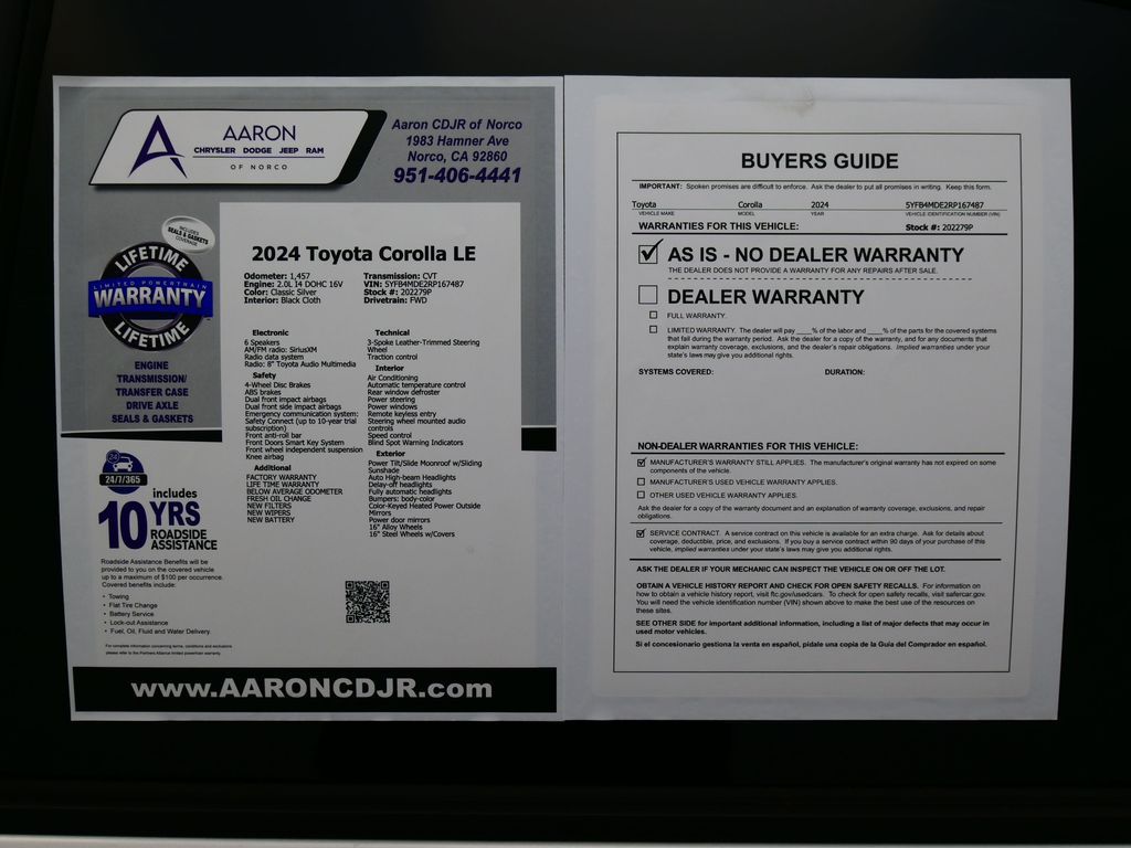 Priced below KBB Fair Purchase Price!FACTORY WARRANTY, LIFE TIME WARRANTY, BELOW AVERAGE ODOMETER, FRESH OIL CHANGE, NEW FILTERS, NEW WIPERS, Corolla LE, 4D Sedan, 2.0L I4 DOHC 16V, FWD, 16" Alloy Wheels, 3-Spoke Leather-Trimmed Steering Wheel, Automatic temperature control, Blind Spot Warning Indicators, Color-Keyed Heated Power Outside Mirrors, Emergency communication system: Safety Connect (up to 10-year trial subscription), Exterior Parking Camera Rear, Front Doors Smart Key System, Knee airbag, LE Premium Package, Low tire pressure warning, Power Tilt/Slide Moonroof w/Sliding Sunshade, Qi-Compatible Wireless Smartphone Charger, Radio: 8" Toyota Audio Multimedia.Clean CARFAX.CARFAX One-Owner.