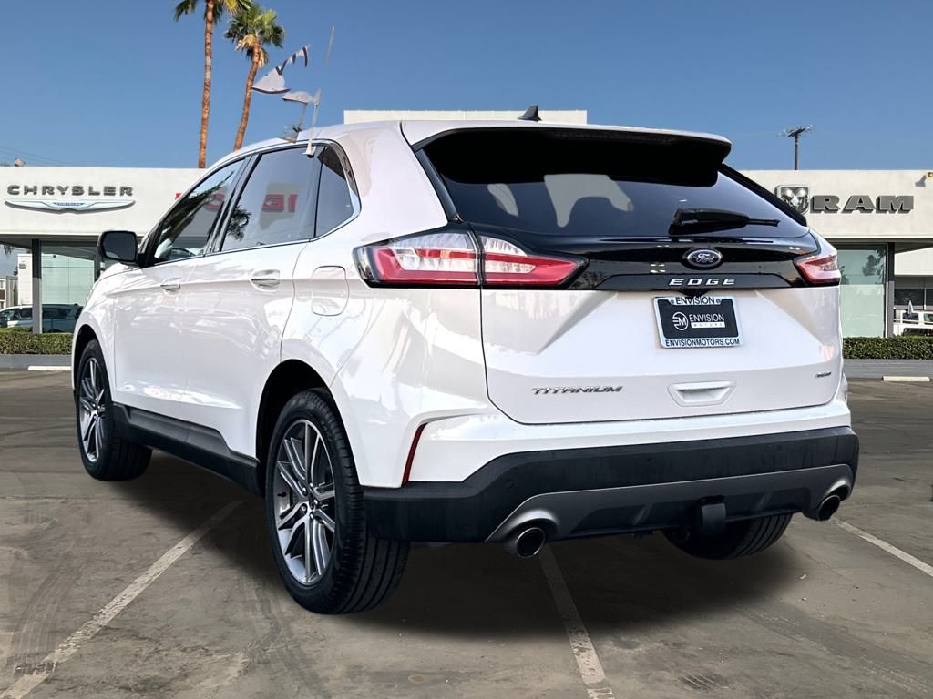 WE SPECIALIZE IN ALL CREDIT PROFILES! See what we can do for you! Call to find out (626) 899-9302.CARFAX One-Owner.Odometer is 4155 miles below market average! AWD, Class II Trailer Tow Package, Equipment Group 300A, Navigation System.Star White Metallic Tri-Coat2023 Ford Edge Titanium AWD 8-Speed Automatic EcoBoost 2.0L I4 GTDi DOHC Turbocharged VCT**********All Pricing and Advertised Prices for any/all vehicles offered for sale does not include dealer installed accessories which can be purchased for an additional cost.********** The Factory Rebates may not be available on this vehicle if you elect to take advantage of a Special Alternative APR or Special Lease program. Some Factory Rebates are California Resident specific and may vary for residents of other states. NO sales to Dealers, Brokers or Exporters. For out of state purchase, customers must be present to purchase. If shipping is required, dealership must facilitate; no exceptions. Please contact us for special Multi-Vehicle or Fleet pricing. Prices are plus government fees and taxes, any finance charges, $85 documentary fee, $29 electronic registration fee, any emission testing charge and $1.75 per new tire state tire fee. *** We make every effort to provide accurate information, but please verify before purchasing. Leasing & financing available on approved credit. Trade-ins accepted. Subject to prior sale.