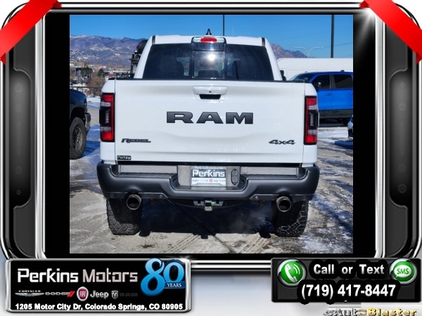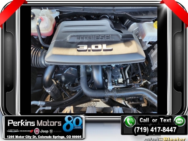 Bright White Clearcoat 4WD EcoDiesel 3.0L V6 8-Speed Automatic<br><br>115V Auxiliary Rear Power Outlet, 2-Door Passive Entry, Front Door Locks, 3.92 Rear Axle Ratio, 33 Gallon Fuel Tank, 4G LTE Wi-Fi Hot Spot, 8.4 Touchscreen Display, Air Conditioning ATC w/Dual Zone Control, Apple CarPlay, Auto-Dimming Exterior Driver Mirror, Black Front Bumper w/Black Plate, Black Premium Power Mirrors (GUL), Bluetooth Handsfree Phone & Audio, Body Color Door Handles, Comfort/Convenience Group, Connectivity - US/Canada, Driver Seat Memory, Exterior Mirrors Courtesy Lamps, Exterior Mirrors w/Memory, Exterior Mirrors w/Supplemental Signals, Foam Bottle Insert (Door Trim Panel), For More Info, Call 800-643-2112, Google Android Auto, GPS Navigation, Grille Surround 2 Black Texture 3 Black, Heated Front Seats, Heated Second Row Seats, Heated Steering Wheel, Integrated Center Stack Radio, Media Hub w/2 Charge Only USBs, Night Edition, ParkSense Front/Rear Park Assist w/Stop, Power 2-Way Passenger Lumbar Adjust, Power 8-Way Driver & Passenger Seats, Power Adjustable Pedals, Quick Order Package 28W Rebel, Radio: Uconnect 5 W w/8.4 Display, Rain Sensitive Windshield Wipers, RAM Grille Badge - Black, Rear Dome w/On/Off Switch Lamp, Rear Underseat Compartment Storage, Rear Window Defroster, Rebel Level B Equipment Group (DISC), Remote Start System, Remote Tailgate Release, Security Alarm, SiriusXM Radio Service, SiriusXM Satellite Radio, Sun Visors w/Illuminated Vanity Mirrors, Universal Garage Door Opener, USB Host Flip, Wheels: 18 x 8.0 Gloss Black, Wireless Charging Pad.<br><br><br>CARFAX One-Owner.<br><br>Check us out at www.perkinsmotors.com to see our specials! Since opening our doors in 1944, we’ve been proud to serve Colorado Springs, CO, and the surrounding areas of Pueblo, Castle Rock and Denver, CO. Throughout this time of being family owned for 80 years, we’ve maintained a firm commitment to our customers: to offer a wide selection of New Chrysler, Dodge, Fiat, Jeep, and Ram vehicles and quality pre-owned vehicles, and provide a quick, no-hassle car-buying process that ensures everyone drives off the lot satisfied with their purchase.<br><br><br>Comfort/Convenience Group (Driver Seat Memory, Exterior Mirrors w/Memory, Heated Second Row Seats, Power 2-Way Passenger Lumbar Adjust, Power 8-Way Driver & Passenger Seats, Remote Tailgate Release, and Wireless Charging Pad), Night Edition (Black Front Bumper w/Black Plate, Grille Surround 2 Black Texture 3 Black, RAM Grille Badge - Black, and Wheels: 18 x 8.0 Gloss Black), Quick Order Package 28W Rebel, Rebel Level B Equipment Group (DISC) (115V Auxiliary Rear Power Outlet, 2-Door Passive Entry, Front Door Locks, 4G LTE Wi-Fi Hot Spot, 8.4 Touchscreen Display, Air Conditioning ATC w/Dual Zone Control, Apple CarPlay, Auto-Dimming Exterior Driver Mirror, Black Premium Power Mirrors (GUL), Bluetooth Handsfree Phone & Audio, Body Color Door Handles, Connectivity - US/Canada, Exterior Mirrors Courtesy Lamps, Exterior Mirrors w/Supplemental Signals, Foam Bottle Insert (Door Trim Panel), For More Info, Call 800-643-2112, Google Android Auto, Heated Front Seats, Heated Steering Wheel, Integrated Center Stack Radio, Media Hub w/2 Charge Only USBs, ParkSense Front/Rear Park Assist w/Stop, Power Adjustable Pedals, Radio: Uconnect 5 W w/8.4 Display, Rain Sensitive Windshield Wipers, Rear Dome w/On/Off Switch Lamp, Rear Underseat Compartment Storage, Rear Window Defroster, Remote Start System, Security Alarm, SiriusXM Radio Service, SiriusXM Satellite Radio, Sun Visors w/Illuminated Vanity Mirrors, Universal Garage Door Opener, and USB Host Flip), 3.92 Rear Axle Ratio, 33 Gallon Fuel Tank, GPS Navigation, 2nd Row In Floor Storage Bins, 4 Way Front Headrests, 4-Wheel Disc Brakes, 48V Belt Starter Generator, 6 Speakers, ABS brakes, Air Conditioning, All R1 High Radios, All Radio Equipped Vehicles, Alloy wheels, AM/FM radio: SiriusXM, Auto-dimming Rear-View mirror, Black Exterior Mirrors, Blind Spot &