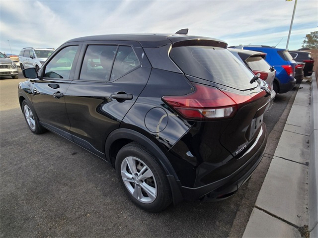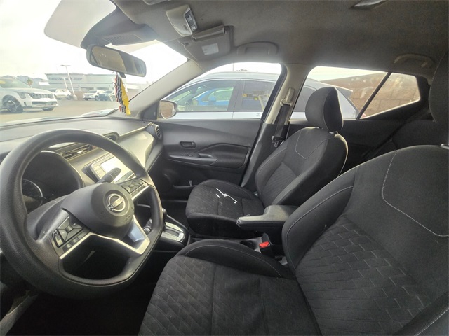 Recent Arrival!31/36 City/Highway MPGSuper Black 2022 Nissan Kicks S FWD CVT with Xtronic 1.6L 4-Cylinder DOHC 16VIf you don't drive here, you can't save here!Price may not include recon fee. 16" Steel Wheels w/Full Covers, 3.927 Axle Ratio, 6 Speakers, ABS brakes, Air Conditioning, AM/FM radio, Apple CarPlay/Android Auto, Auto High-beam Headlights, Blind Spot Warning, Brake assist, Bumpers: body-color, Carpeted Floor Mats w/Cargo Mat, Center Armrest w/Storage, Cloth Seat Trim, Driver door bin, Driver vanity mirror, Driver's Seat Mounted Armrest, Dual front impact airbags, Dual front side impact airbags, Electronic Stability Control, Front anti-roll bar, Front Bucket Seats, Front reading lights, Front wheel independent suspension, Fully automatic headlights, Illuminated entry, Knee airbag, Low tire pressure warning, Occupant sensing airbag, Outside temperature display, Overhead airbag, Panic alarm, Passenger door bin, Passenger vanity mirror, Power door mirrors, Power steering, Power windows, Radio data system, Radio: AM/FM Audio System, Rear Parking Sensors, Rear reading lights, Rear side impact airbag, Rear window defroster, Rear window wiper, Remote keyless entry, Speed control, Splash Guards Grain (4 Piece), Split folding rear seat, Sport steering wheel, Steering wheel mounted audio controls, Tachometer, Telescoping steering wheel, Tilt steering wheel, Traction control, Trip computer, and Variably intermittent wipers.