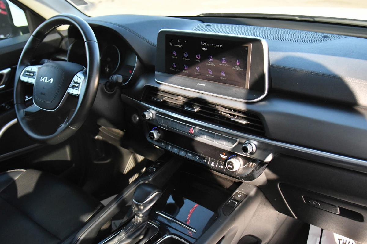 Scores 26 Highway MPG and 20 City MPG! This Kia Telluride boasts a Regular Unleaded V-6 3.8 L/231 engine powering this Automatic transmission. GLACIAL WHITE PEARL, CARPETED FLOOR MATS, BLACK, SYNTHETIC LEATHER SEAT TRIM.*This Kia Telluride Features the Following Options *Wheels: 20 x 7.5 Machined Alloy, Vehicle Stability Management (VSM) Electronic Stability Control (ESC), Variable Intermittent Wipers, Trip Computer, Transmission: 8-Speed Automatic -inc: Idle Stop and Go (ISG) and drive mode select (comfort/ECO/sport/smart), Transmission w/Sportmatic Sequential Shift Control and Oil Cooler, Trailer Wiring Harness, Towing Equipment -inc: Trailer Sway Control, Tires: 245/50R20, Tire Specific Low Tire Pressure Warning.