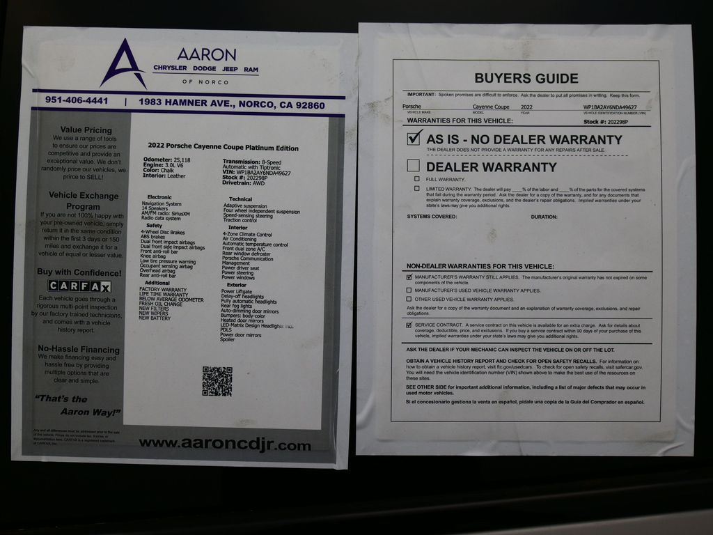 Priced below KBB Fair Purchase Price!FACTORY WARRANTY, BELOW AVERAGE ODOMETER, FRESH OIL CHANGE, NEW FILTERS, NEW WIPERS, NEW BATTERY, Cayenne Coupe Platinum Edition, 4D Sport Utility, 3.0L V6, 8-Speed Automatic with Tiptronic, AWD, 14-Way Power Seats w/Comfort Memory, 4-Zone Climate Control, Alloy wheels, Apple CarPlay, Exterior Parking Camera Rear, Front & Rear Heated Seats, Front dual zone A/C, Front Seat Ventilation, Knee airbag, Lane Change Assist (LCA), LED-Matrix Design Headlights incl. PDLS, Low tire pressure warning, Navigation System, Power Liftgate, Premium Package Plus, Rear fog lights, Wheels: 21" RS Spyder Design in Satin Platinum.CARFAX One-Owner.